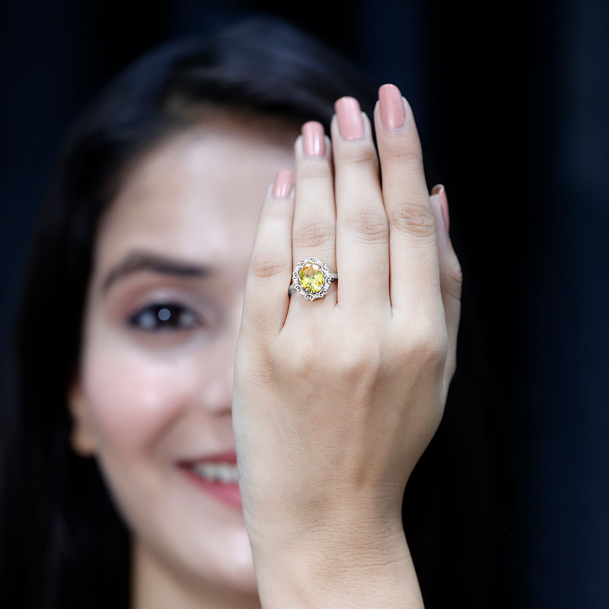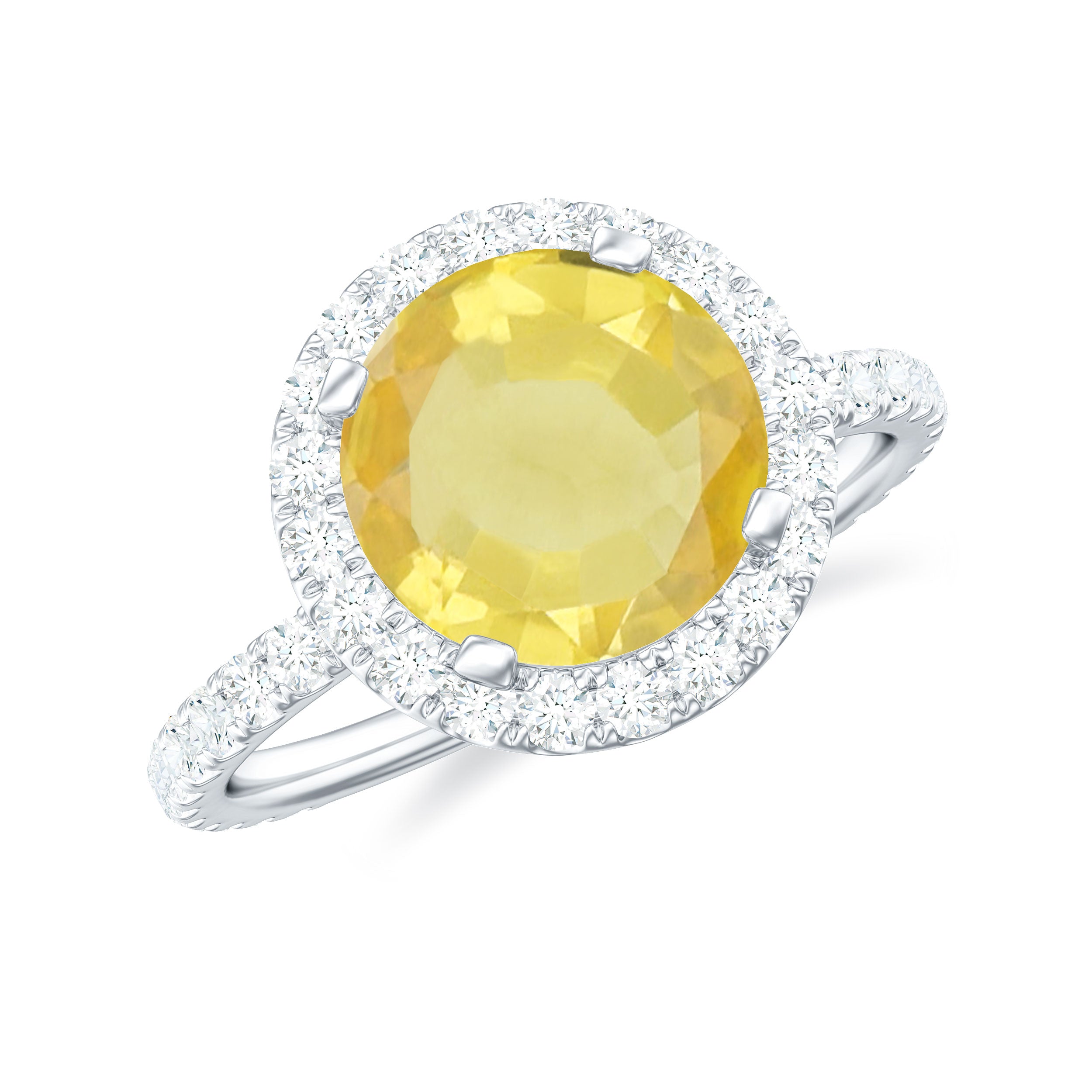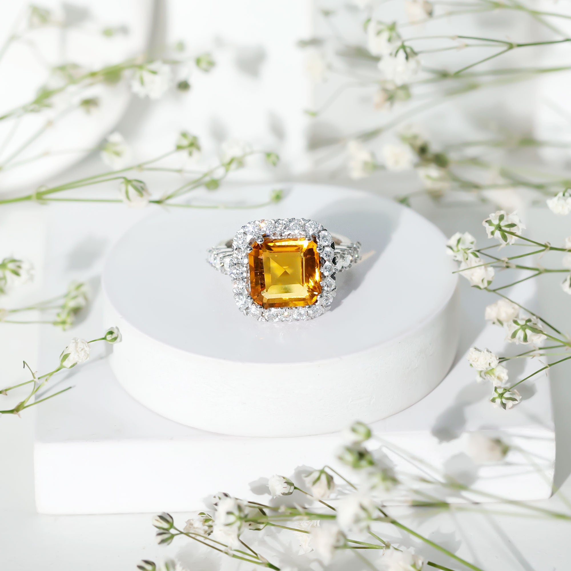 Halo Rings: Begin your new chapter of life with our Yellow Sapphire Halo rings. Our eye-catching Yellow Sapphire placed in the center and surrounded by small Diamonds making it look like a beautiful sunflower. It fits perfectly with all your occasions as an ultimate symbol of elegance and luxury.