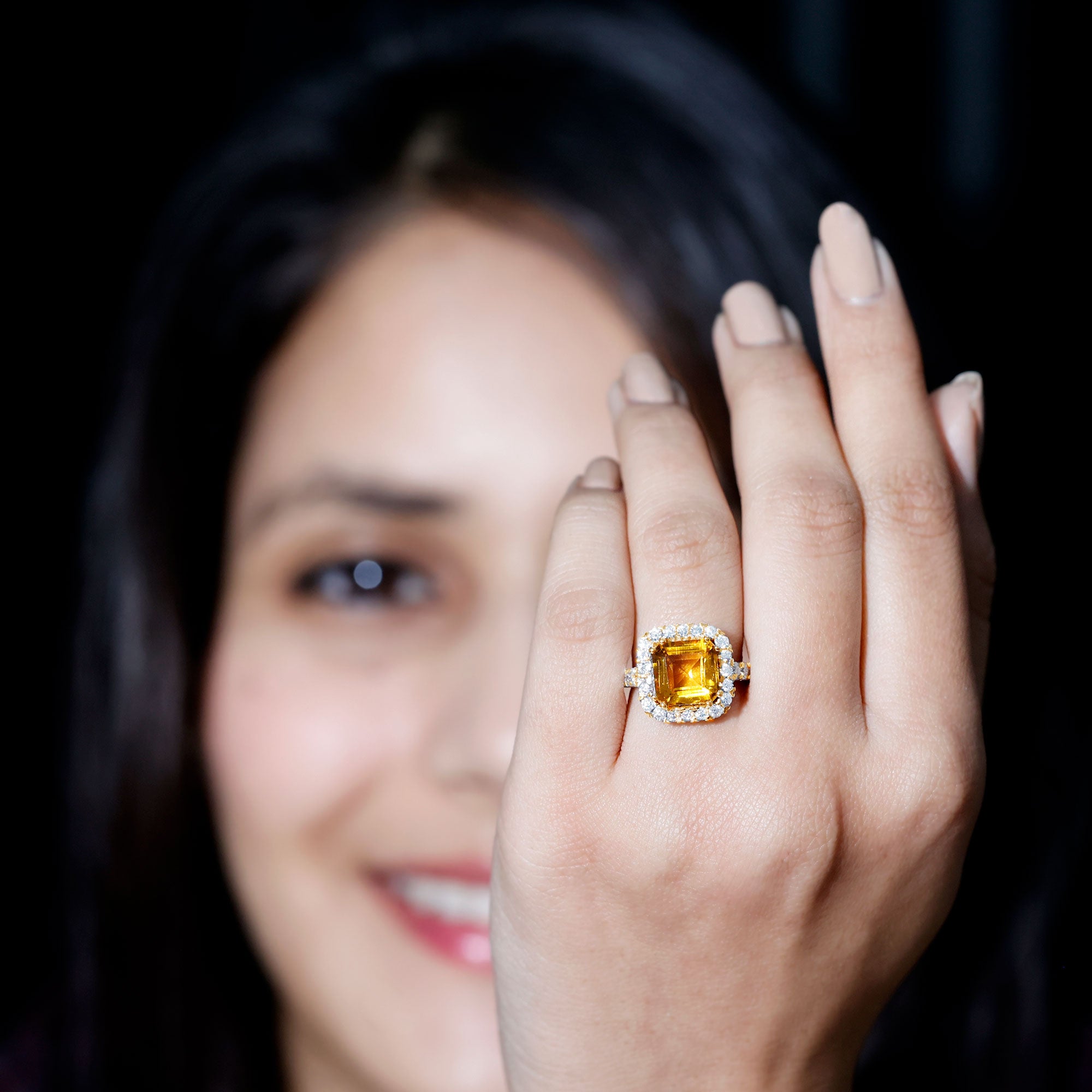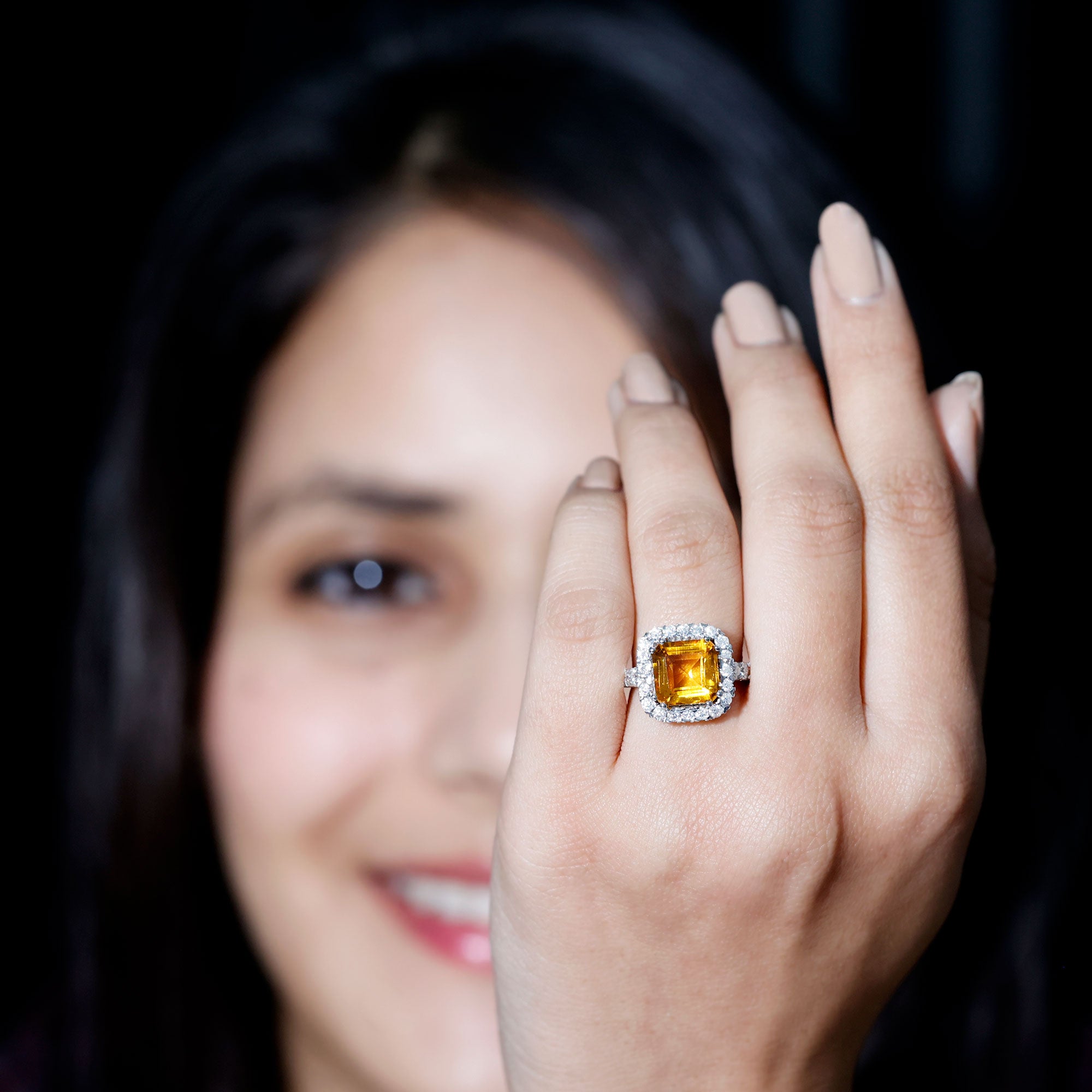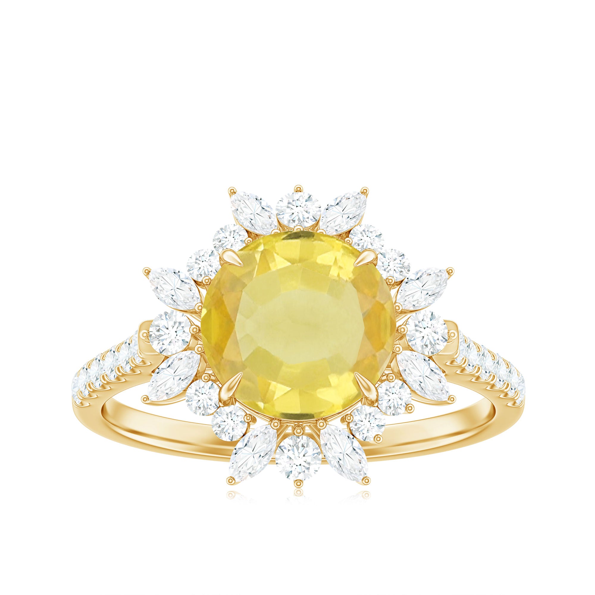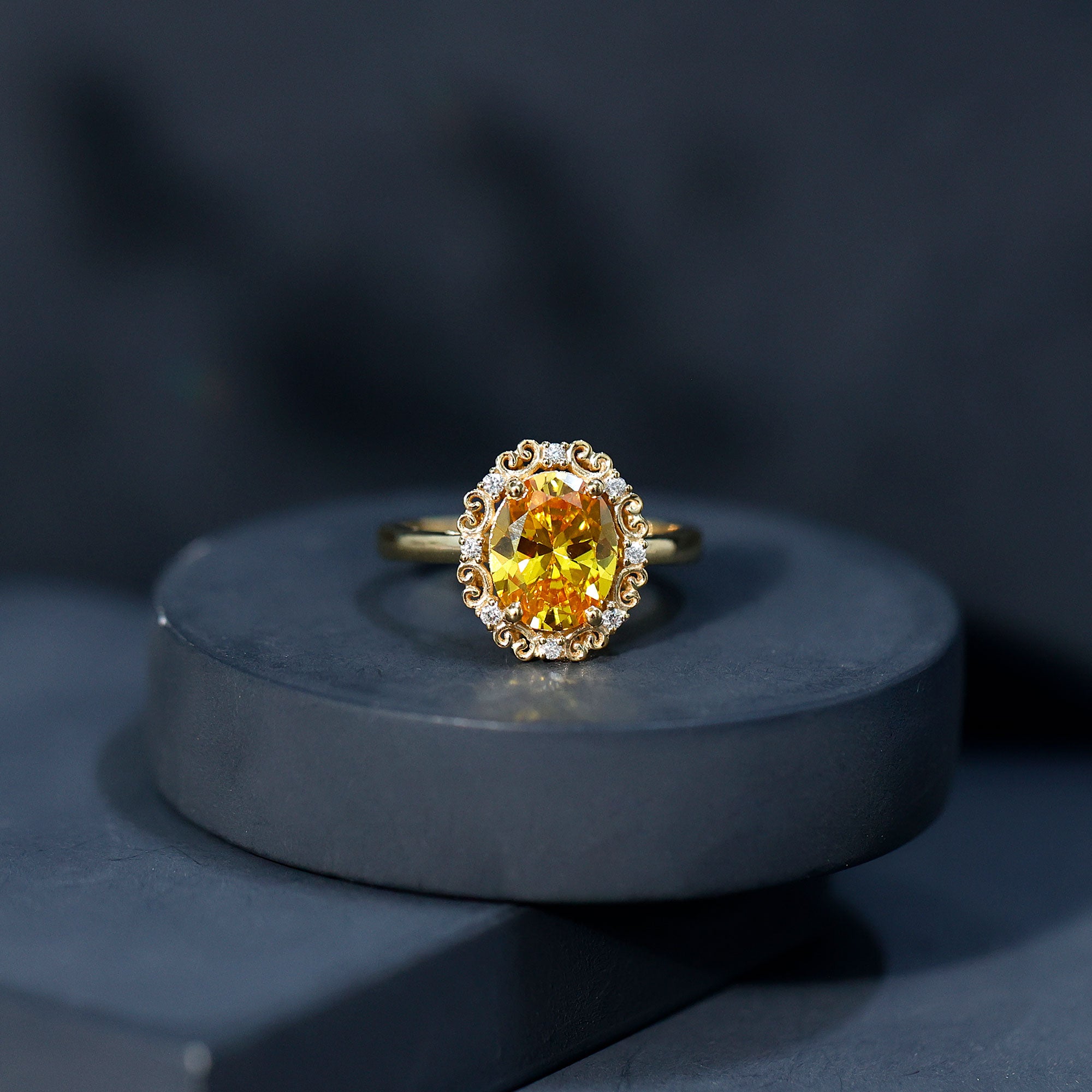 Halo Rings: Begin your new chapter of life with our Yellow Sapphire Halo rings. Our eye-catching Yellow Sapphire placed in the center and surrounded by small Diamonds making it look like a beautiful sunflower. It fits perfectly with all your occasions as an ultimate symbol of elegance and luxury.
