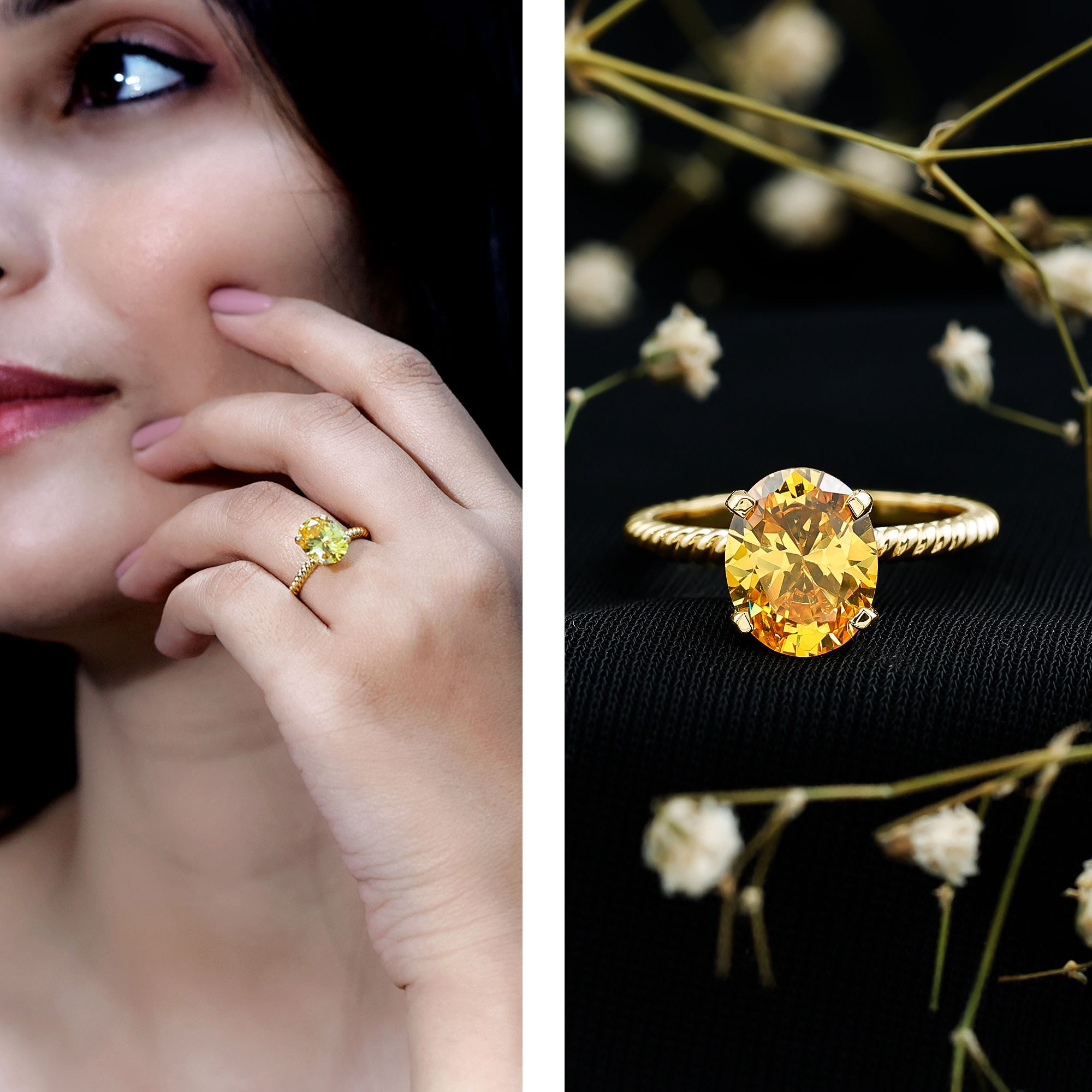 Our Lab Grown Yellow Sapphire Rings are certified with AAAA quality gemstone, paired along with other precious stones such as Diamond. These Lab Grown Yellow Sapphire Rings are eco-friendly as the gemstones are grown in a lab instead of being extracted from the mines. Our rings are available in two precious metals, silver and gold (with two color choices available in gold only; white and yellow). Know more about our yellow sapphire gemstone rings: