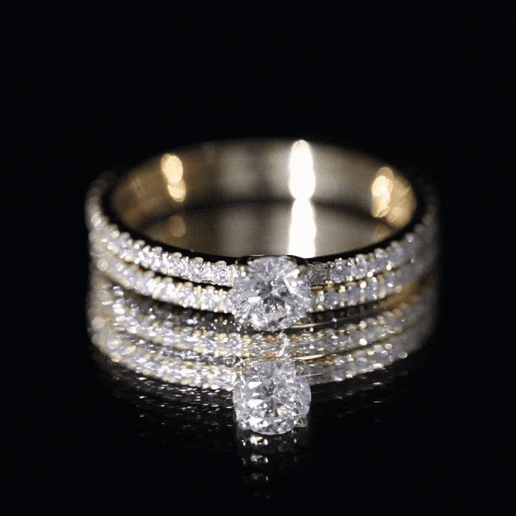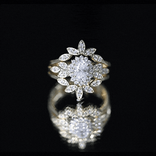 - Ring enhancer / guard: wraps around the engagement ring to create a “framed” look.
