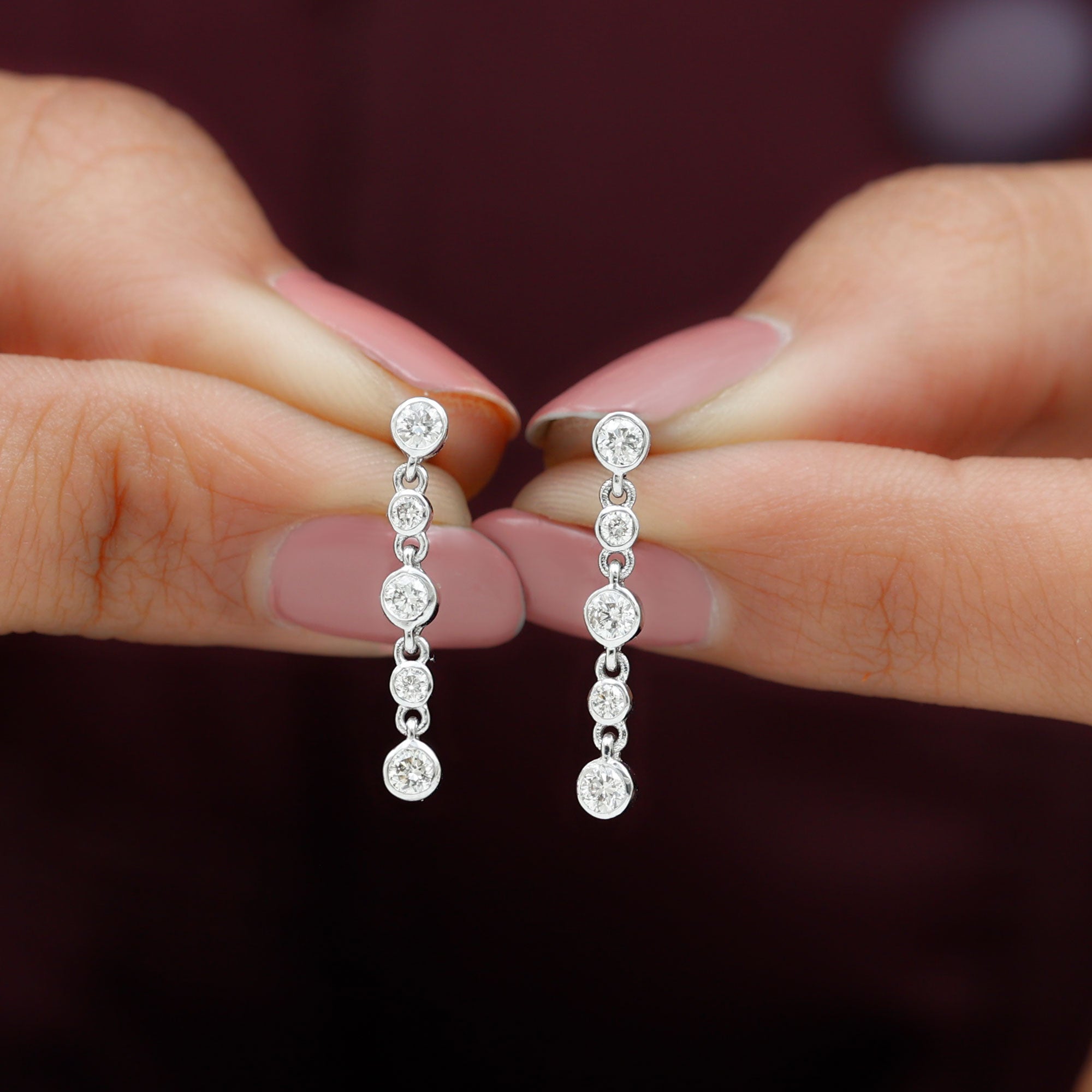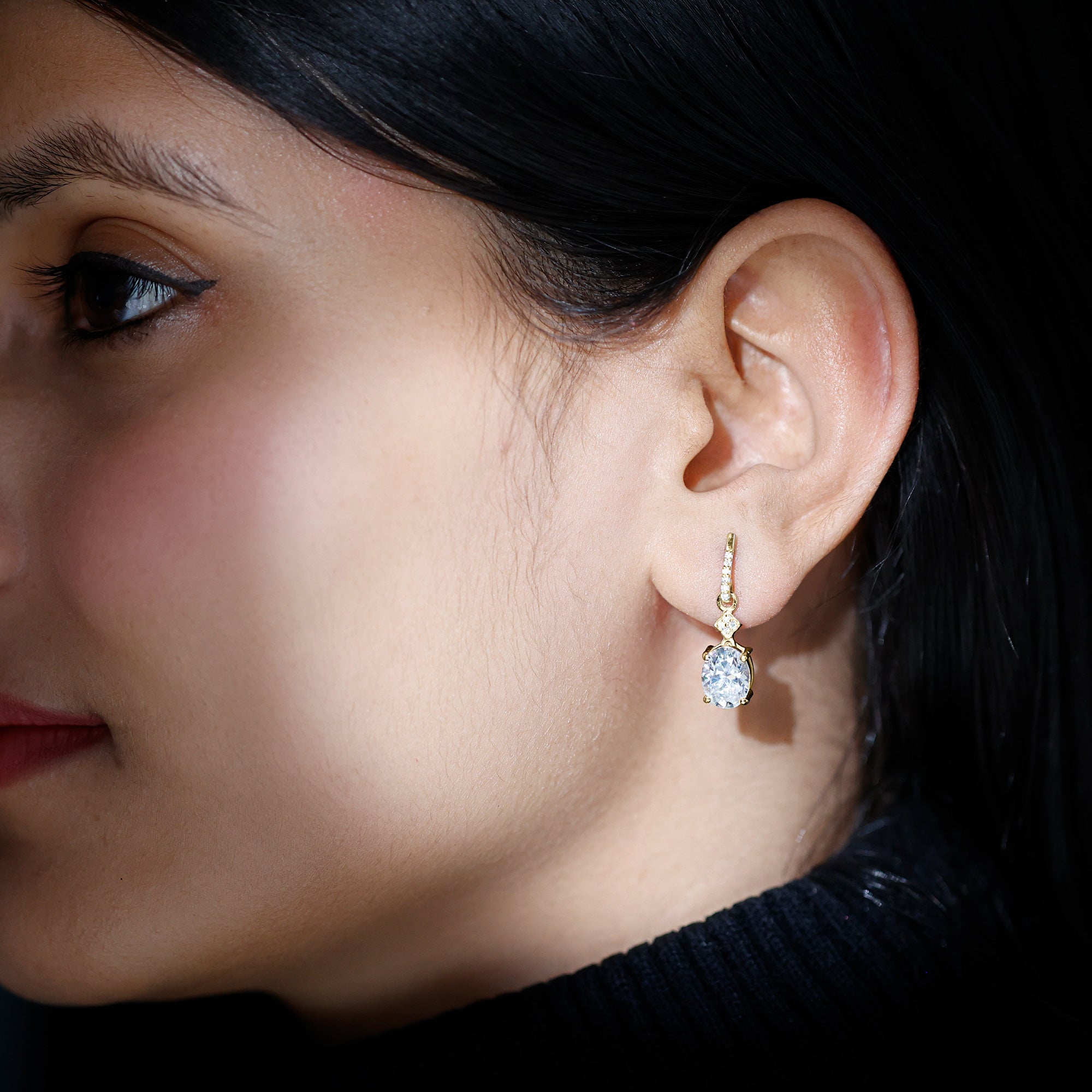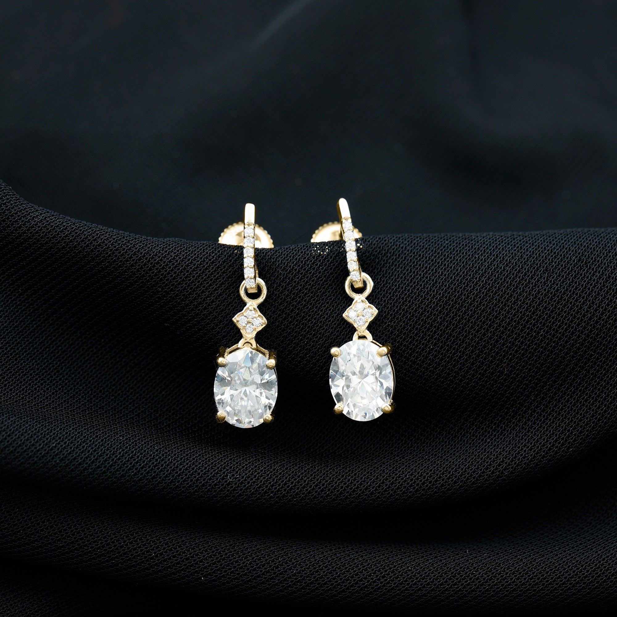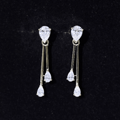 Drop earrings usually hang under an inch to a few inches in length, below the earlobe. The shorter lab grown diamond drops are usually preferred for casual occasions, while longer styles make a striking statement for formal events.