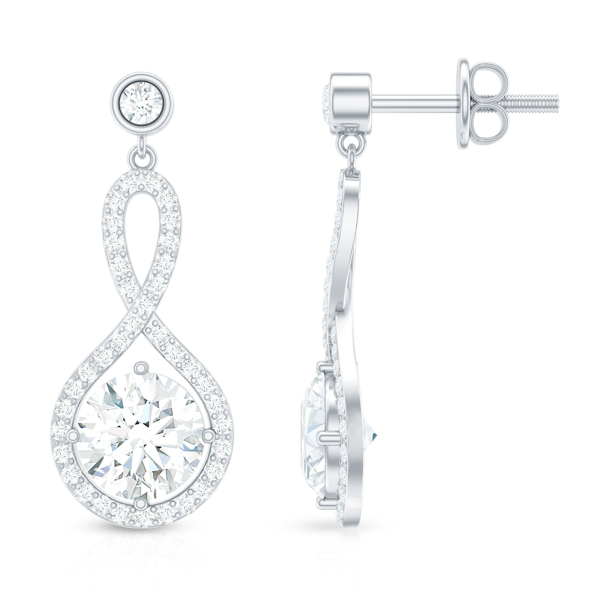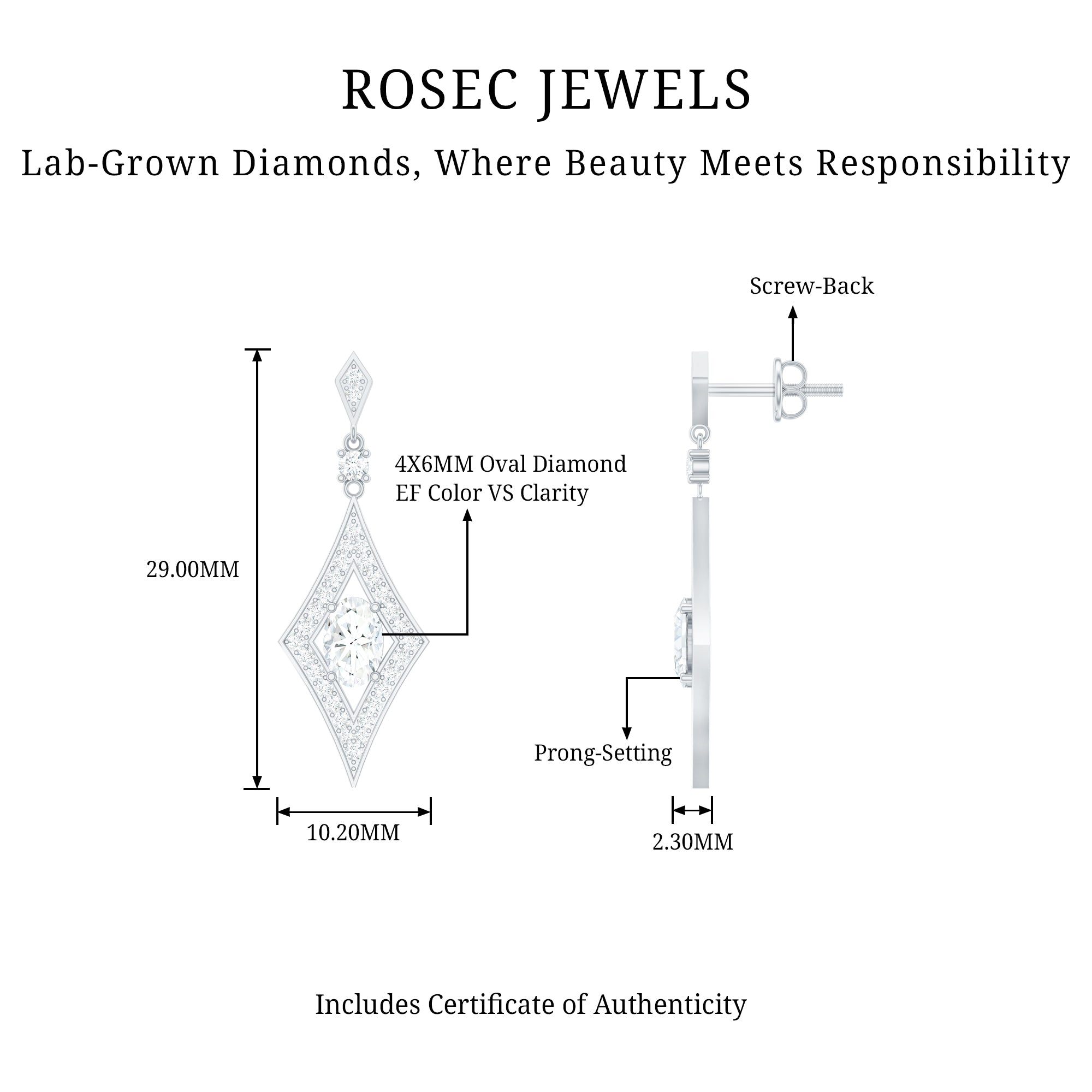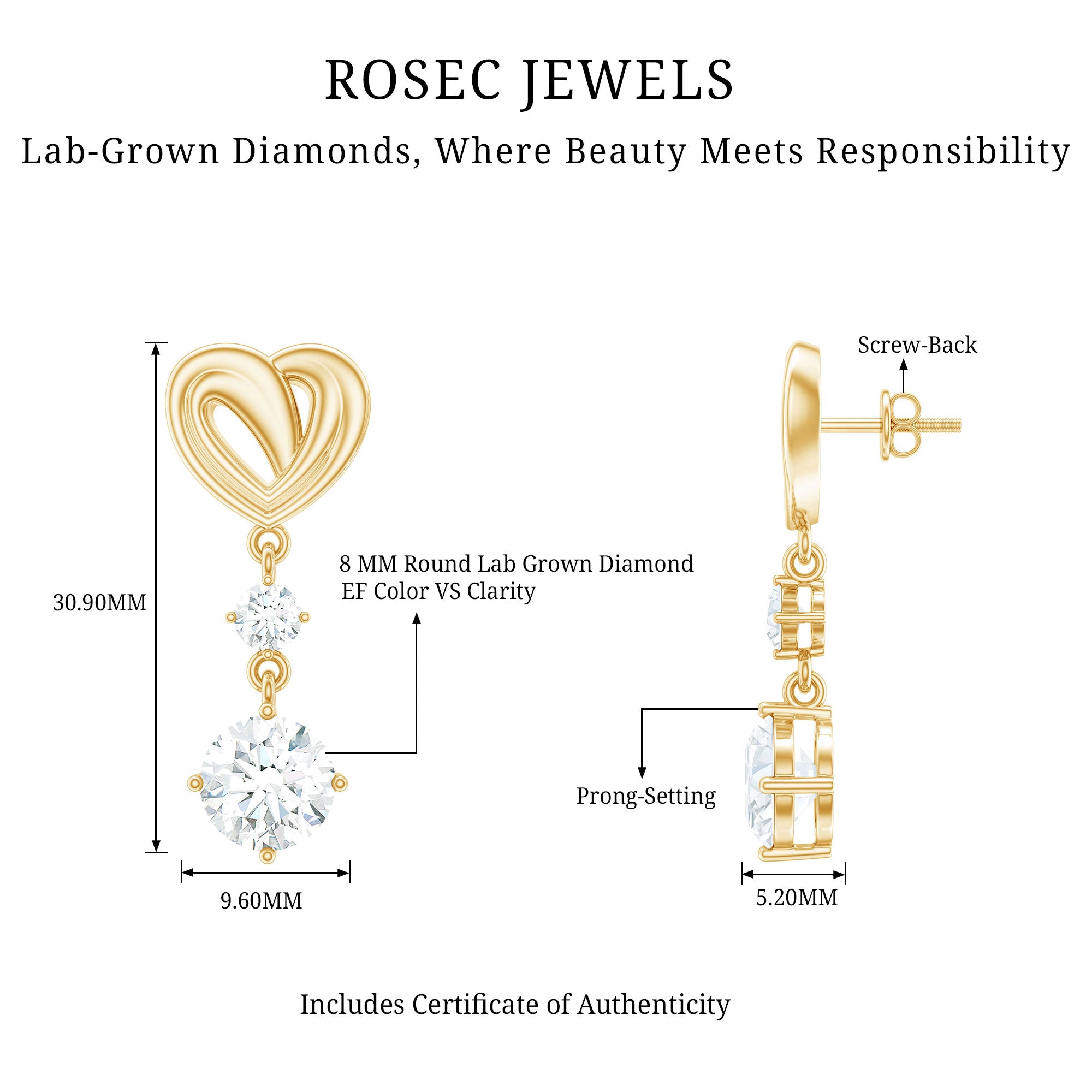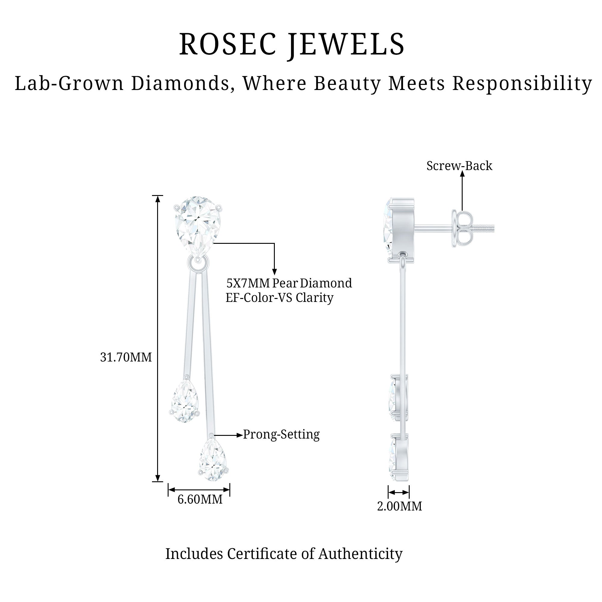 Drop earrings usually hang under an inch to a few inches in length, below the earlobe. The shorter lab grown diamond drops are usually preferred for casual occasions, while longer styles make a striking statement for formal events.