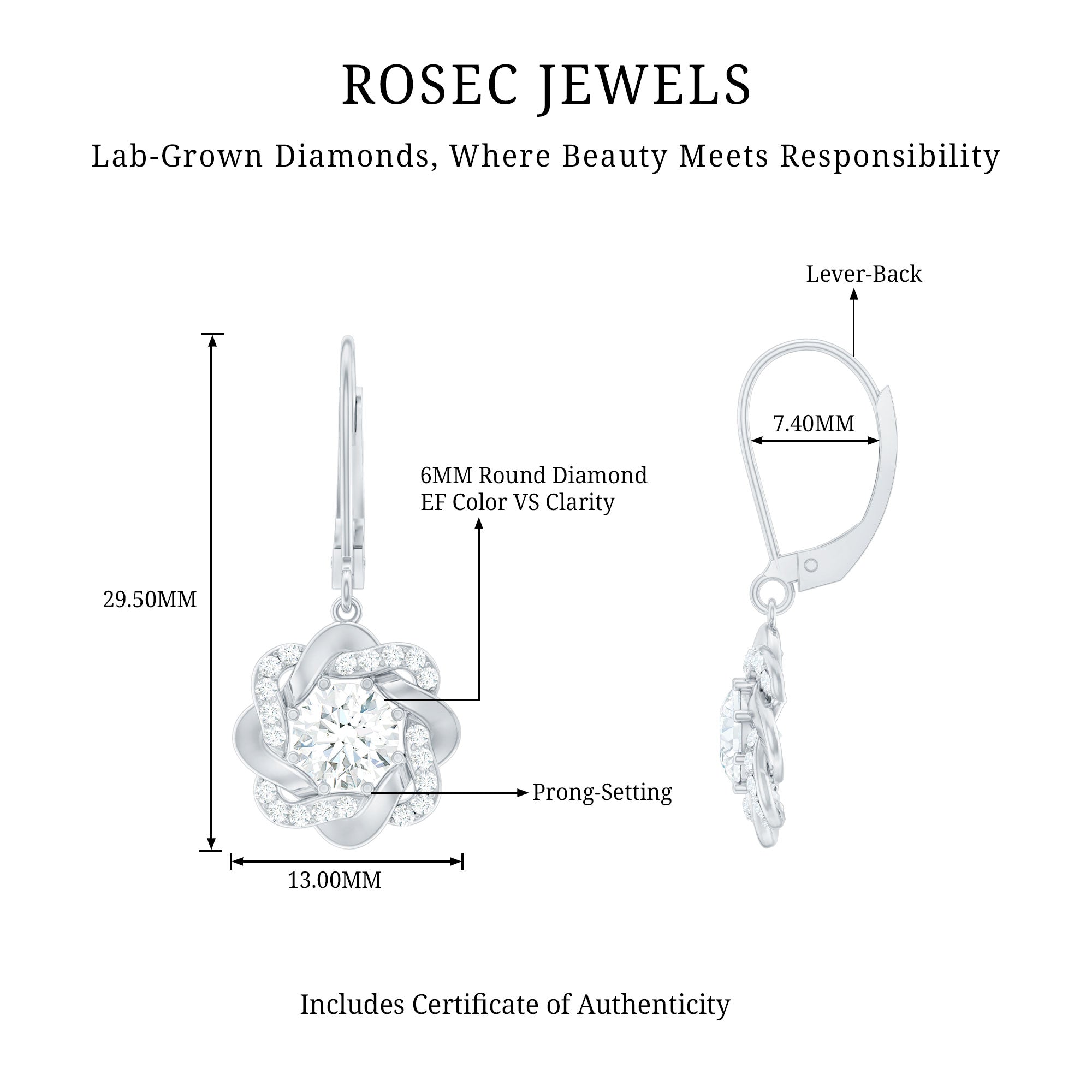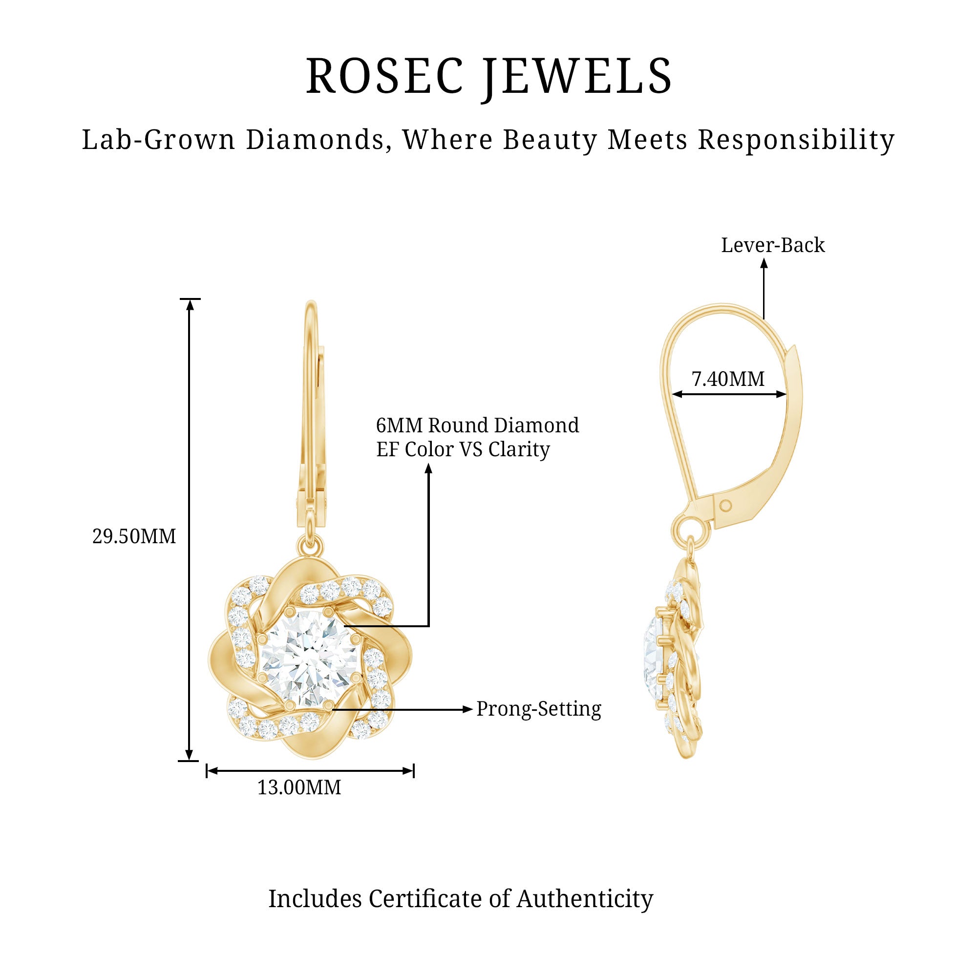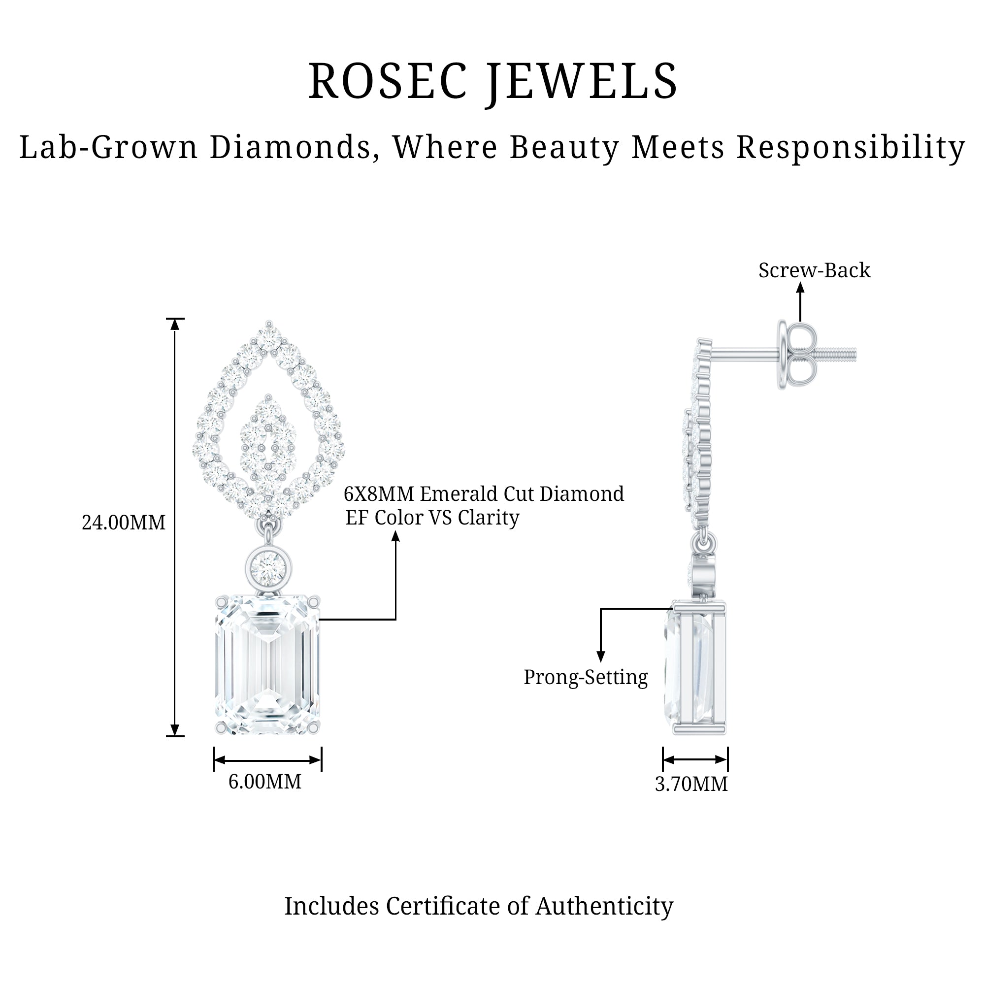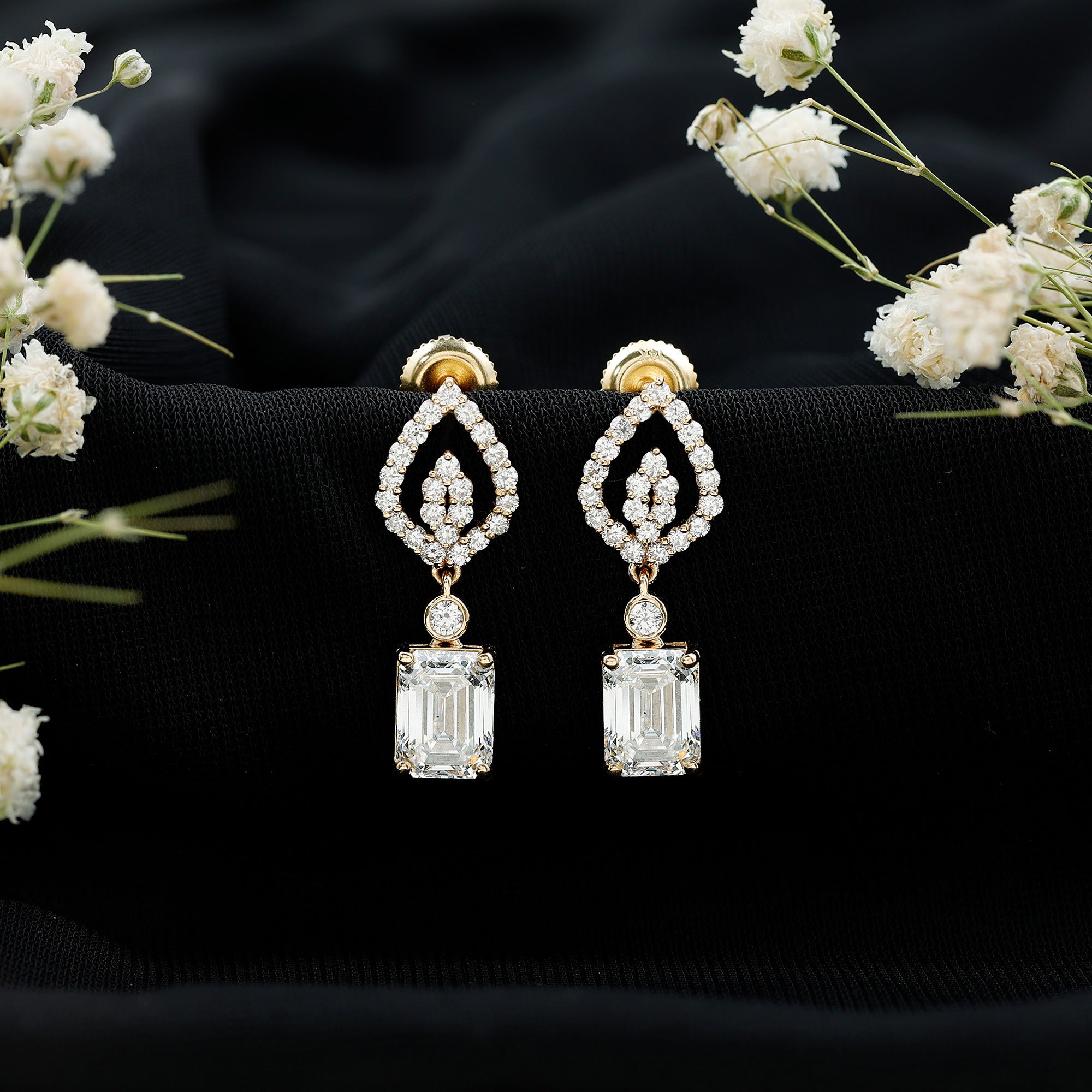 Lab grown diamond dangle earrings differentiate from drop earrings in their length and level of movement. Dangle earrings hang lower than drop earrings and swing more with every move.