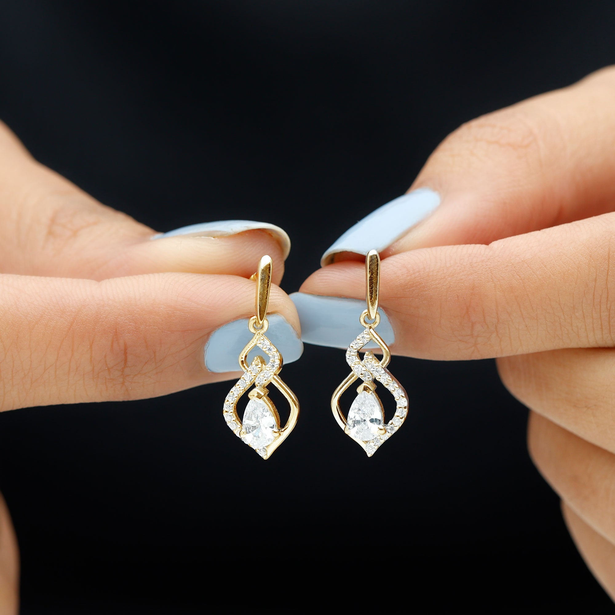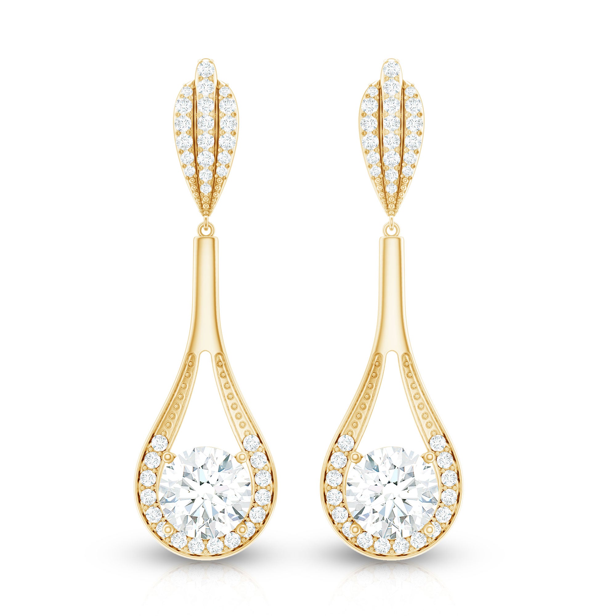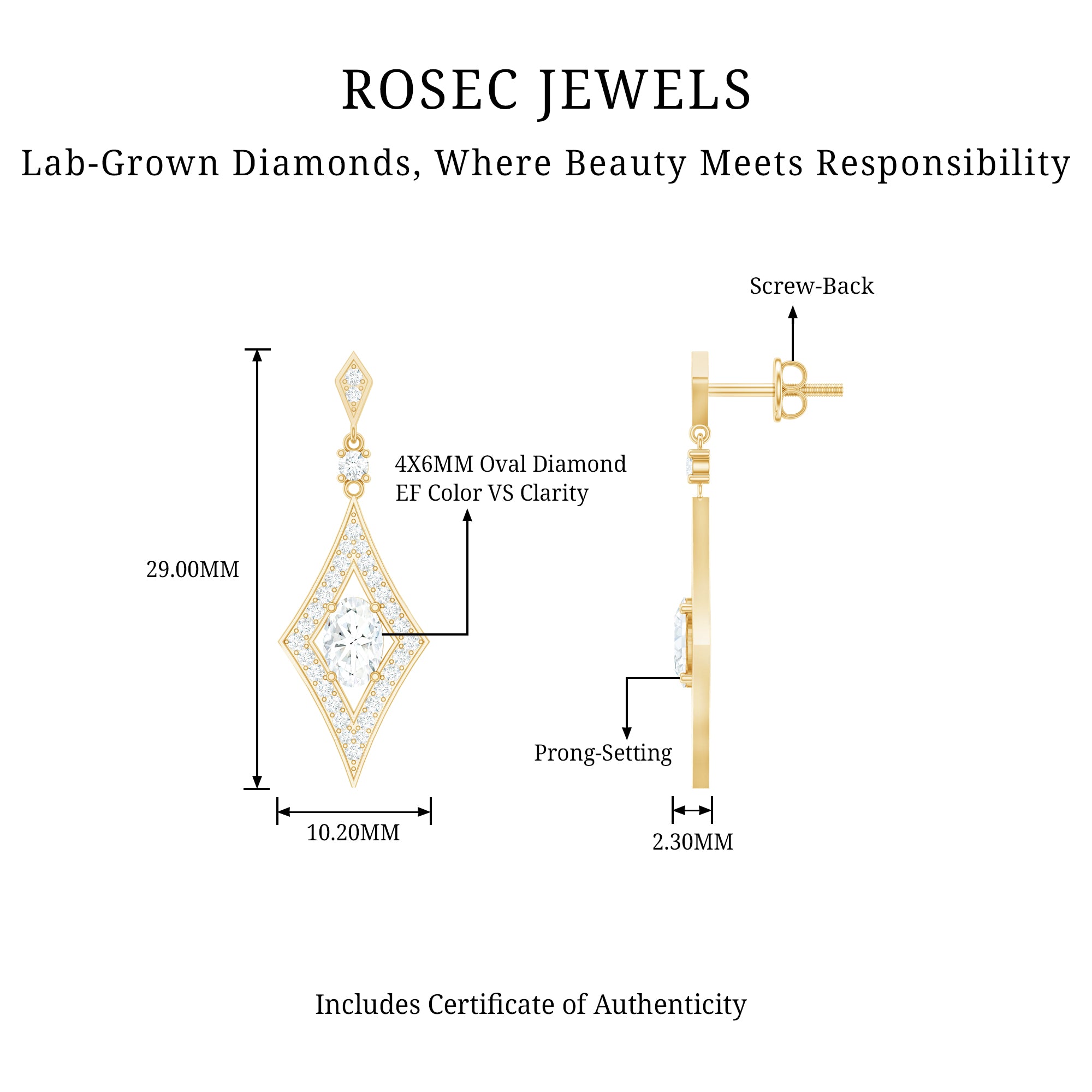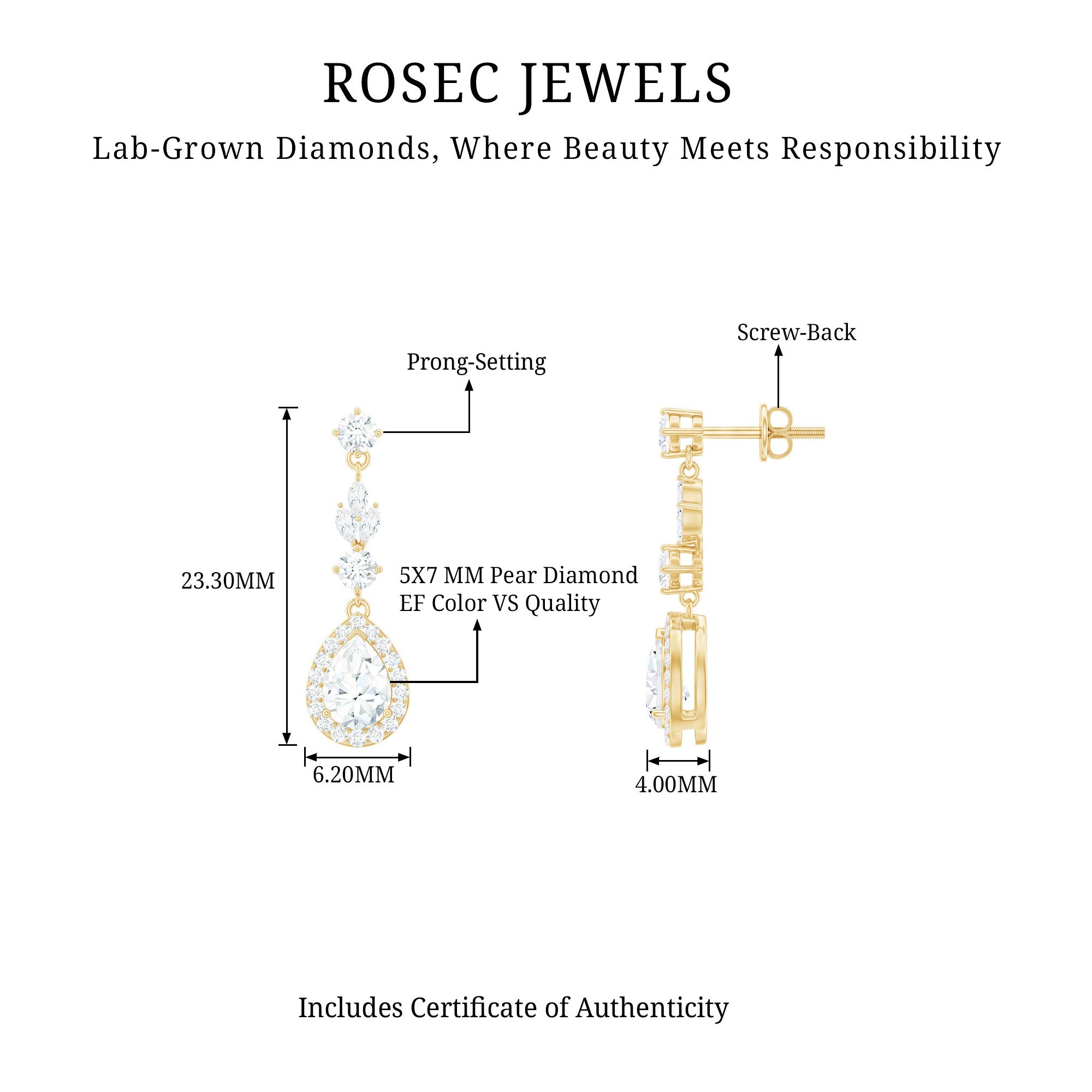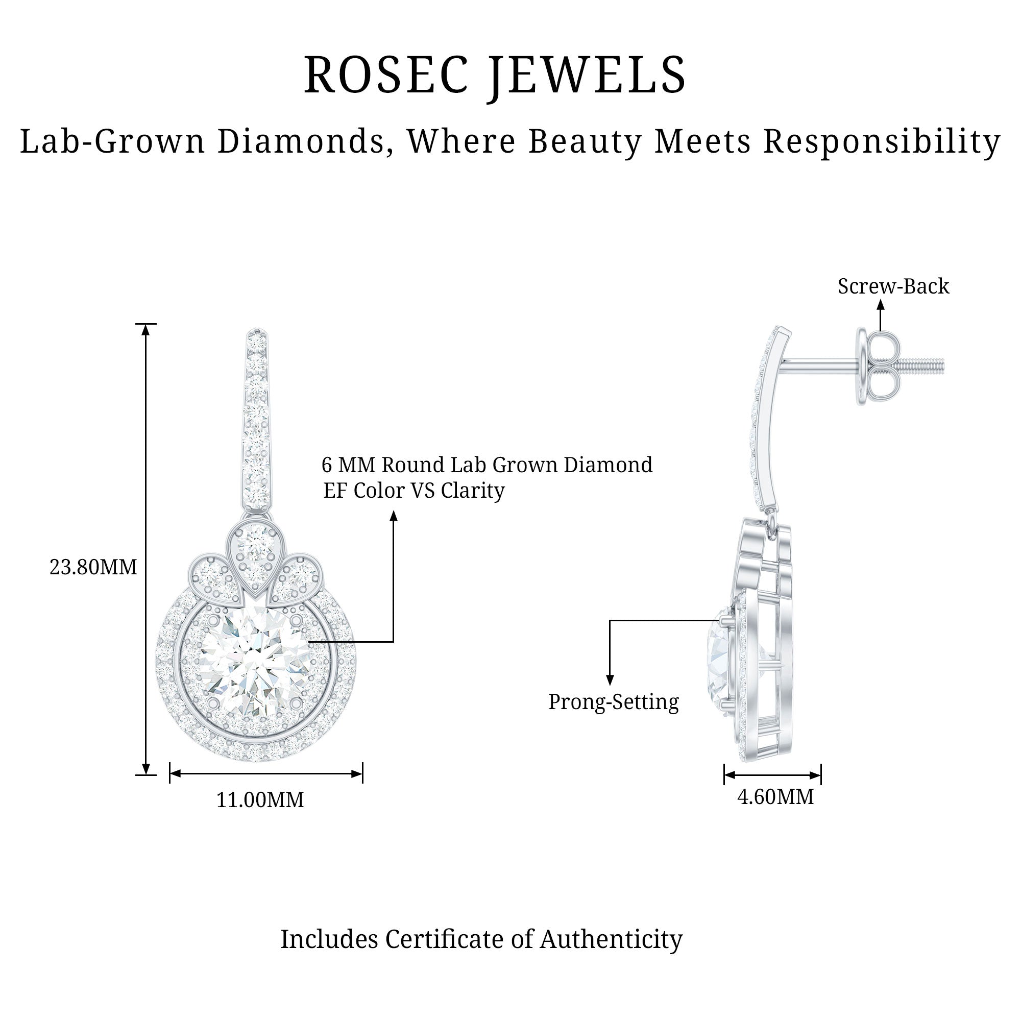 Lab grown diamond dangle earrings differentiate from drop earrings in their length and level of movement. Dangle earrings hang lower than drop earrings and swing more with every move.