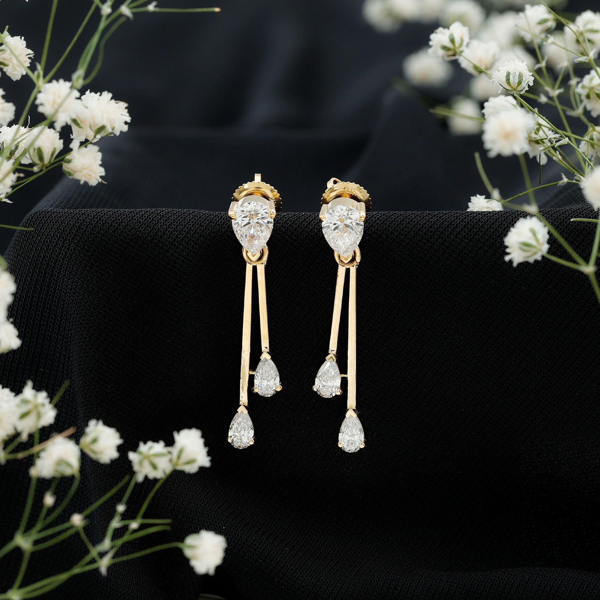 A lab grown diamond hanging as a little drop of jewelry, just below the earlobes is drop earring. These elegant lab grown diamond drop earrings capture and reflect light with every movement and add a touch of luxury to any occasion.