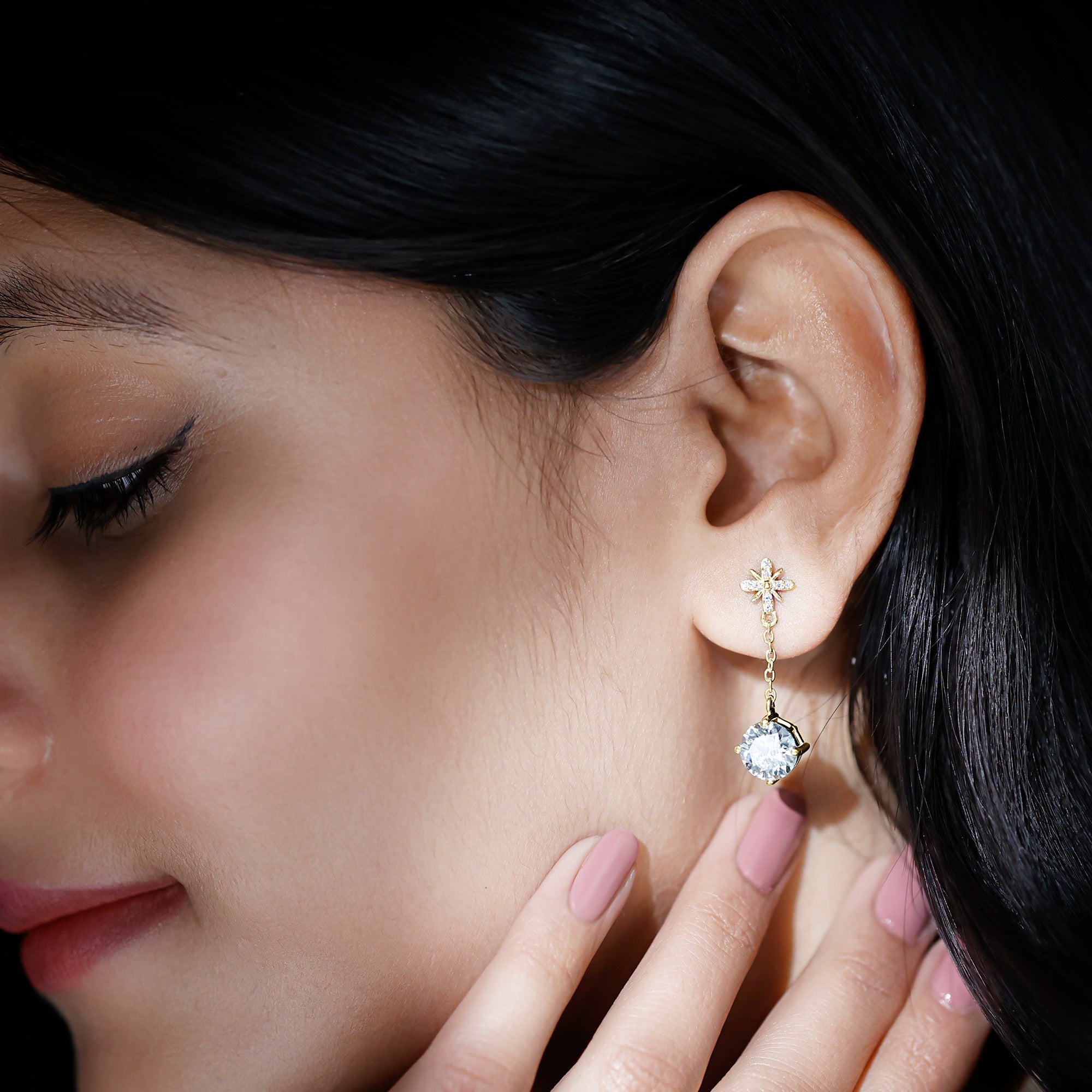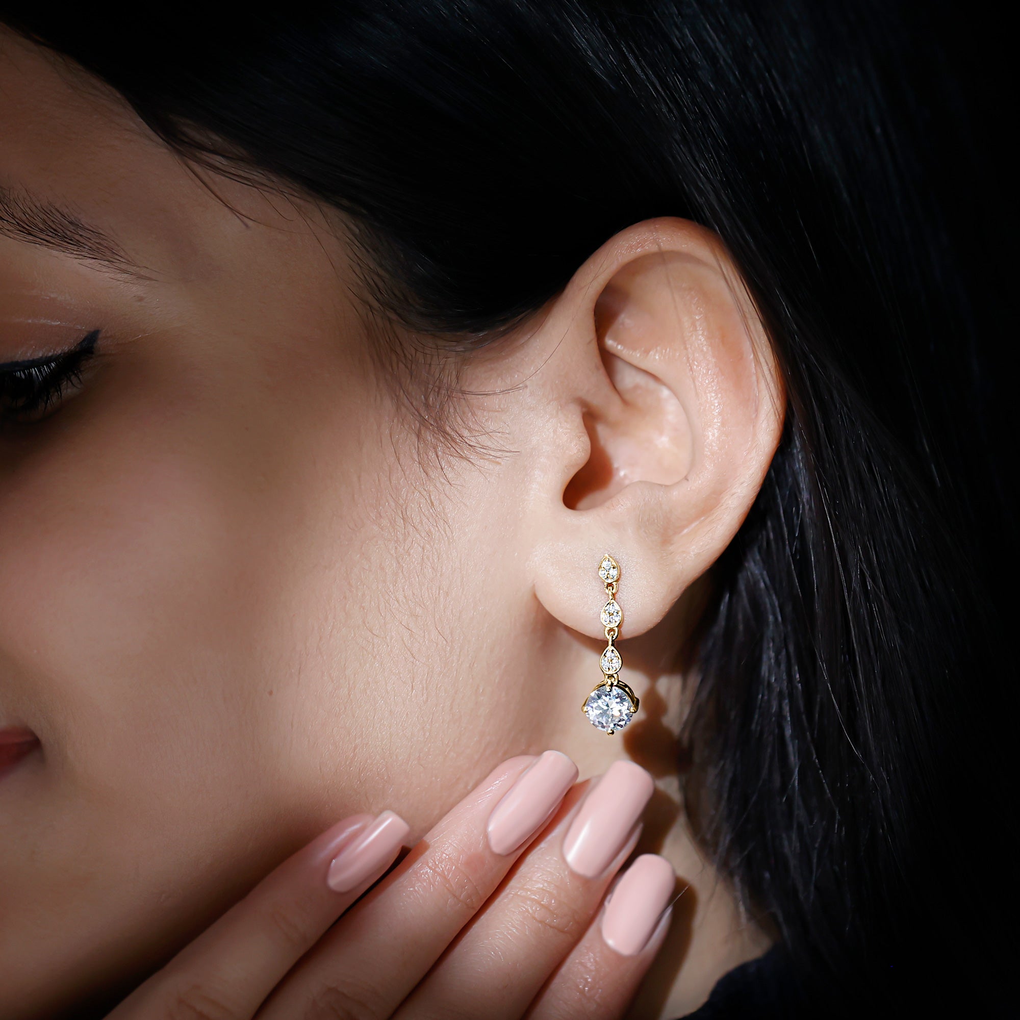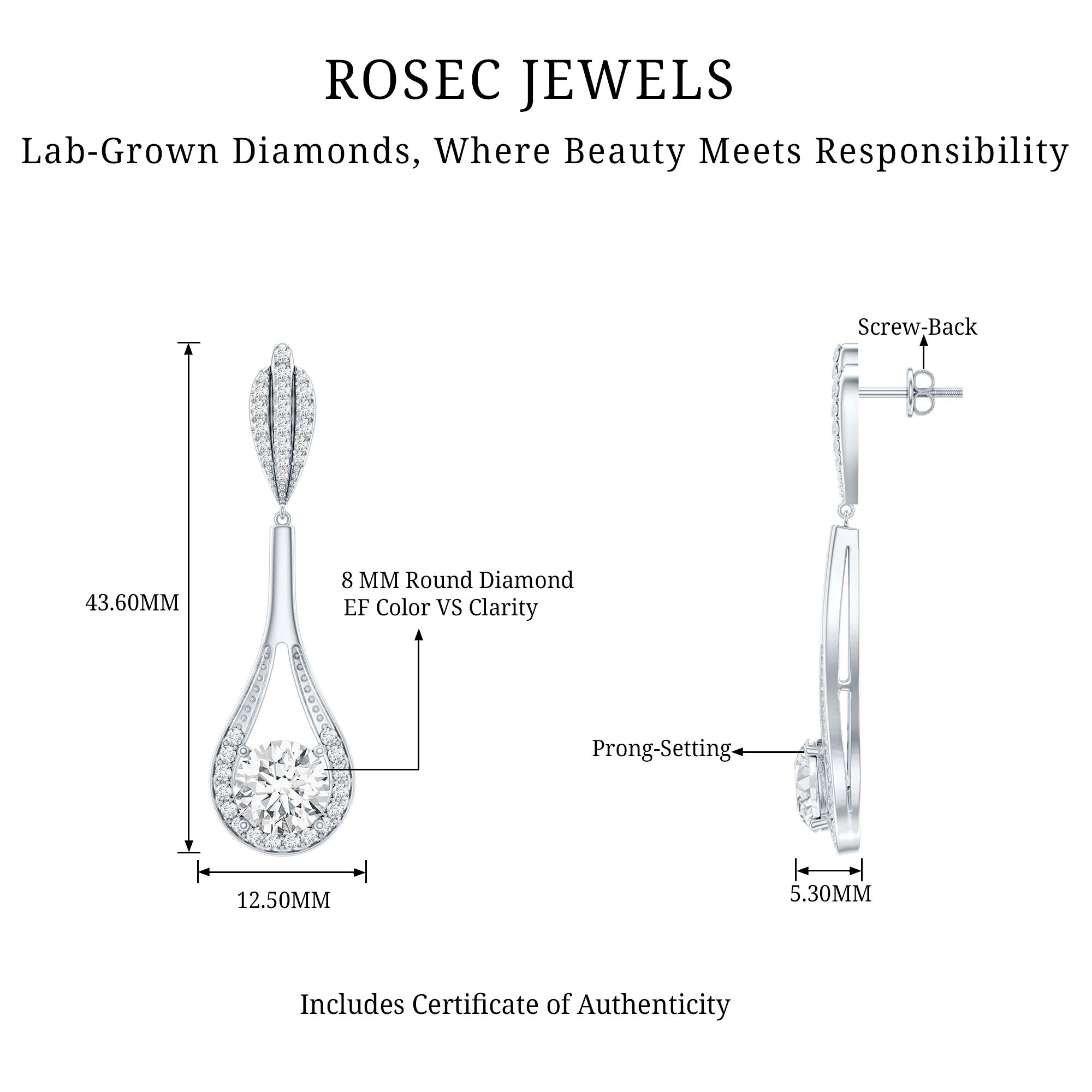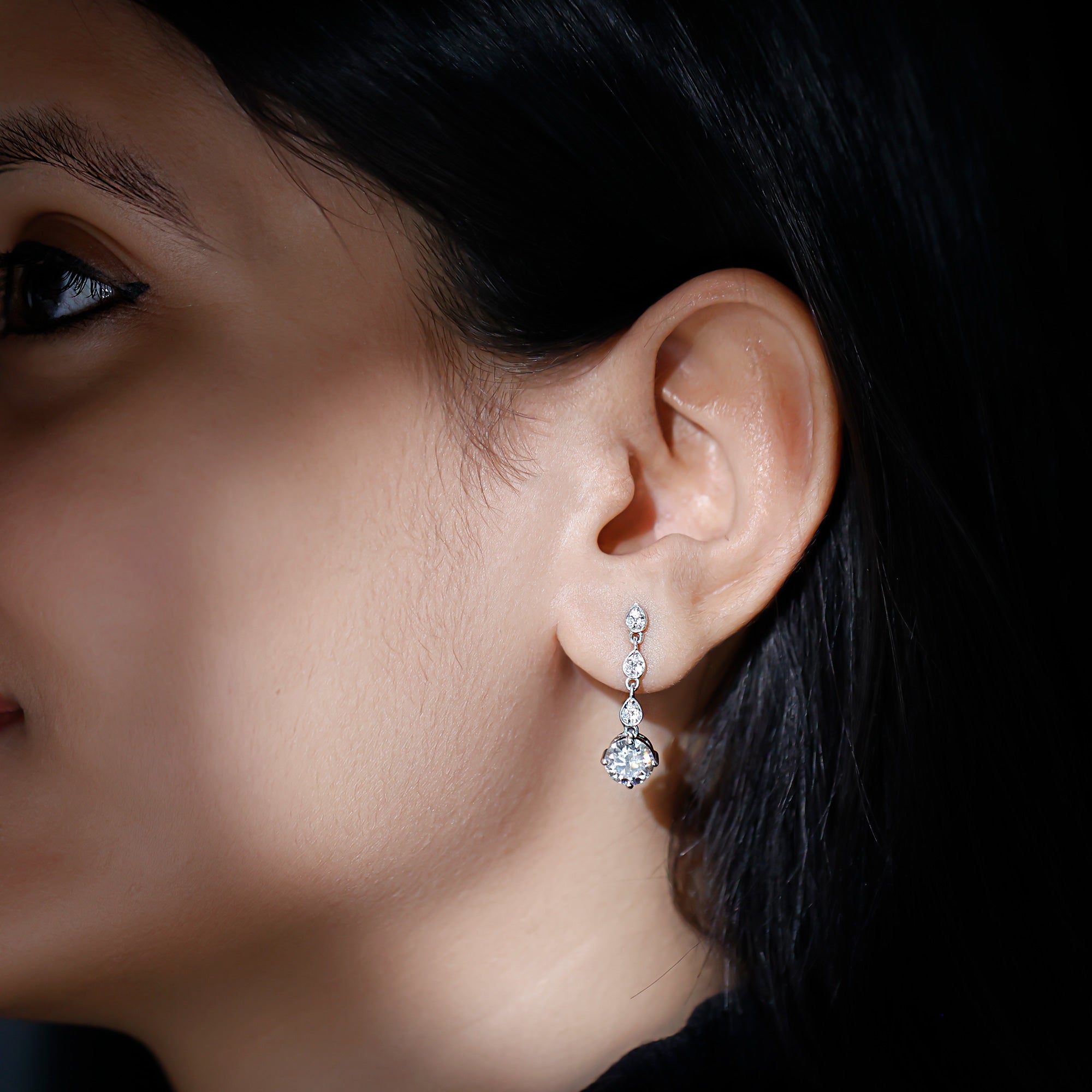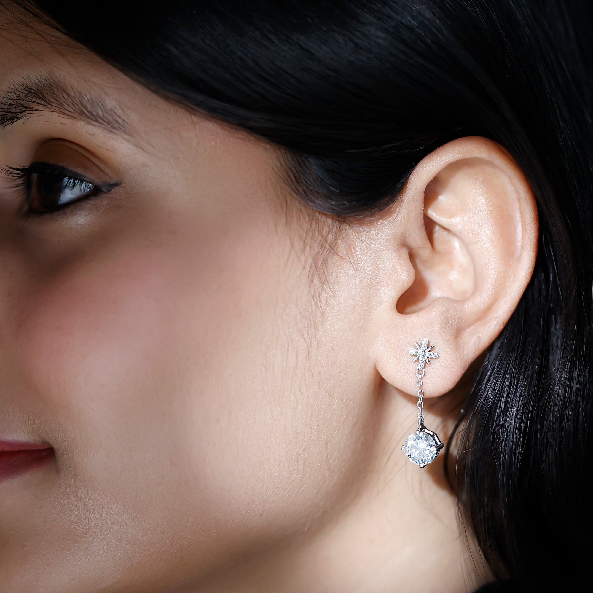Drop earrings usually hang under an inch to a few inches in length, below the earlobe. The shorter lab grown diamond drops are usually preferred for casual occasions, while longer styles make a striking statement for formal events.