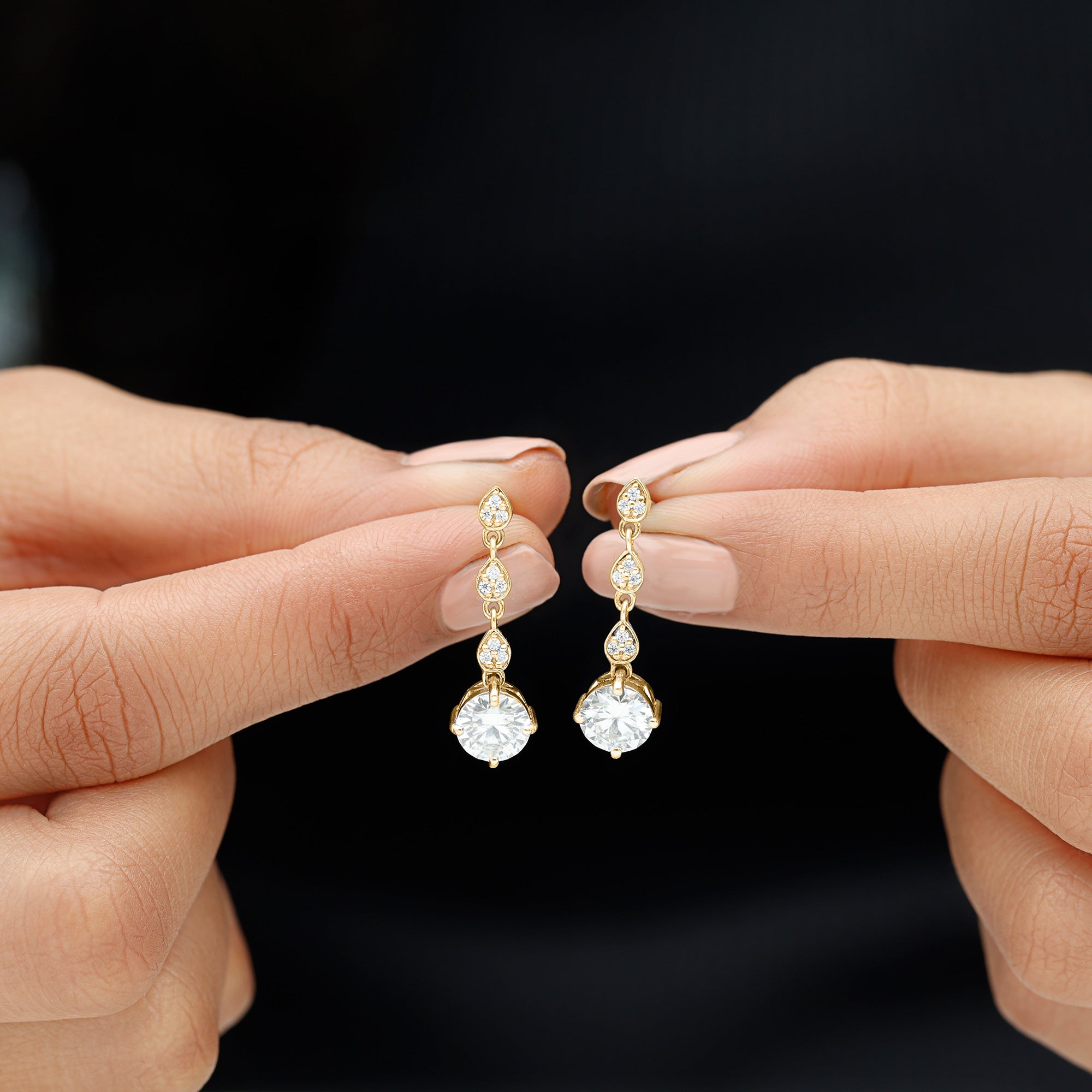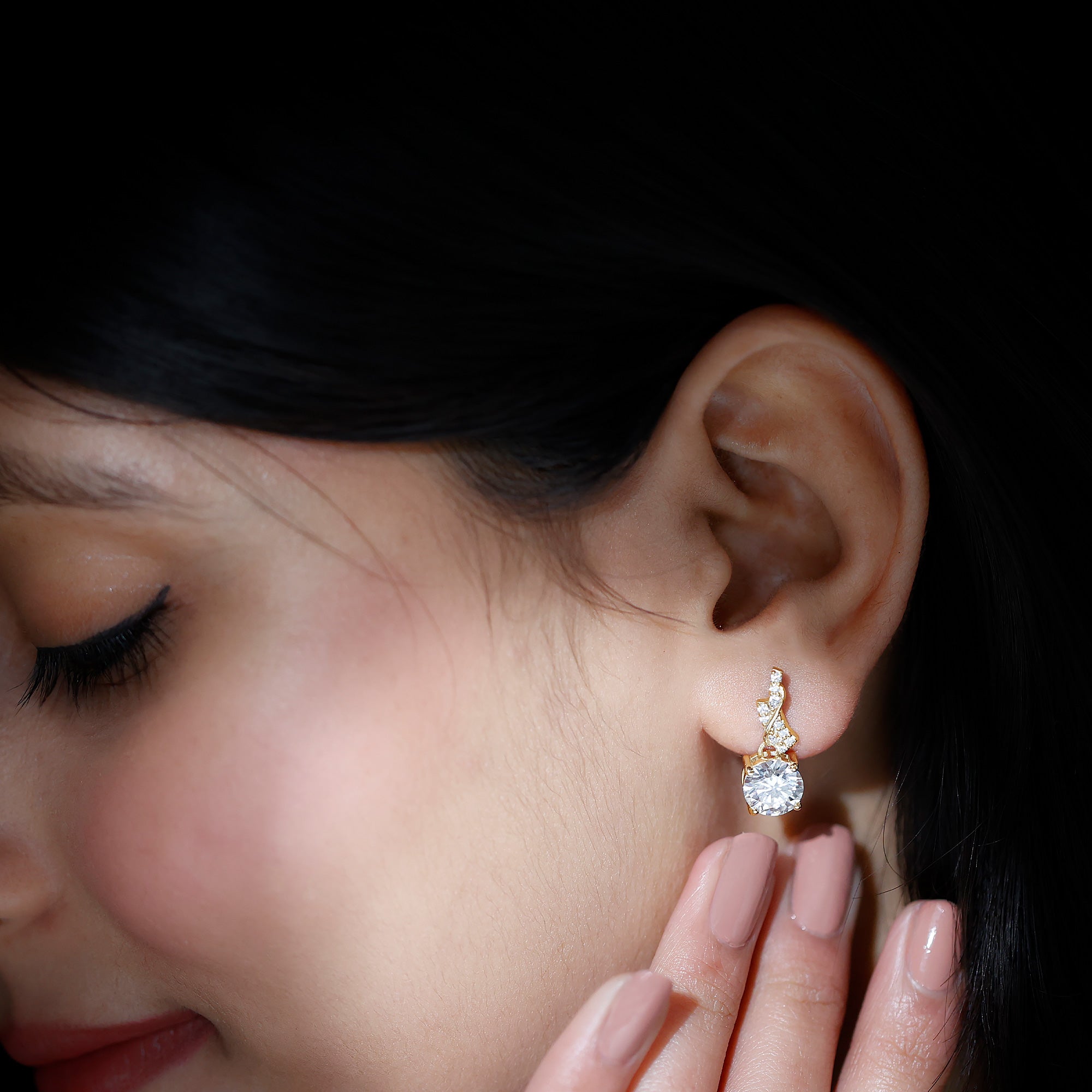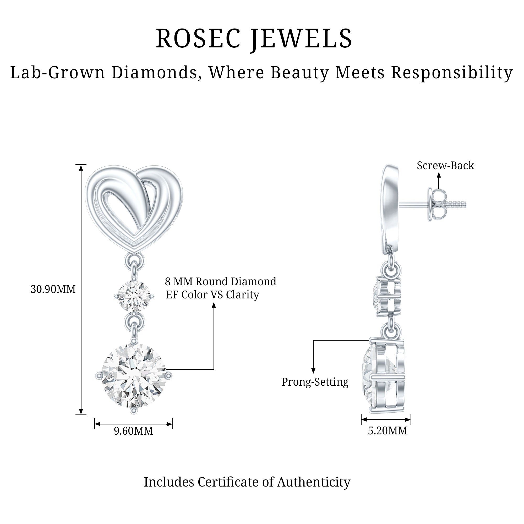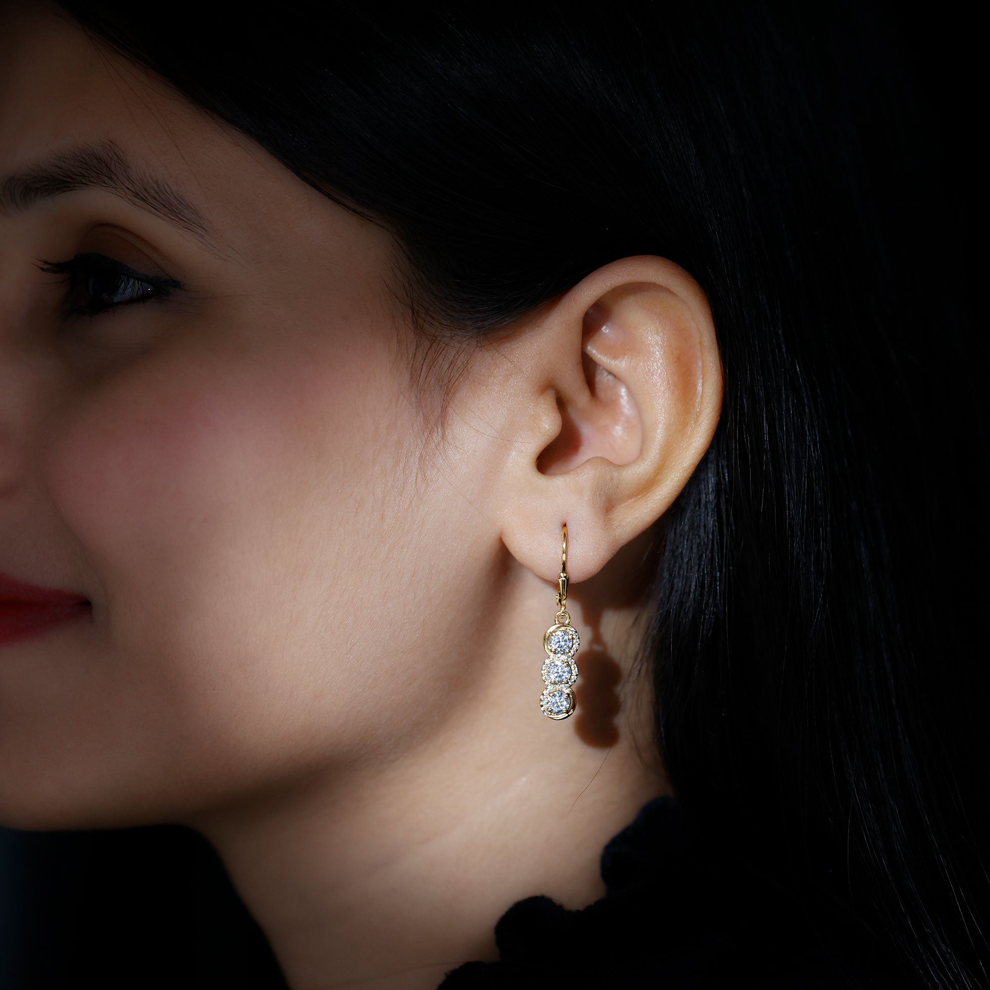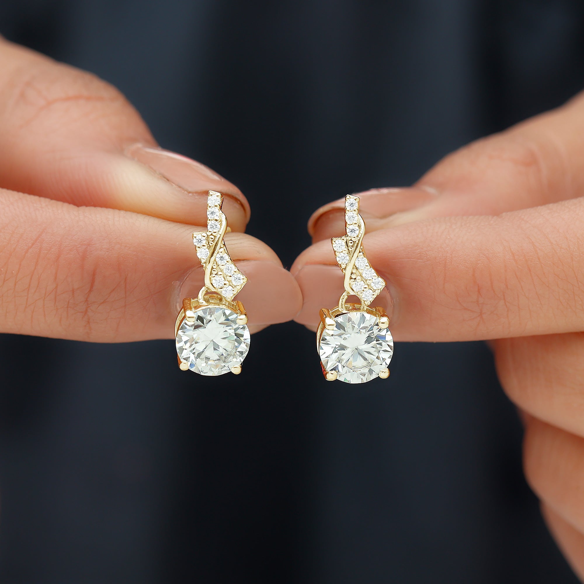 Drop earrings usually hang under an inch to a few inches in length, below the earlobe. The shorter lab grown diamond drops are usually preferred for casual occasions, while longer styles make a striking statement for formal events.