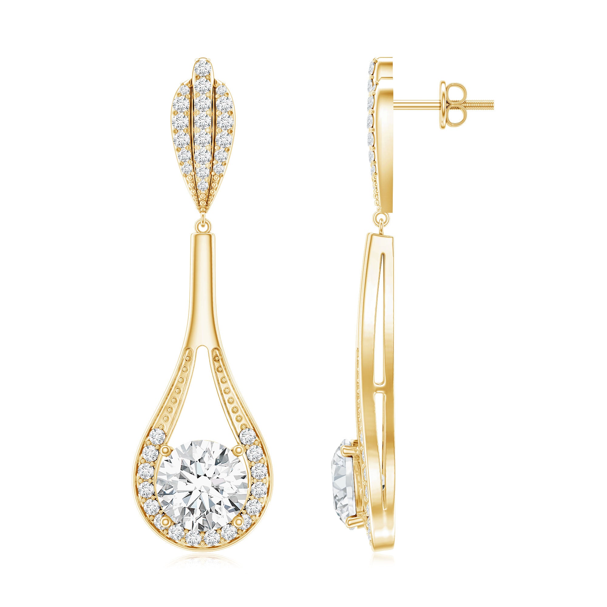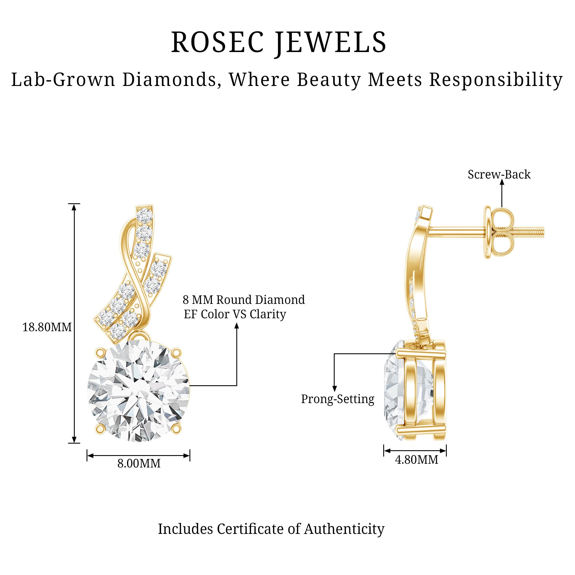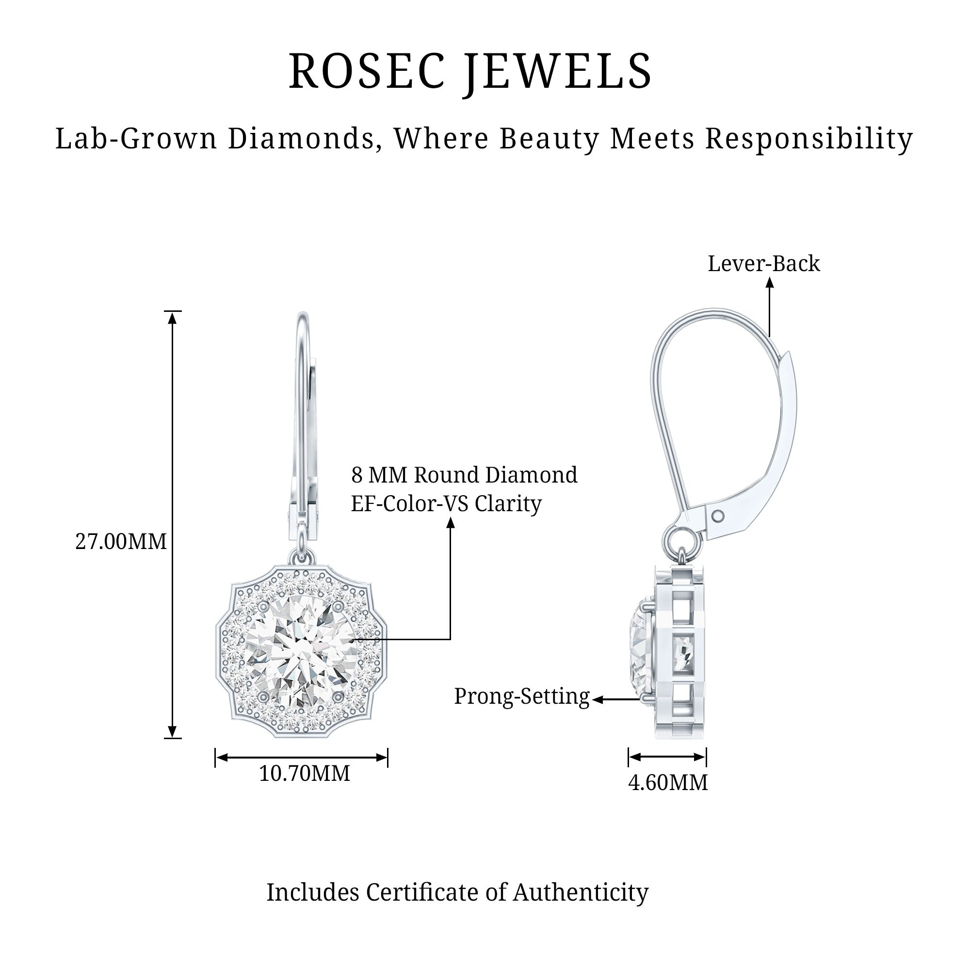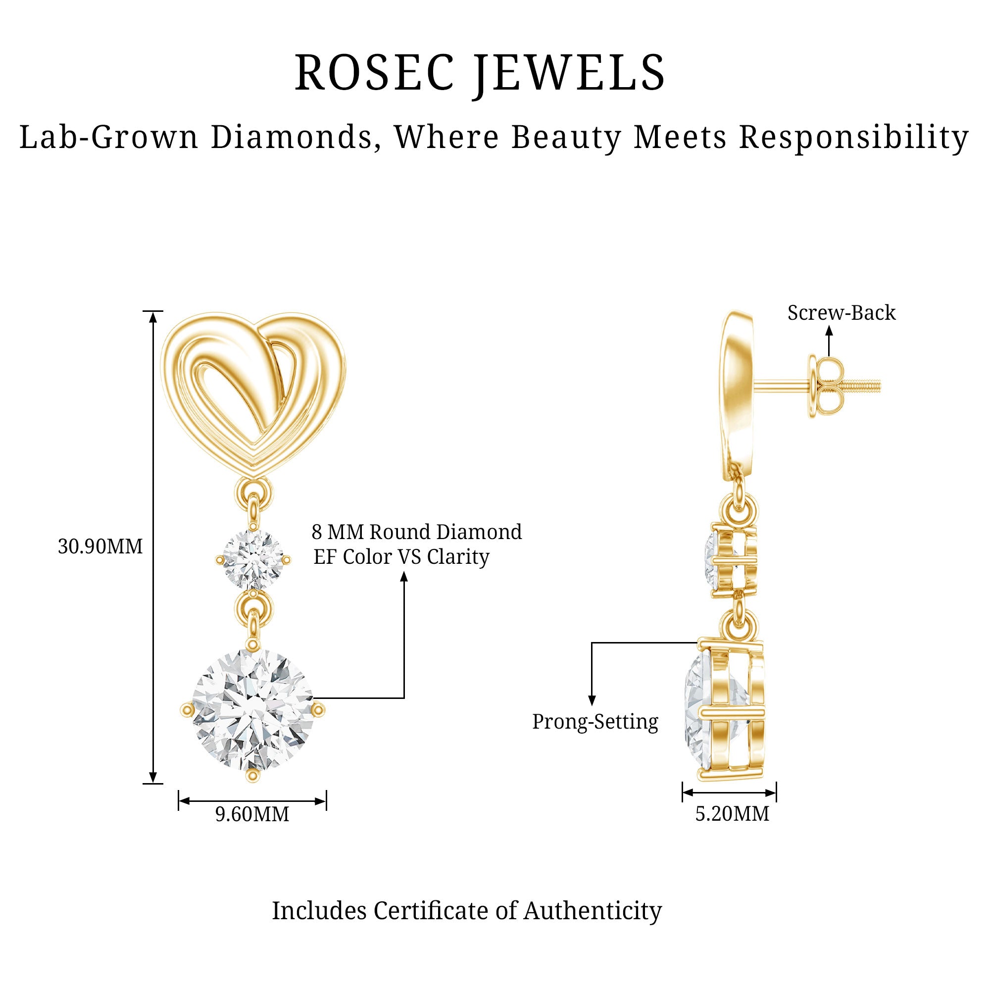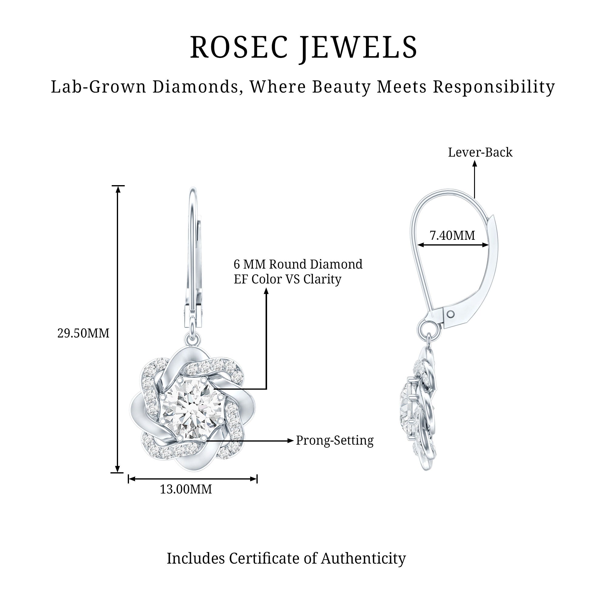 Drop earrings usually hang under an inch to a few inches in length, below the earlobe. The shorter lab grown diamond drops are usually preferred for casual occasions, while longer styles make a striking statement for formal events.