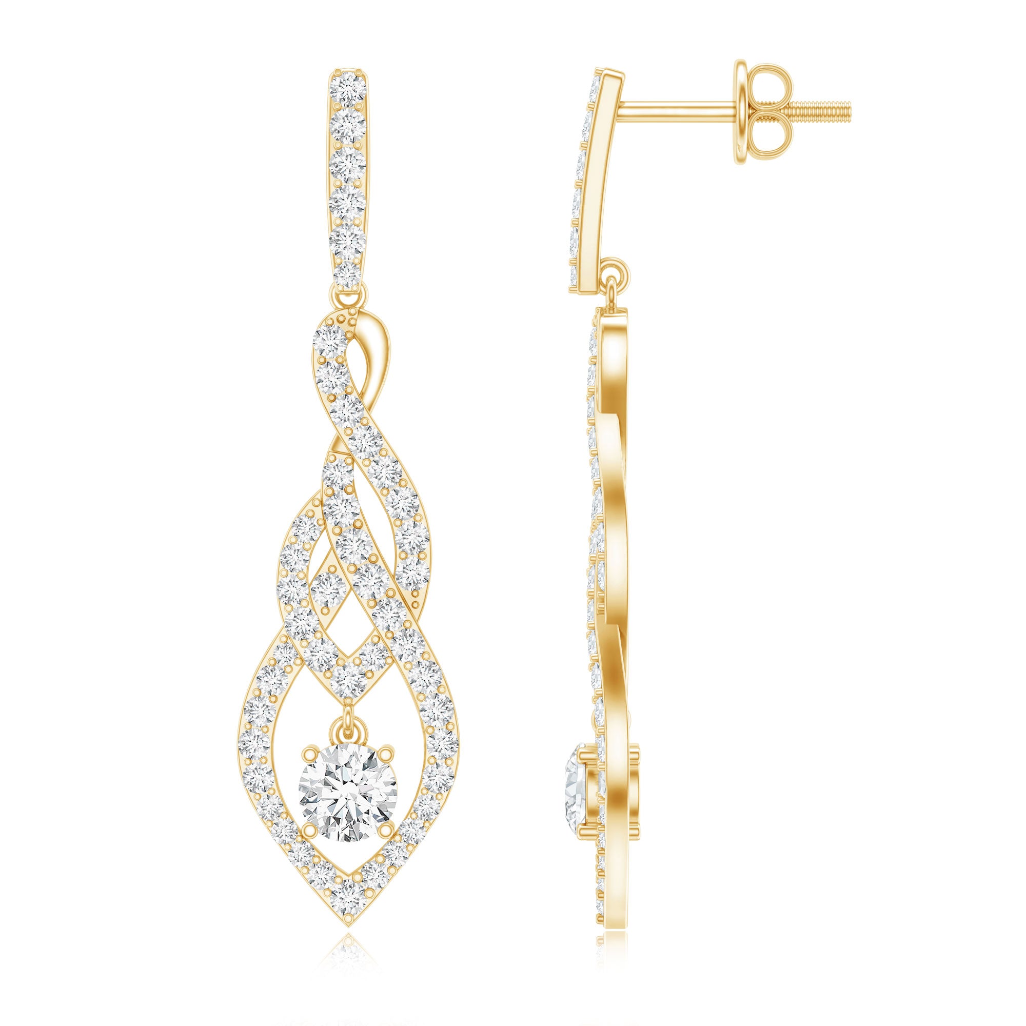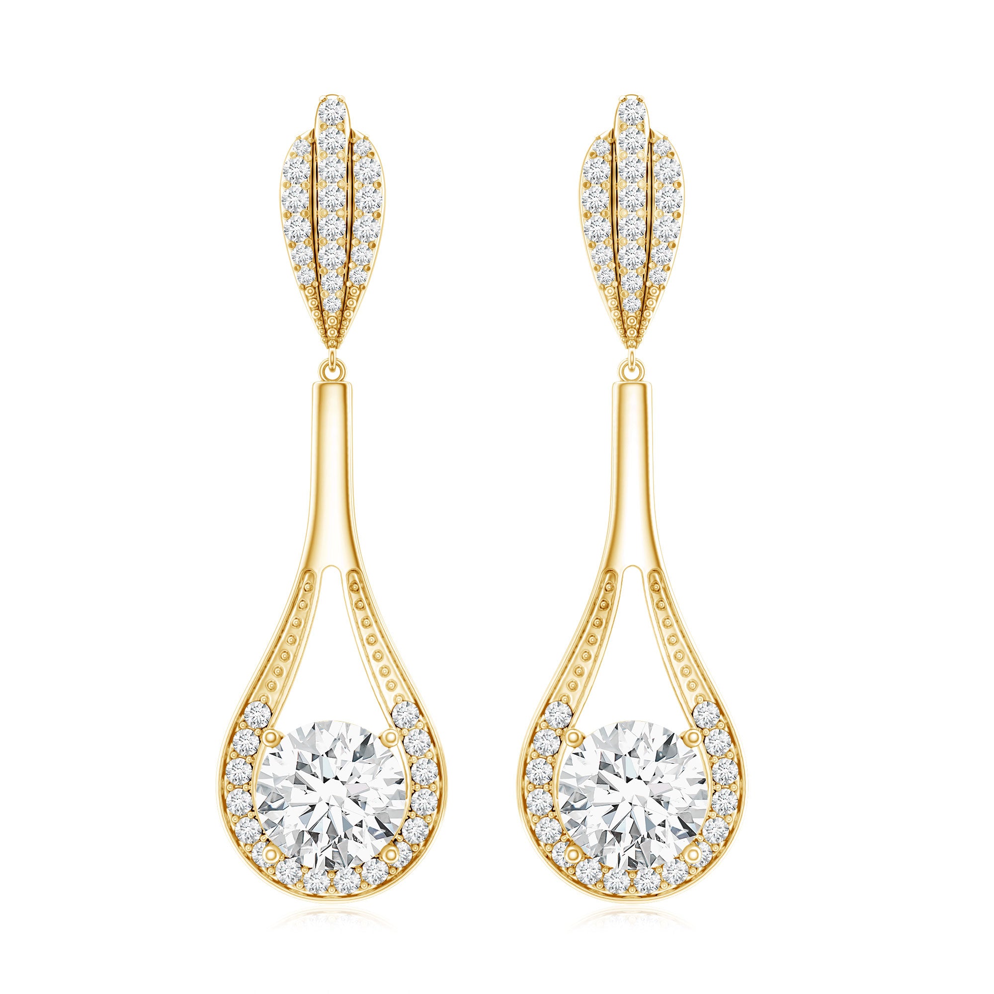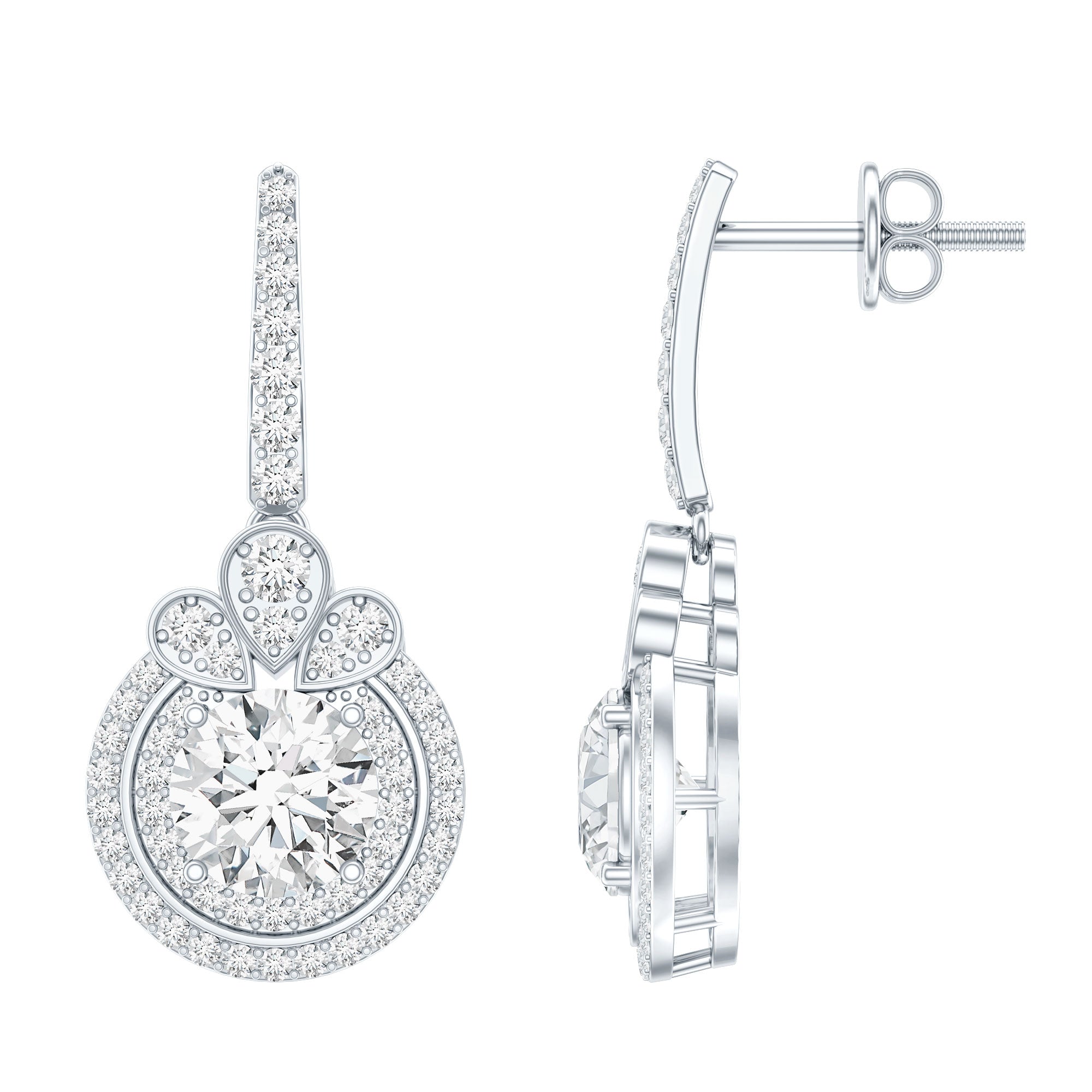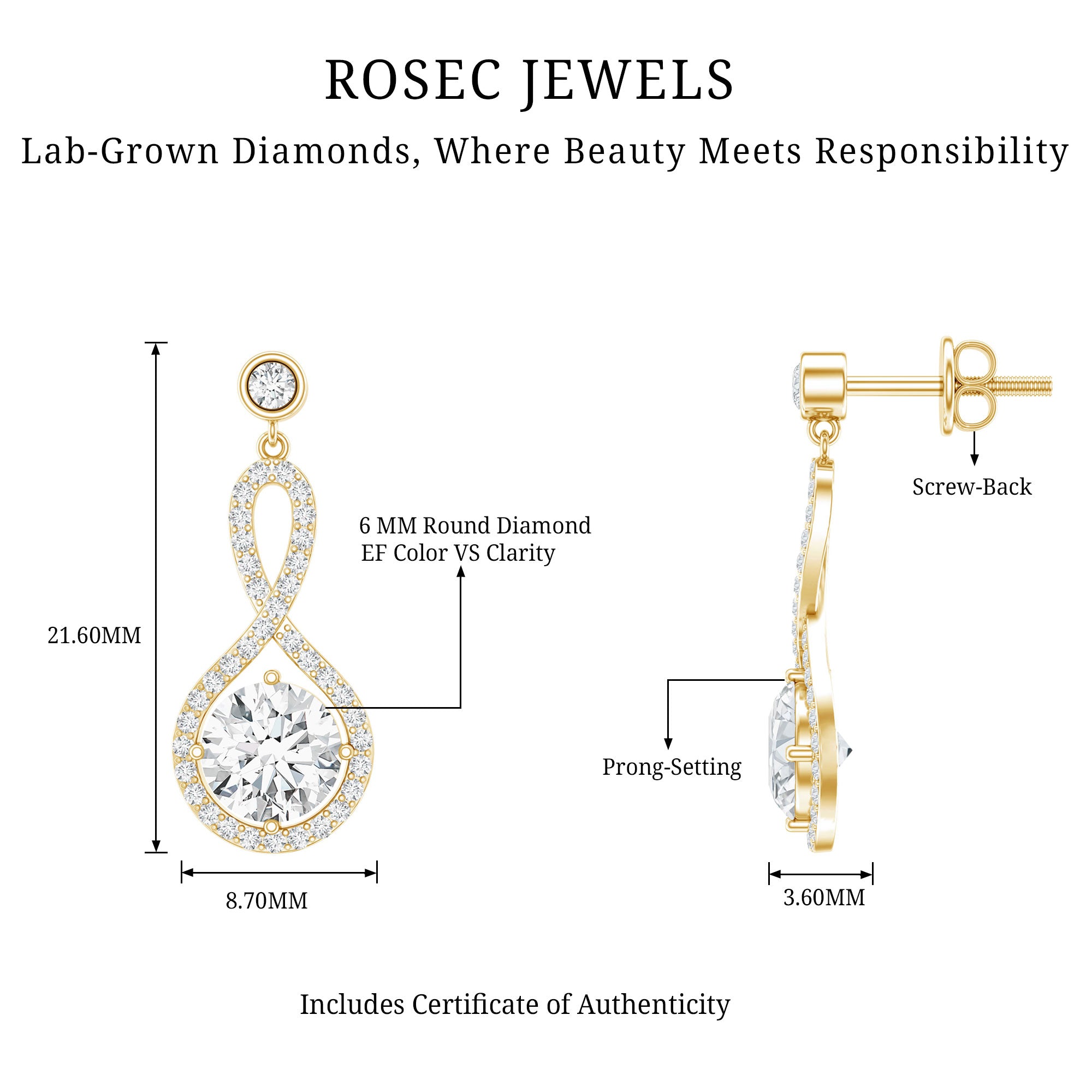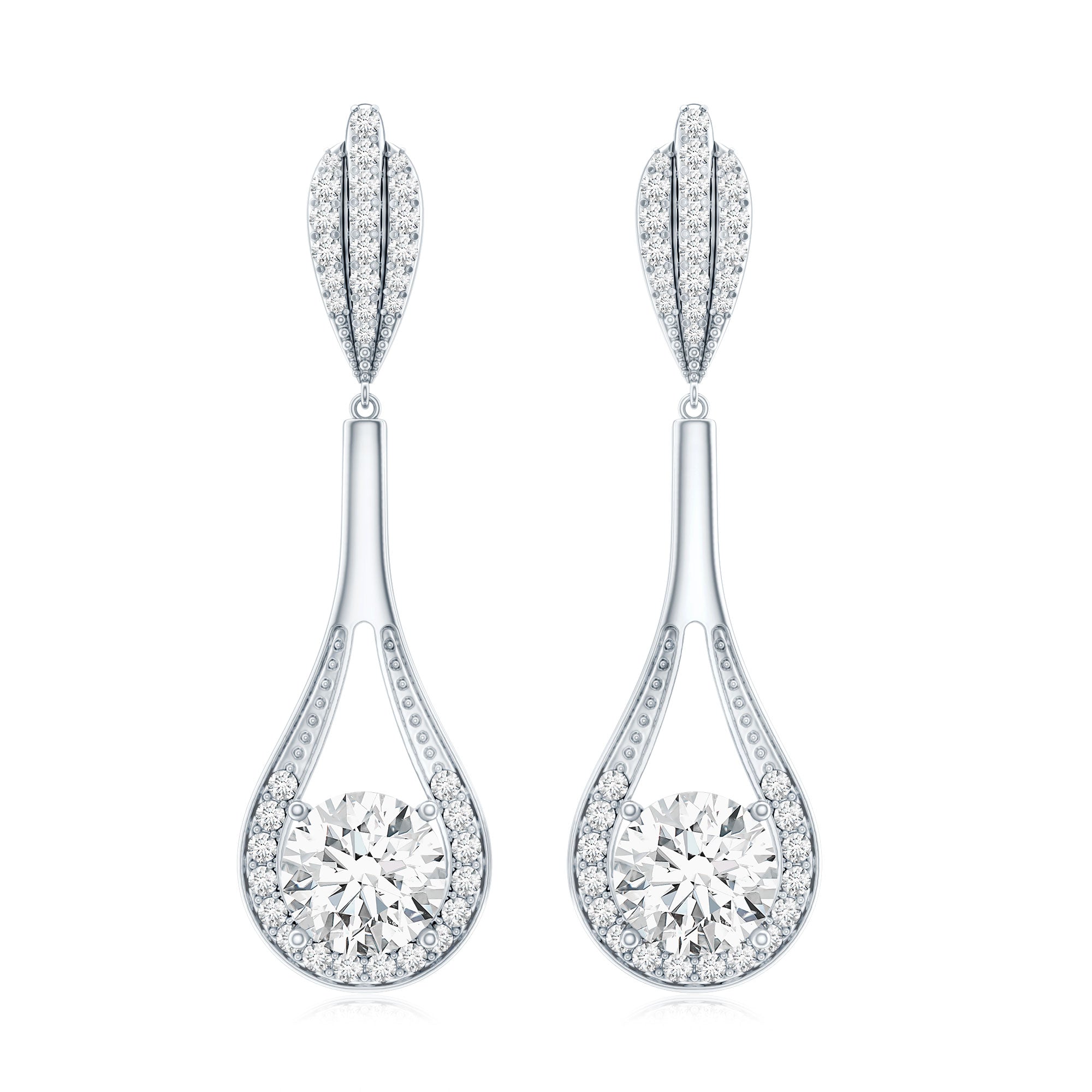 Drop earrings usually hang under an inch to a few inches in length, below the earlobe. The shorter lab grown diamond drops are usually preferred for casual occasions, while longer styles make a striking statement for formal events.