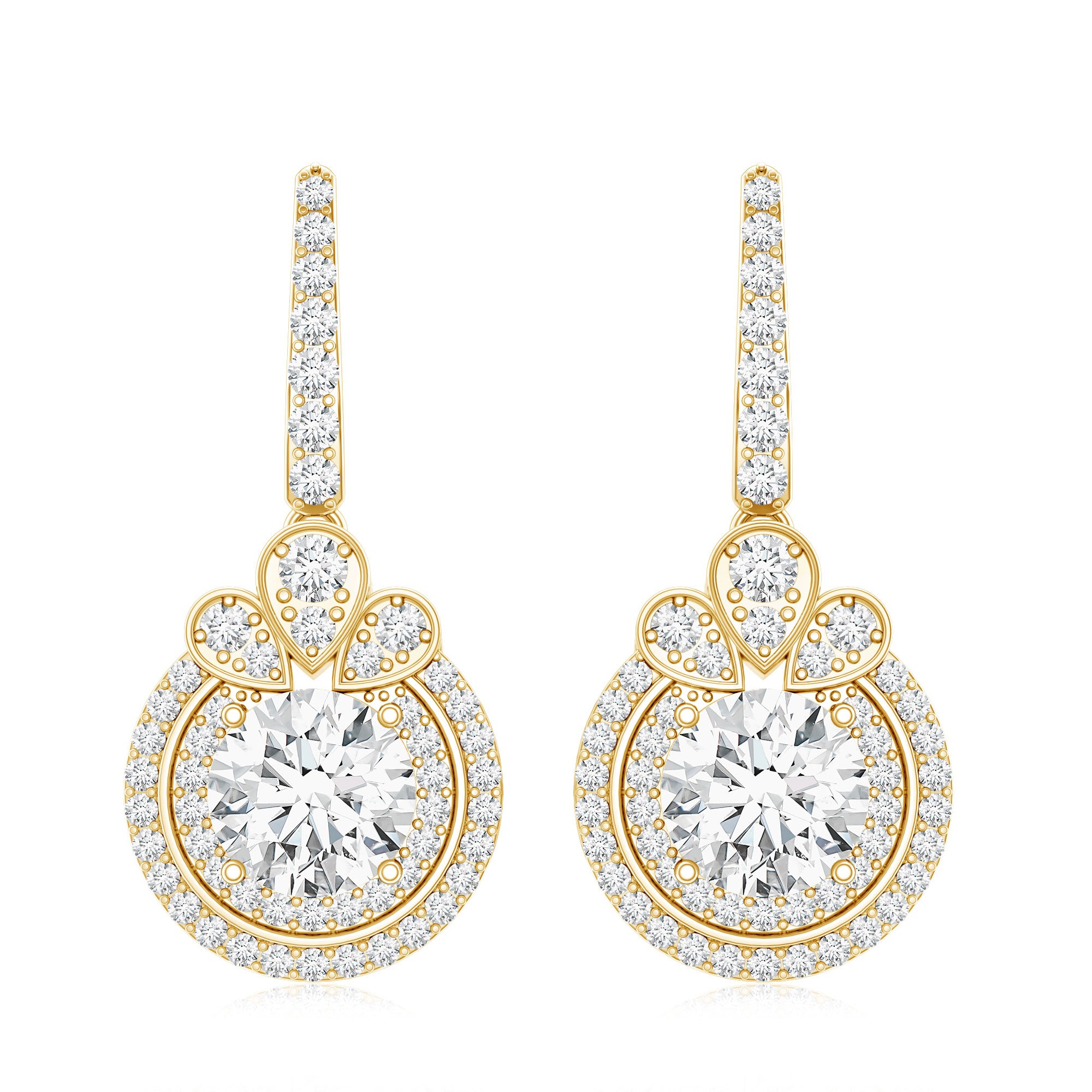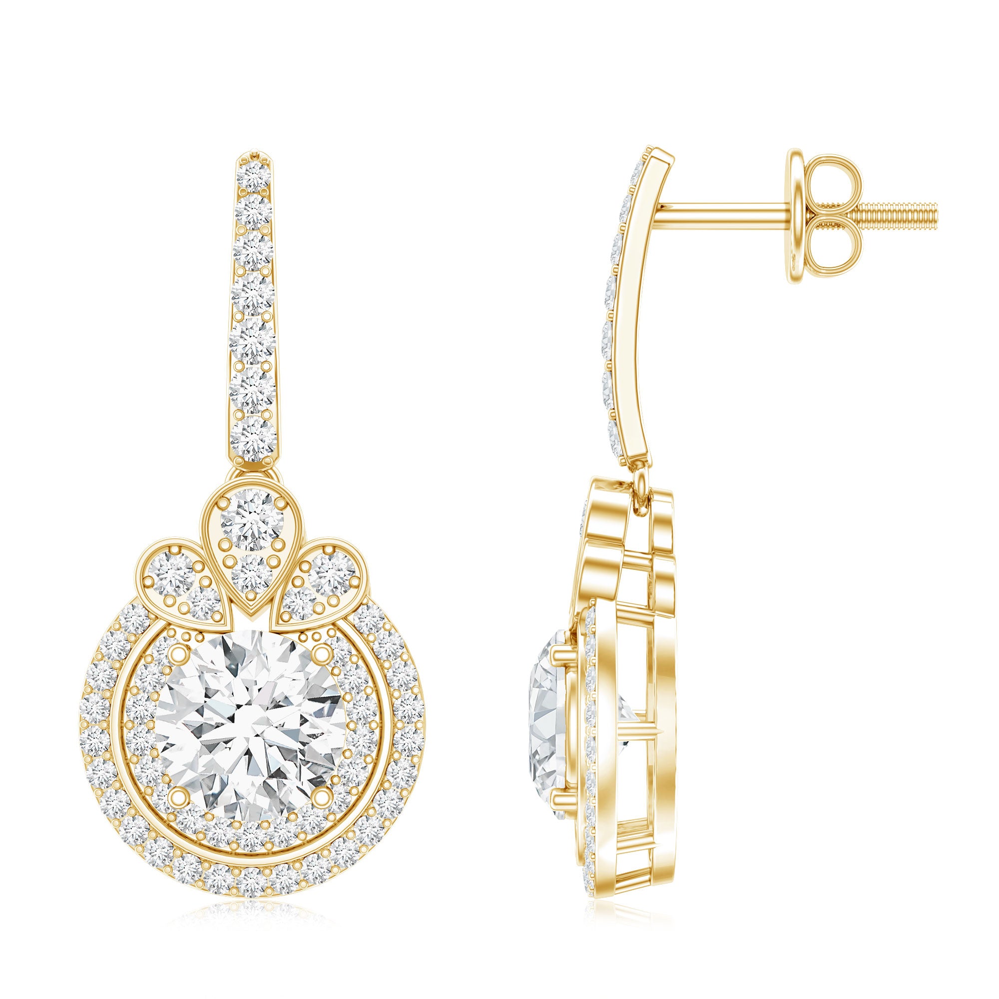 Lab grown diamond dangle earrings differentiate from drop earrings in their length and level of movement. Dangle earrings hang lower than drop earrings and swing more with every move.