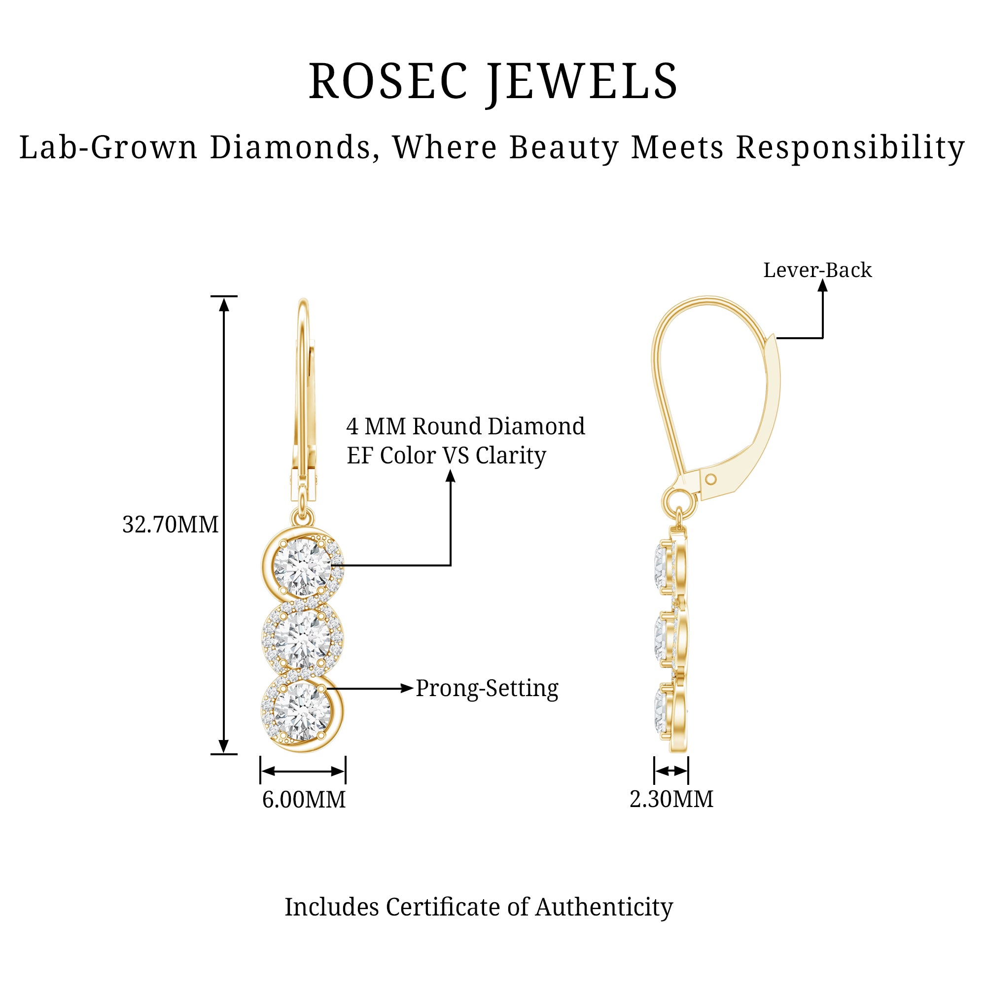 Price & Easy Availability: Lab grown diamond drop earrings price is another big reason for choosing them. Easily available and ethically made, these luxurious earrings come without that heavy price tag.