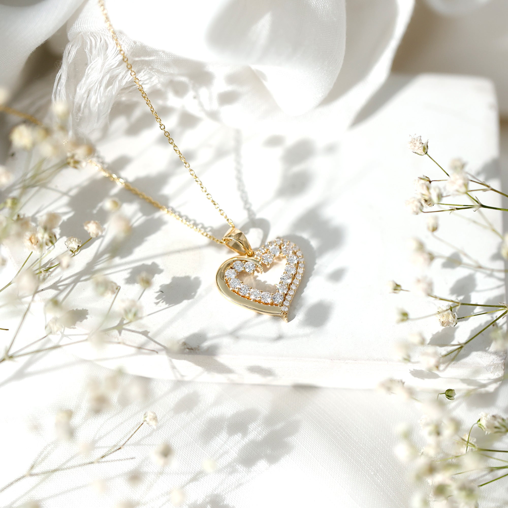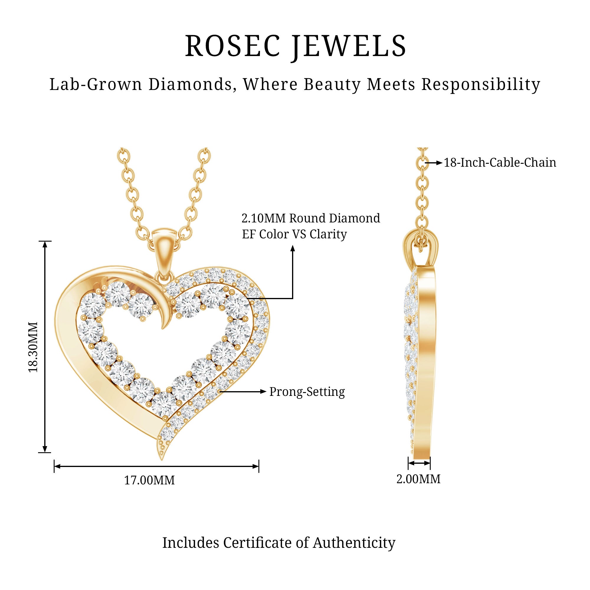 Heart: This romantic lab diamond necklace style features a heart shaped gemstone of different sizes or a metal frame pendant adorned with lab grown diamonds. A captivating piece to express your love in a stylish and meaningful way.