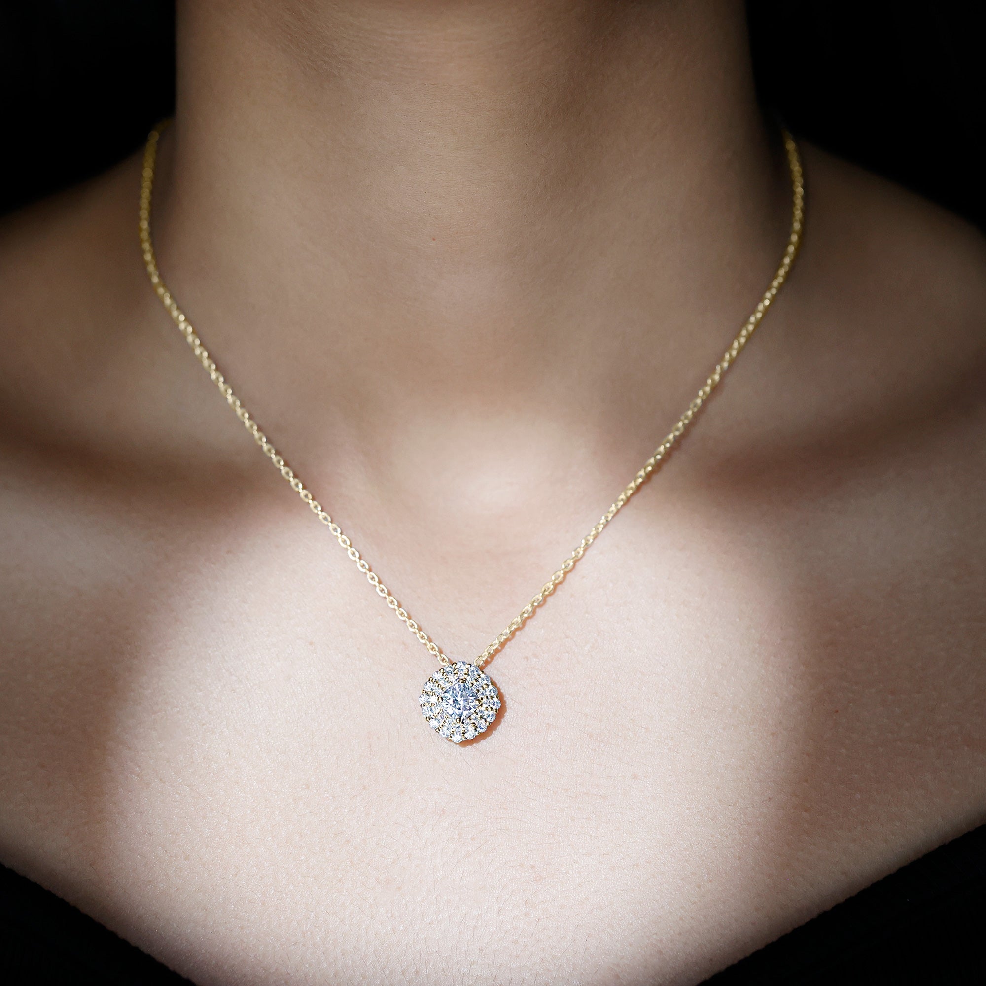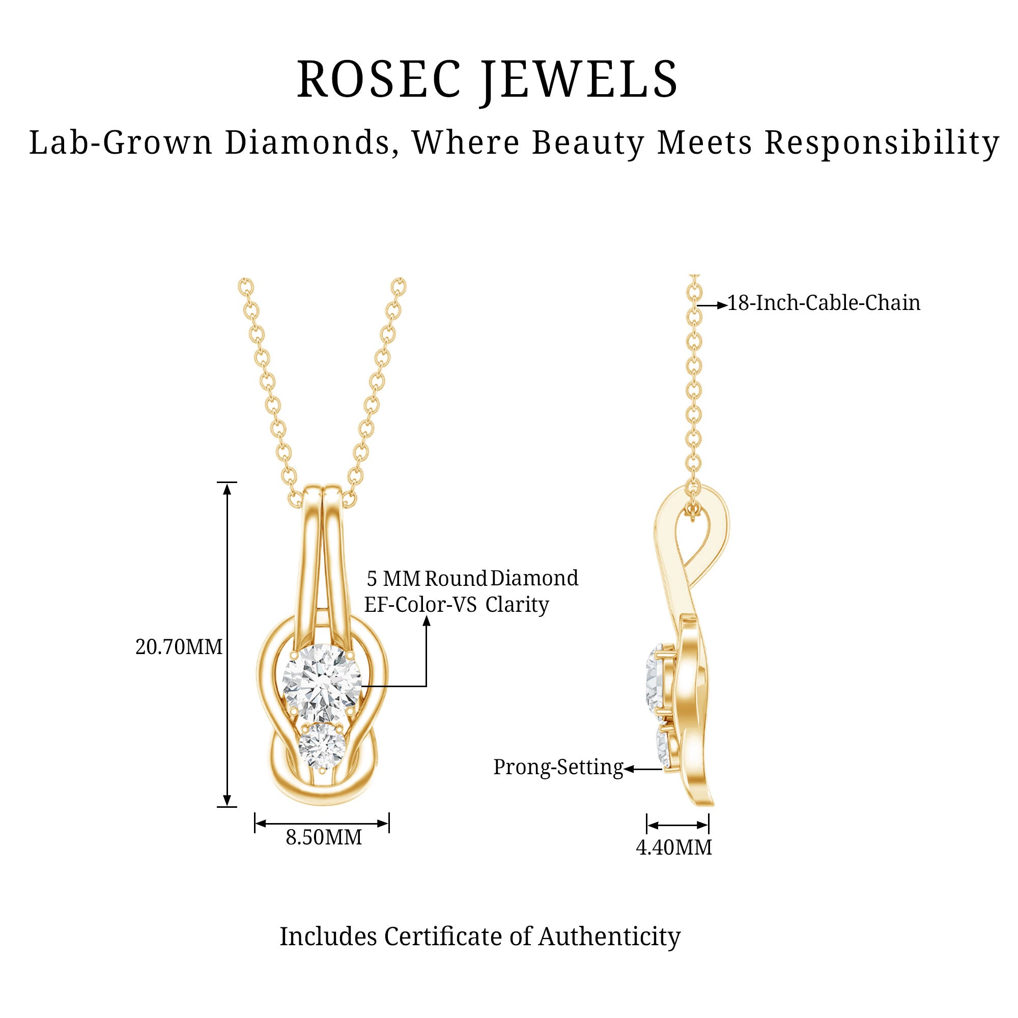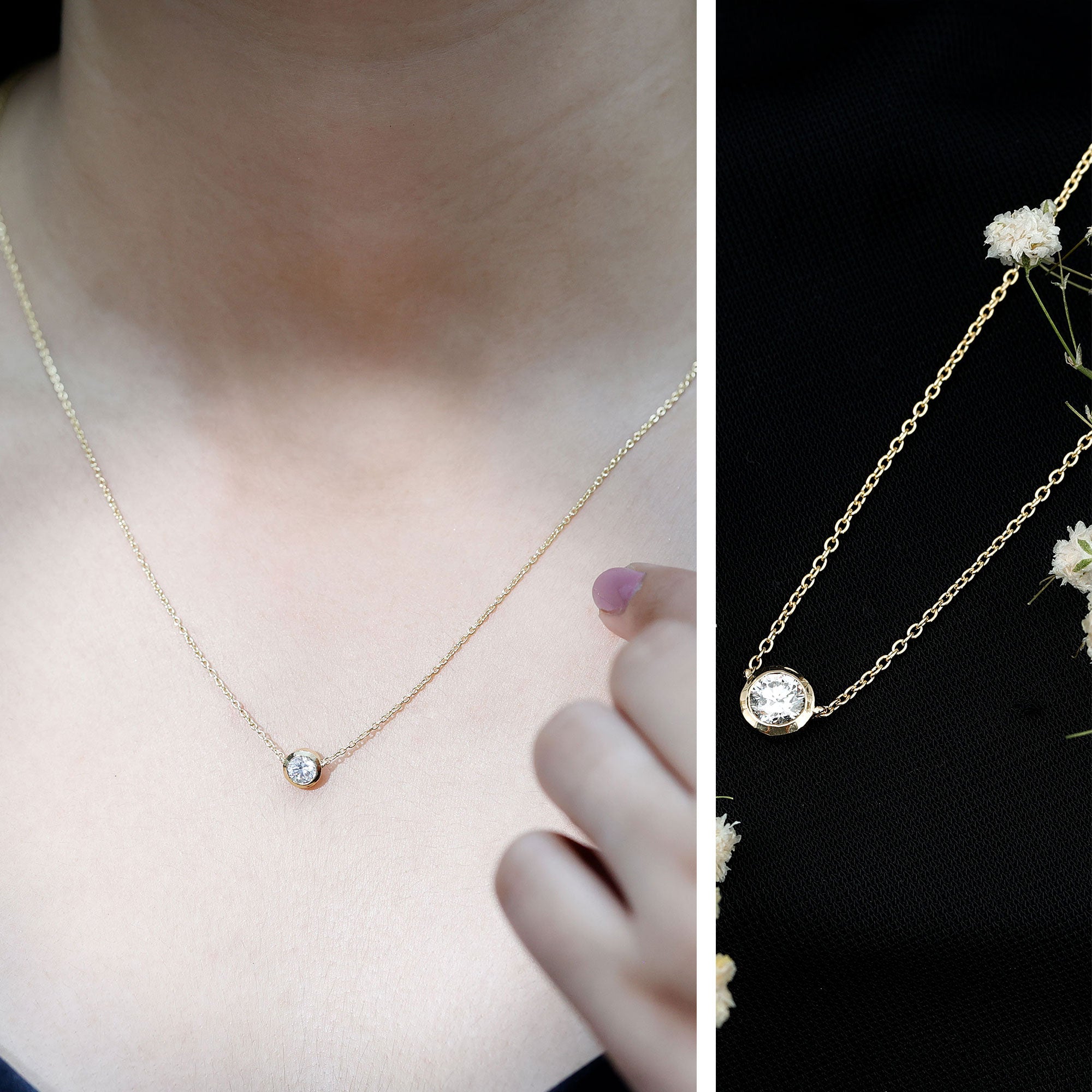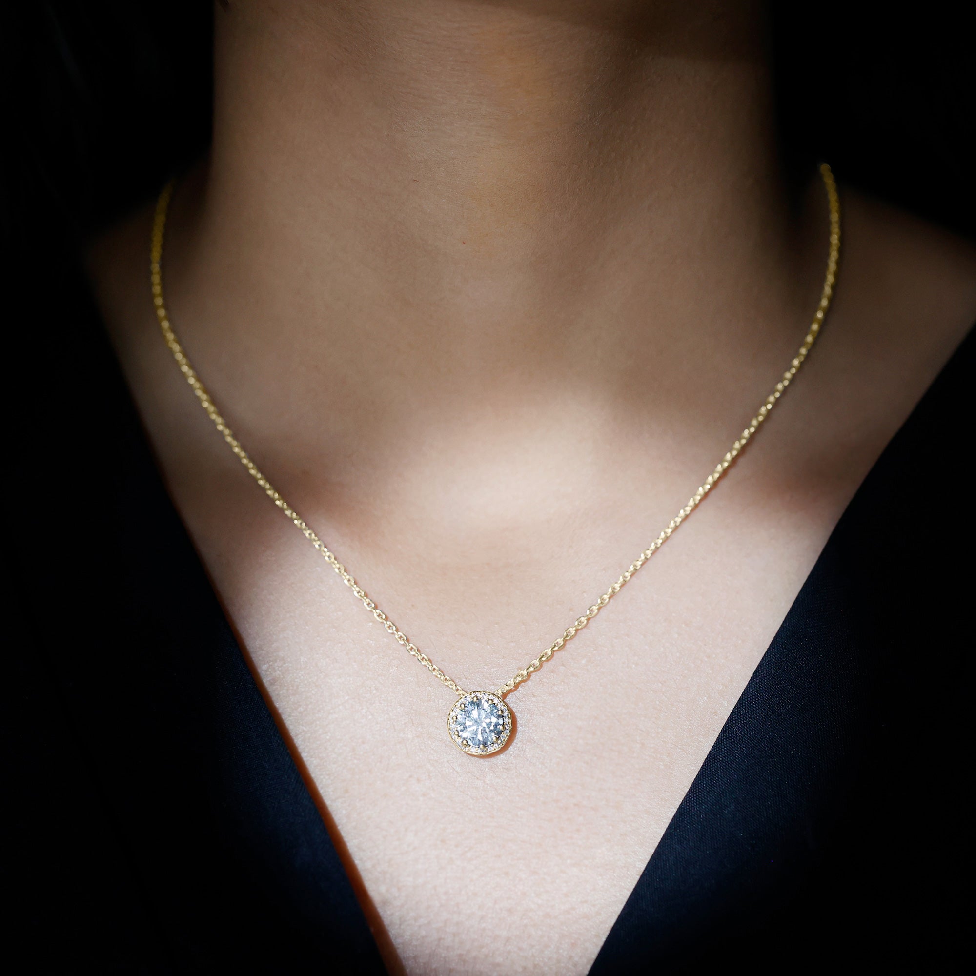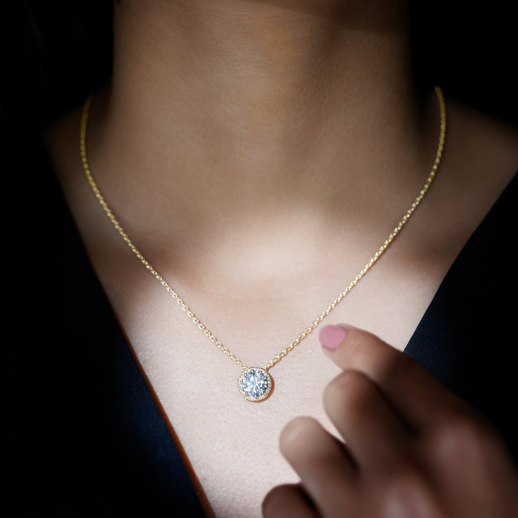 Solitaire: One of the classic styles that features a single lab grown diamond in the center in different shapes. Our lab grown diamond pendant is one of the favorite picks for almost all occasions.