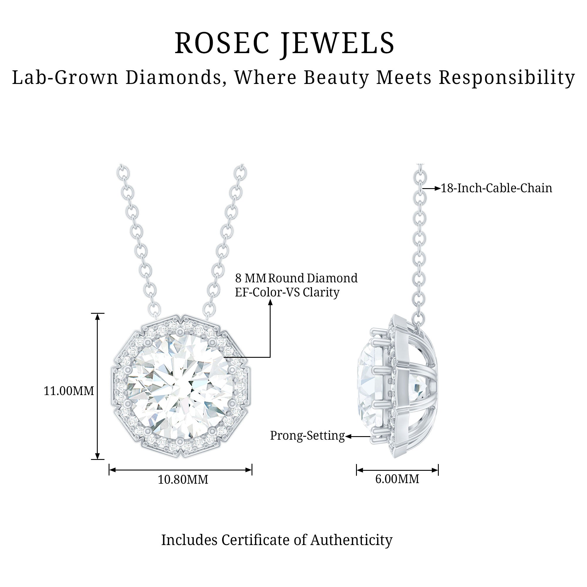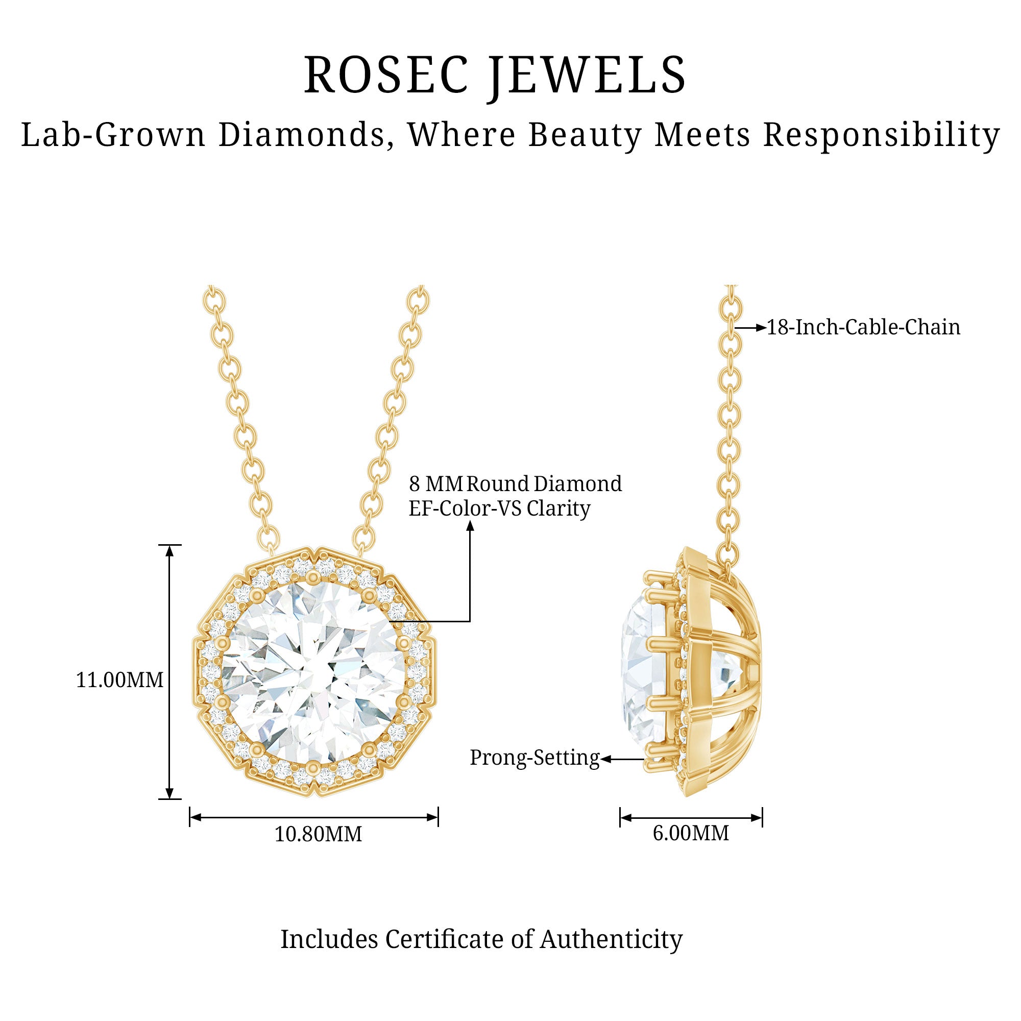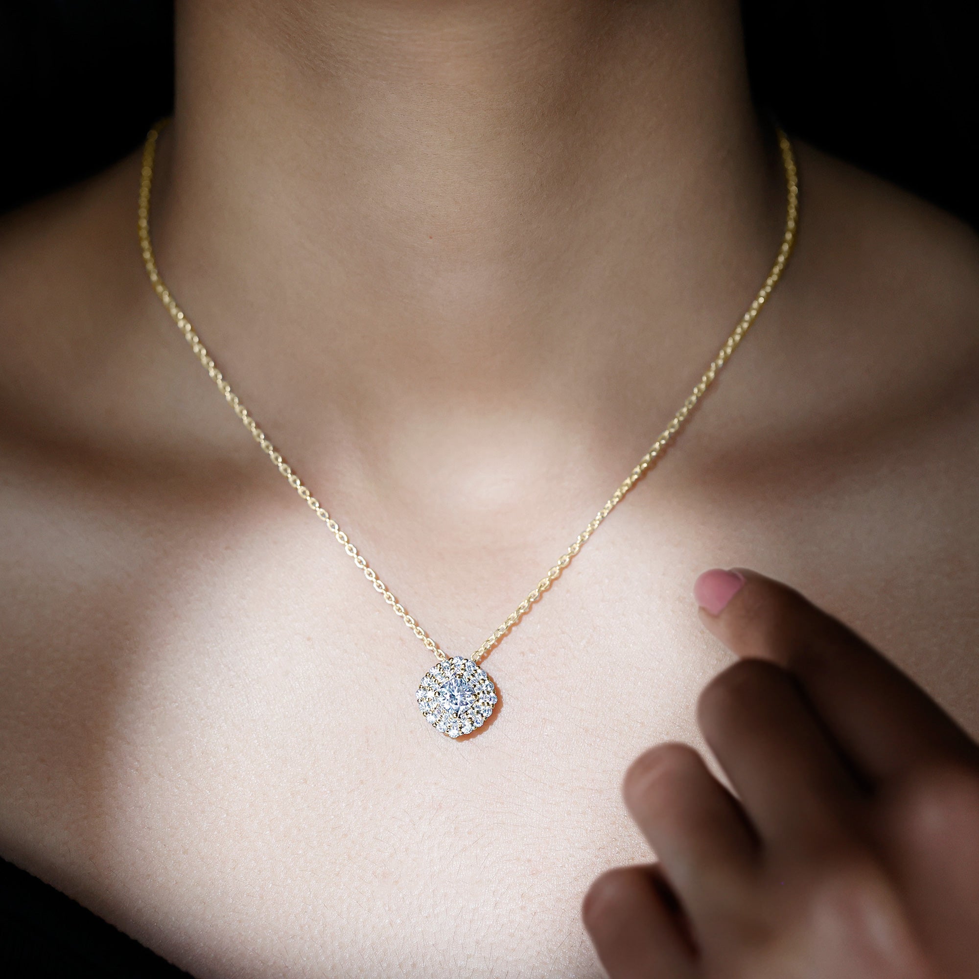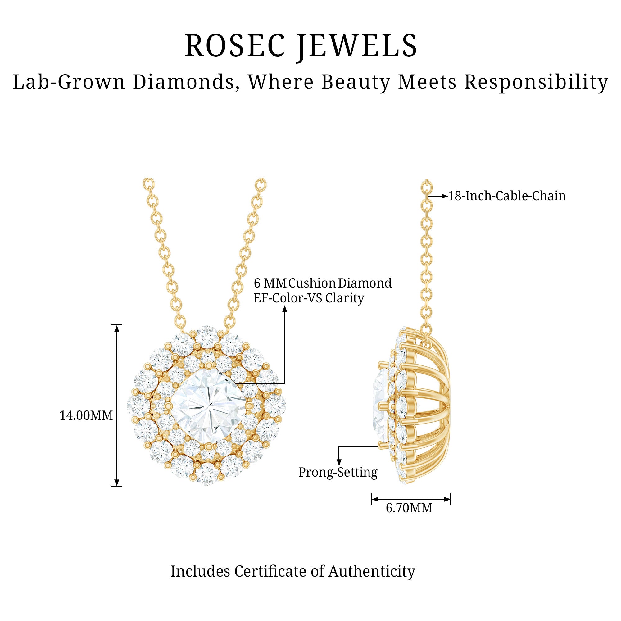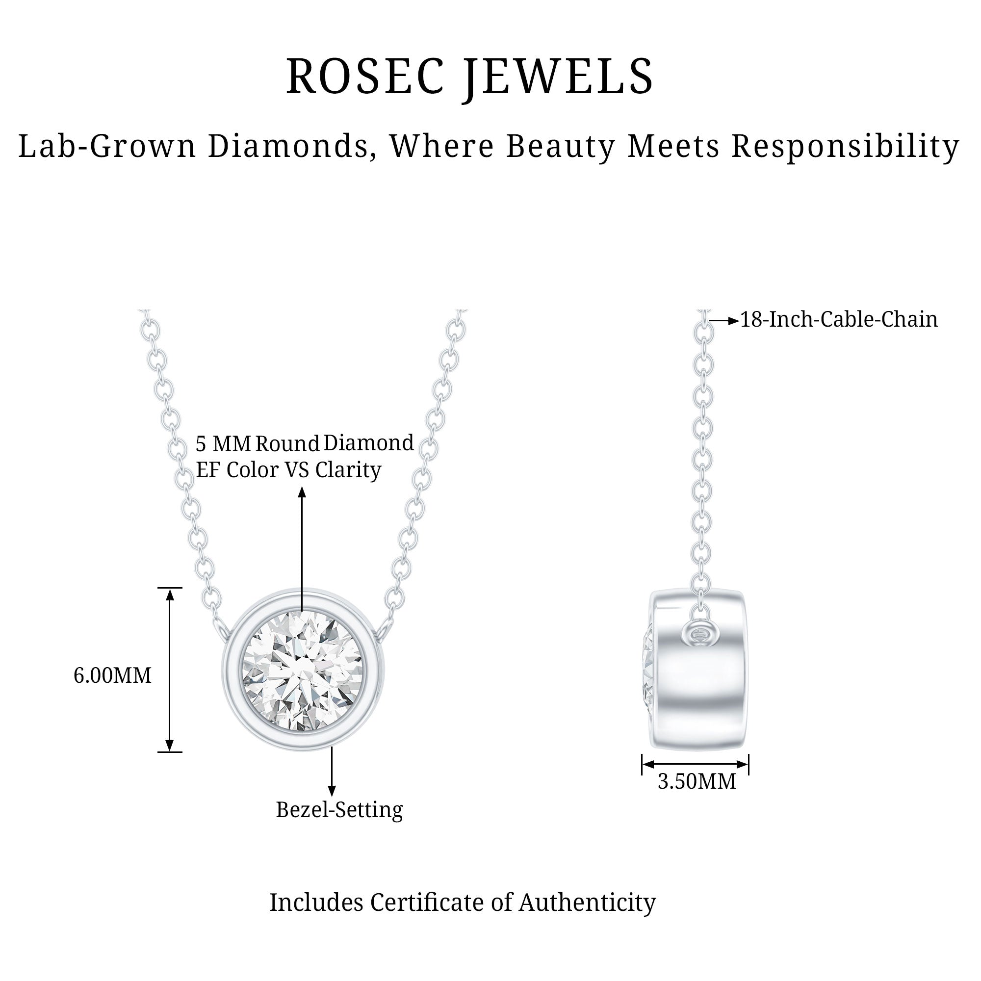 Solitaire: One of the classic styles that features a single lab grown diamond in the center in different shapes. Our lab grown diamond pendant is one of the favorite picks for almost all occasions.