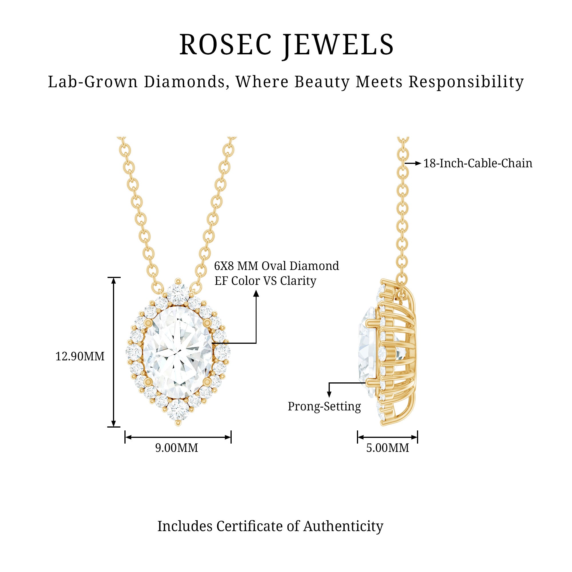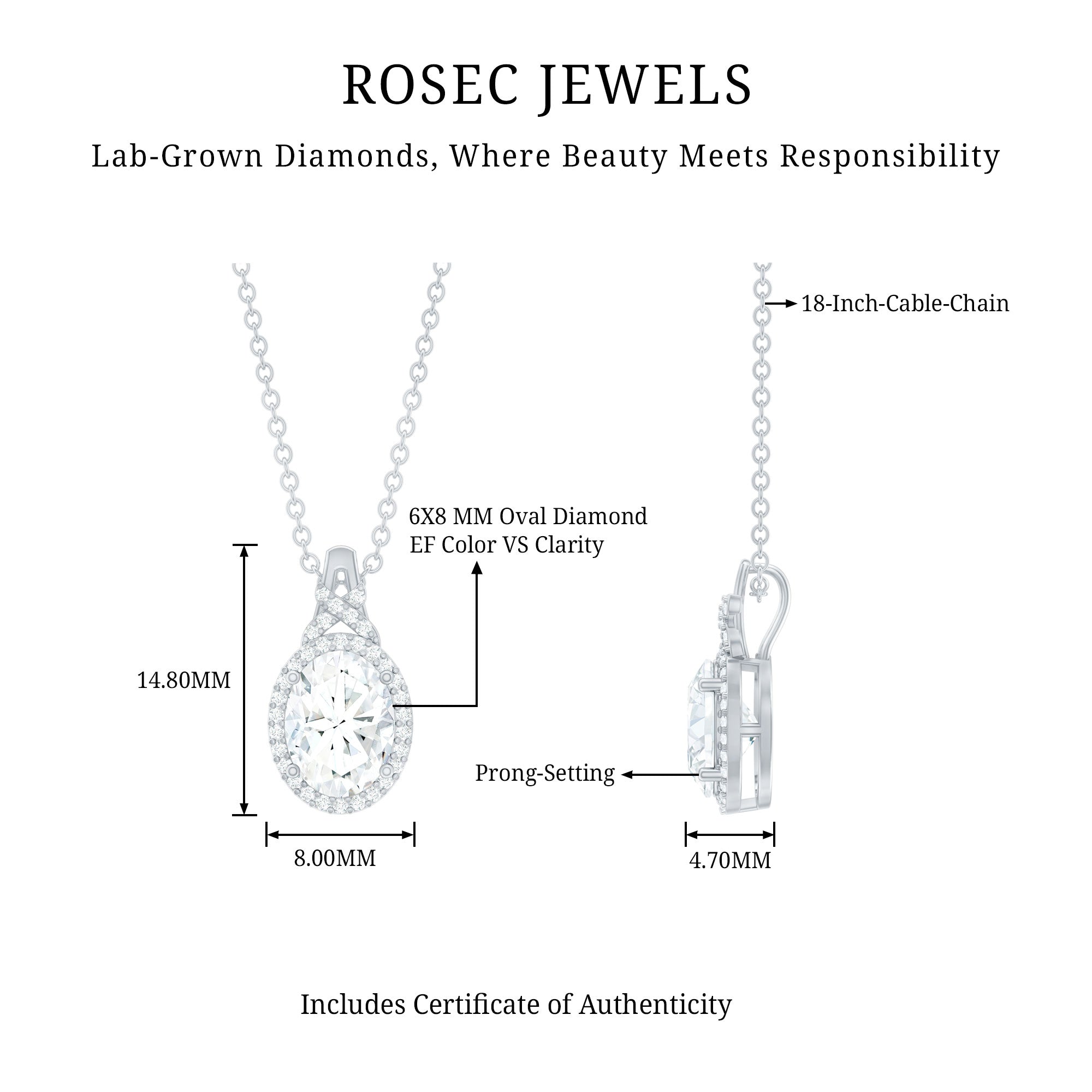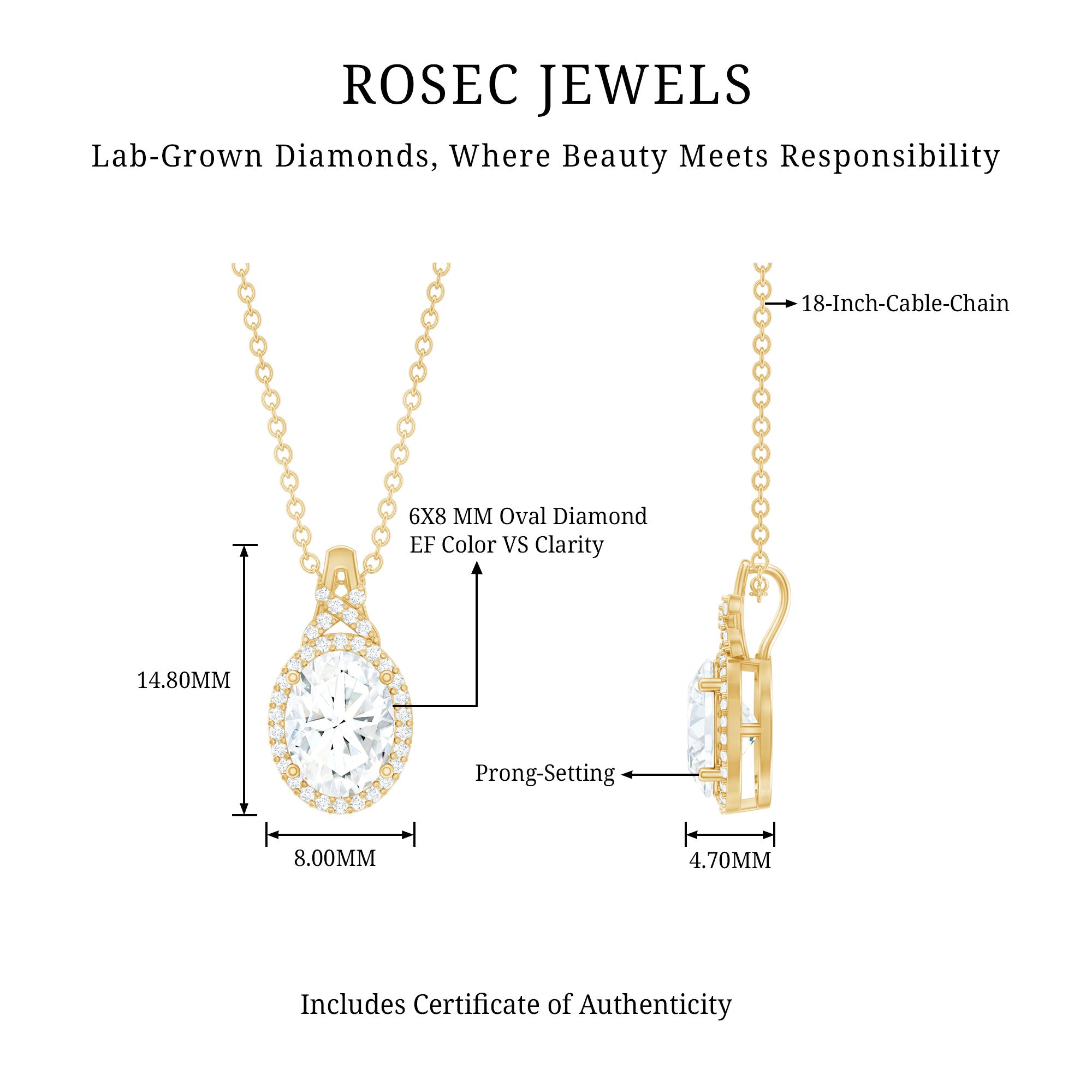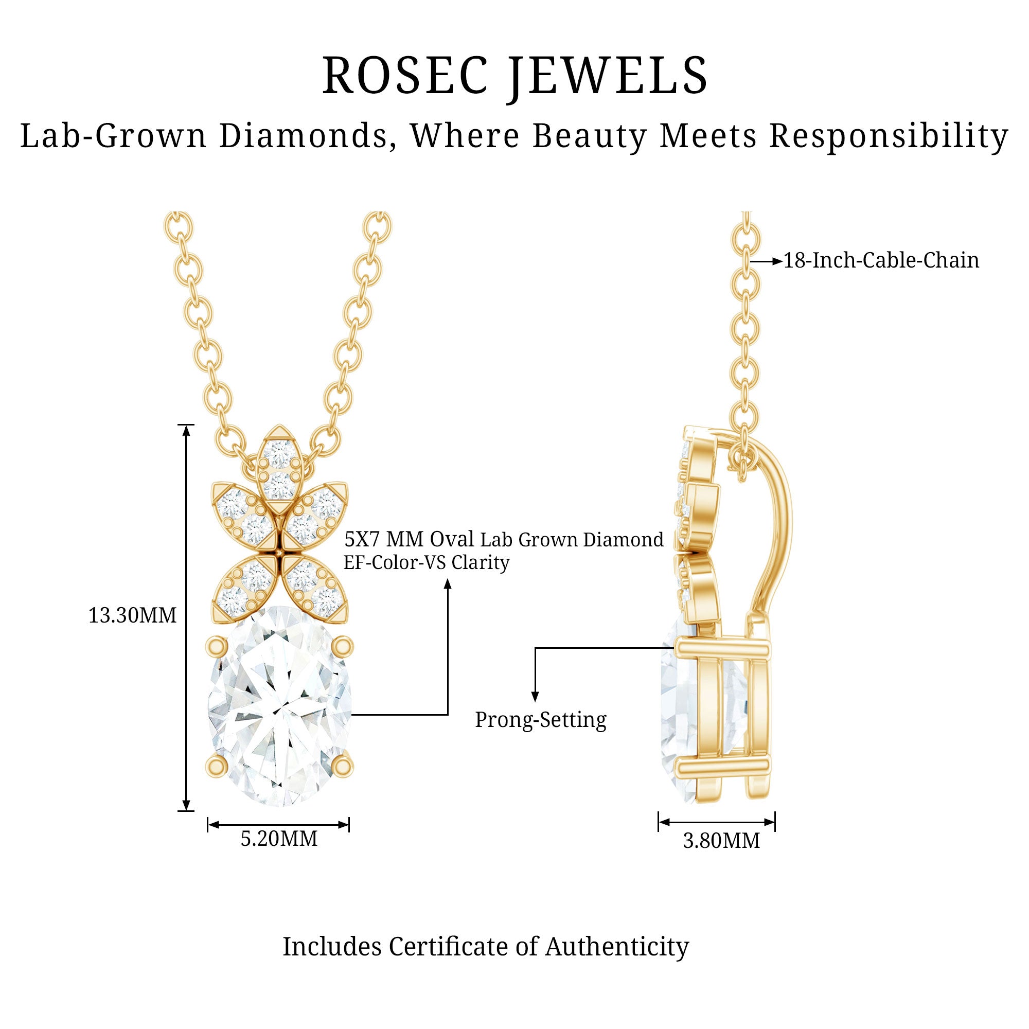 Solitaire: One of the classic styles that features a single lab grown diamond in the center in different shapes. Our lab grown diamond pendant is one of the favorite picks for almost all occasions.