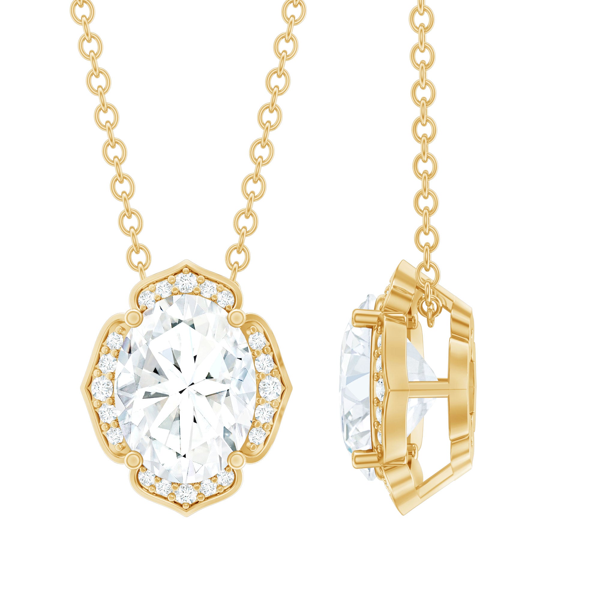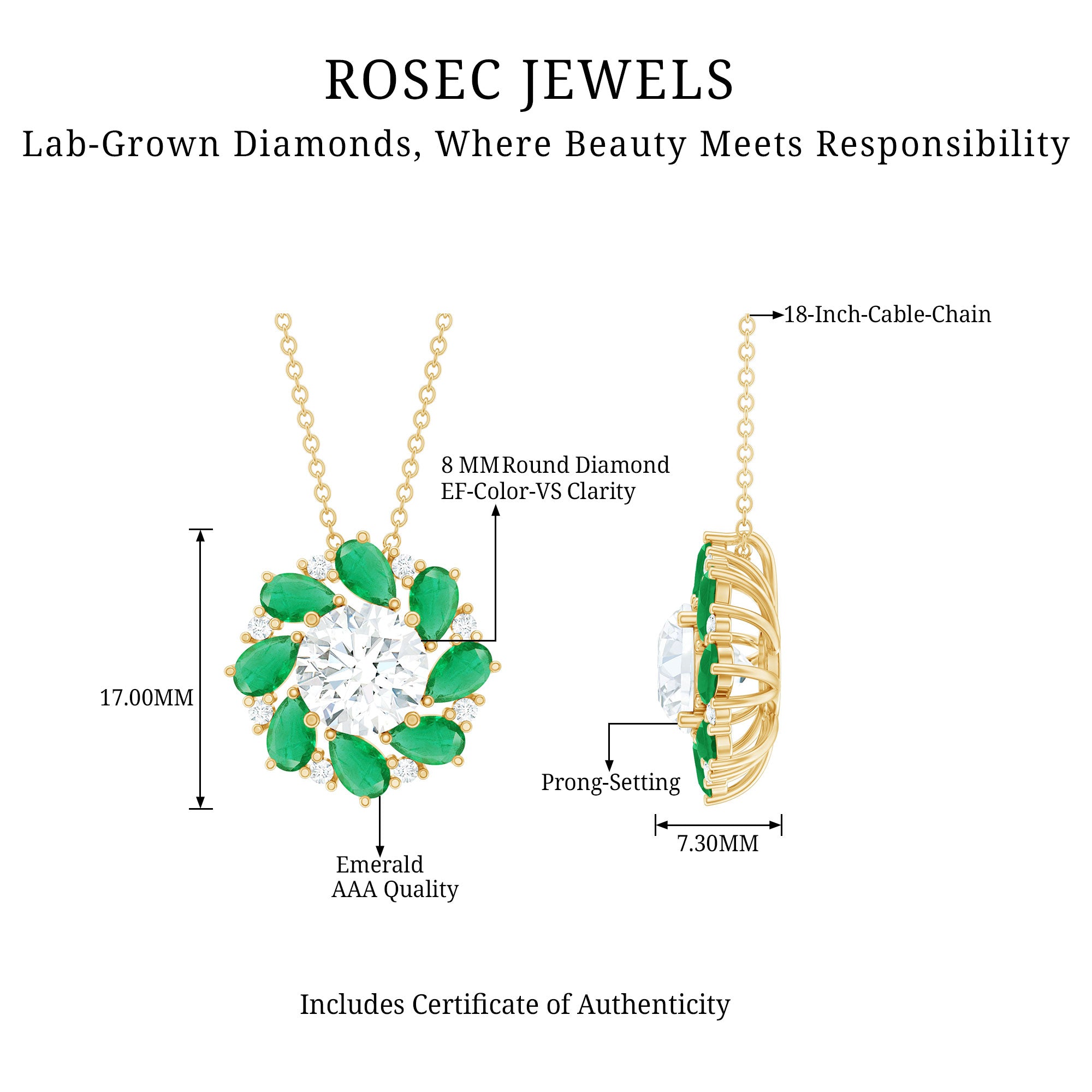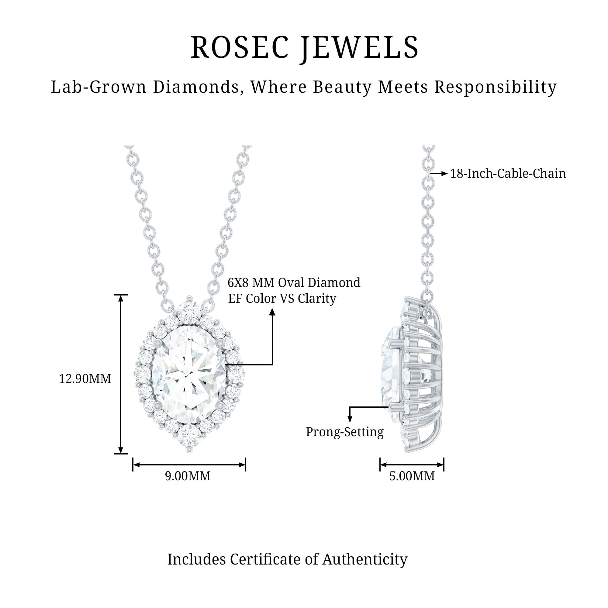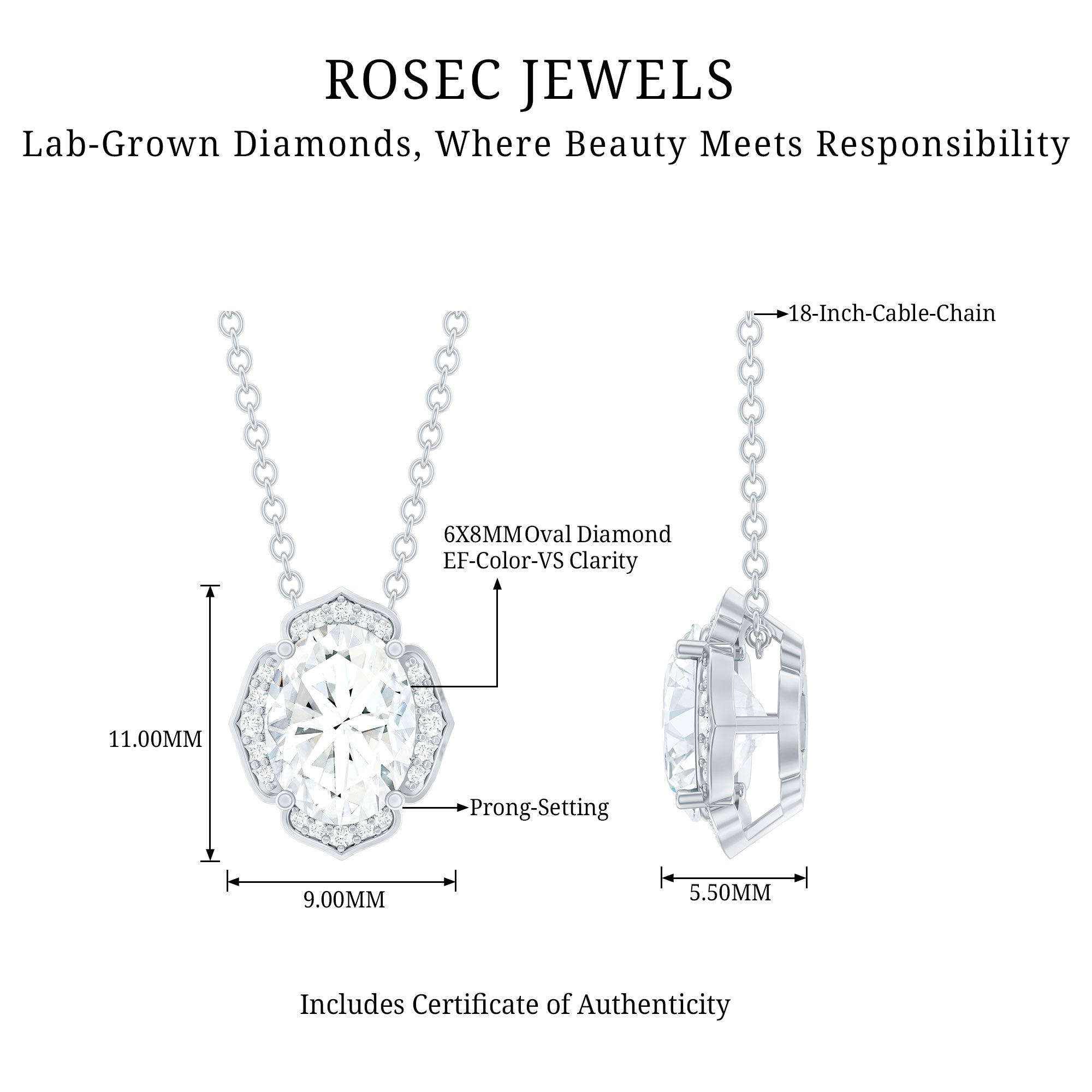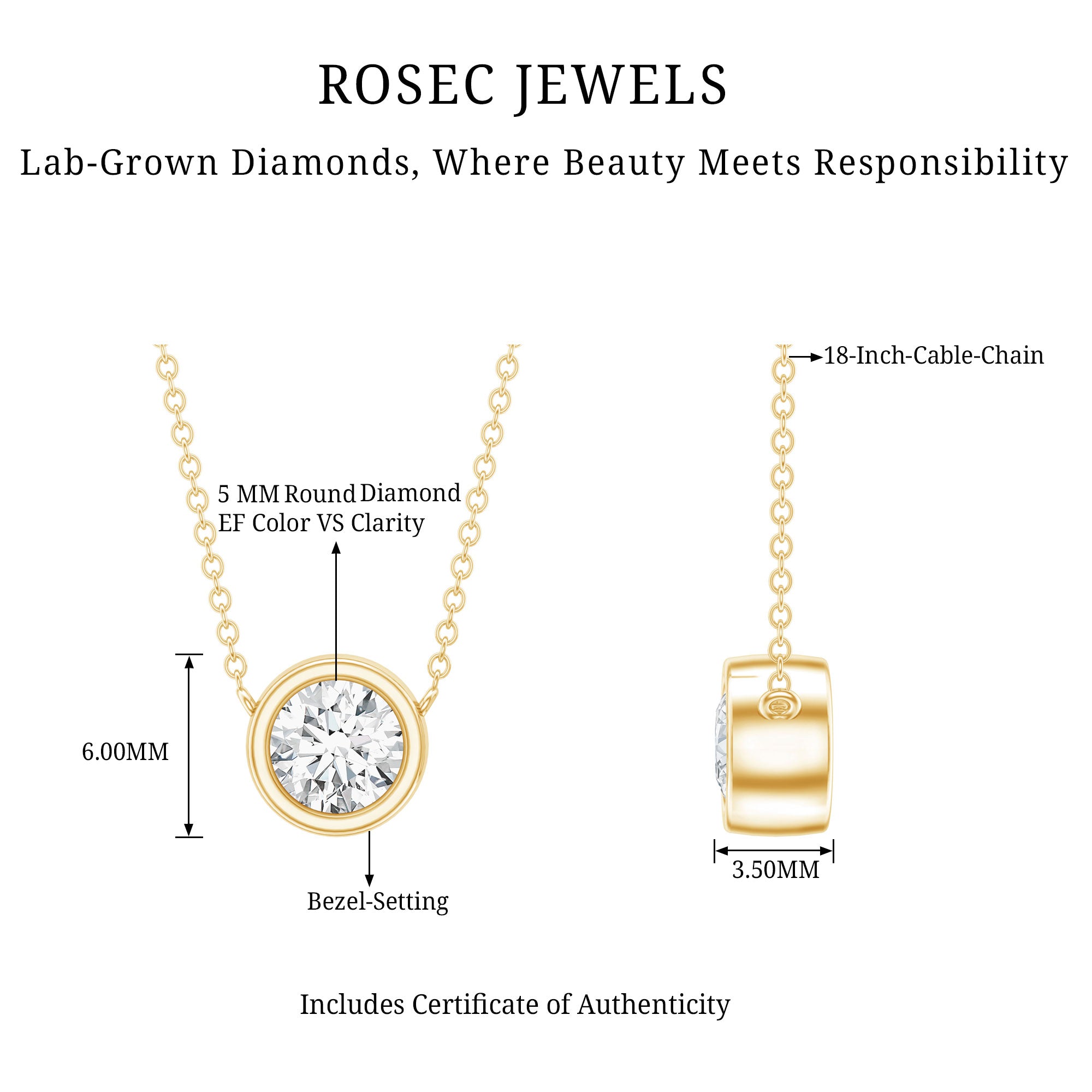 Solitaire: One of the classic styles that features a single lab grown diamond in the center in different shapes. Our lab grown diamond pendant is one of the favorite picks for almost all occasions.