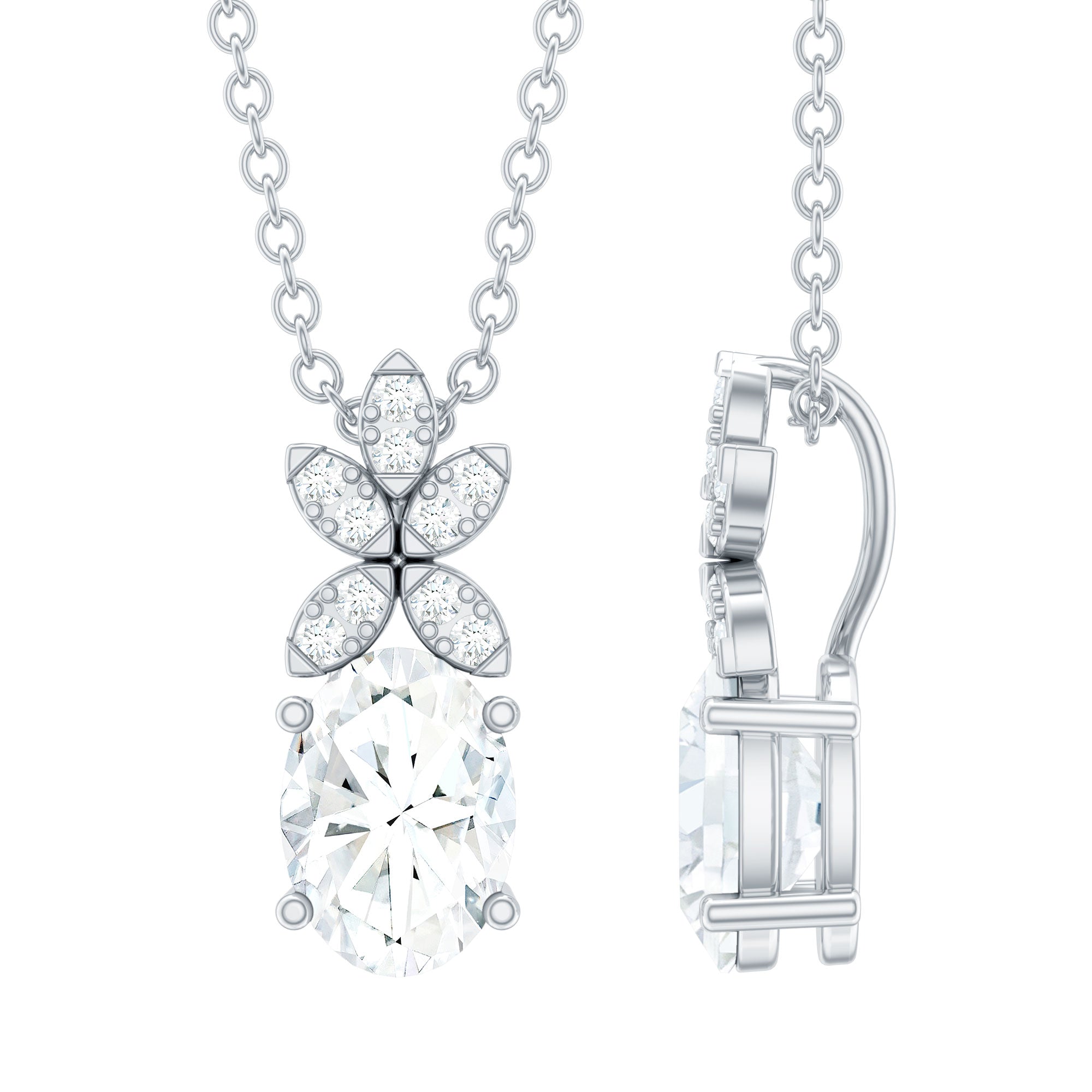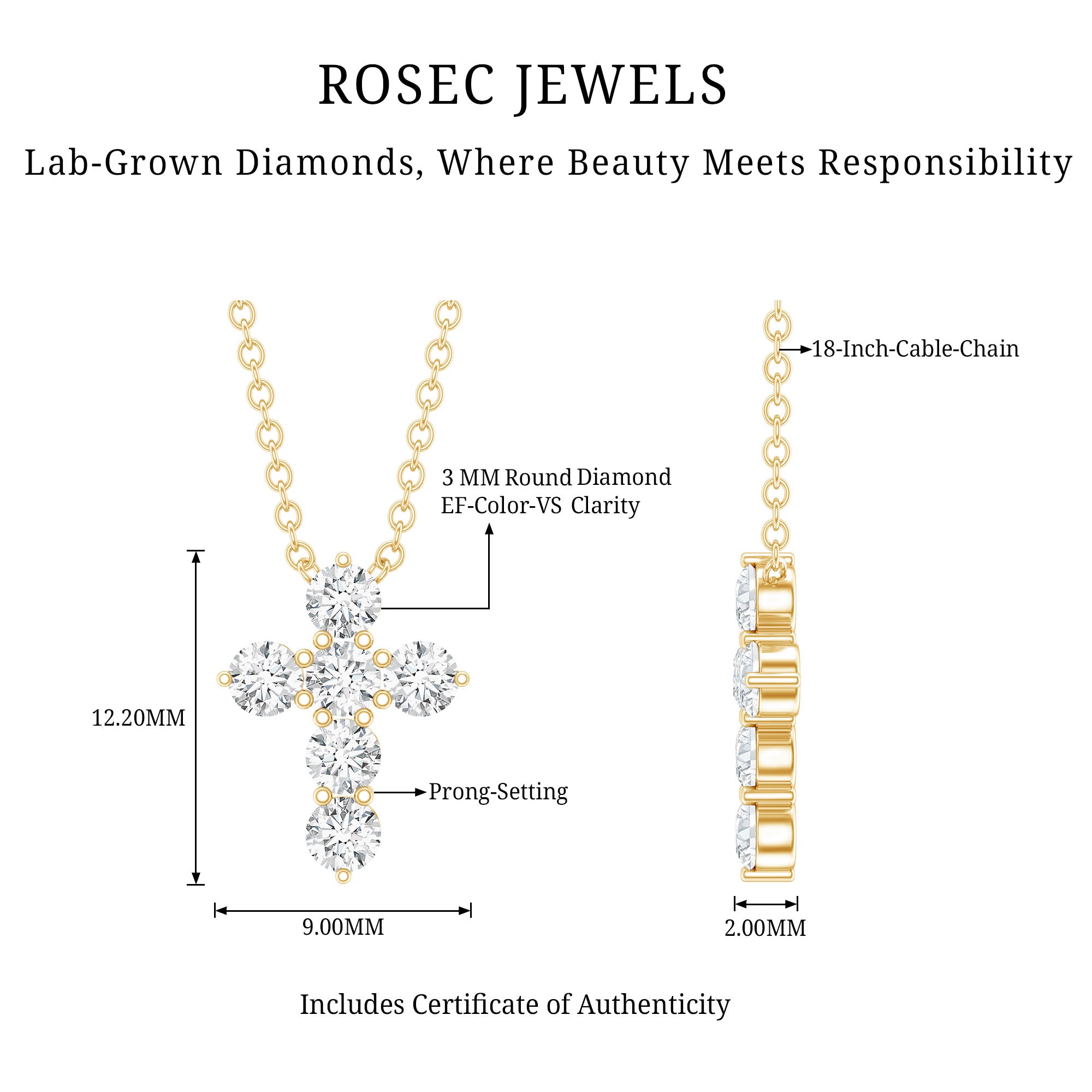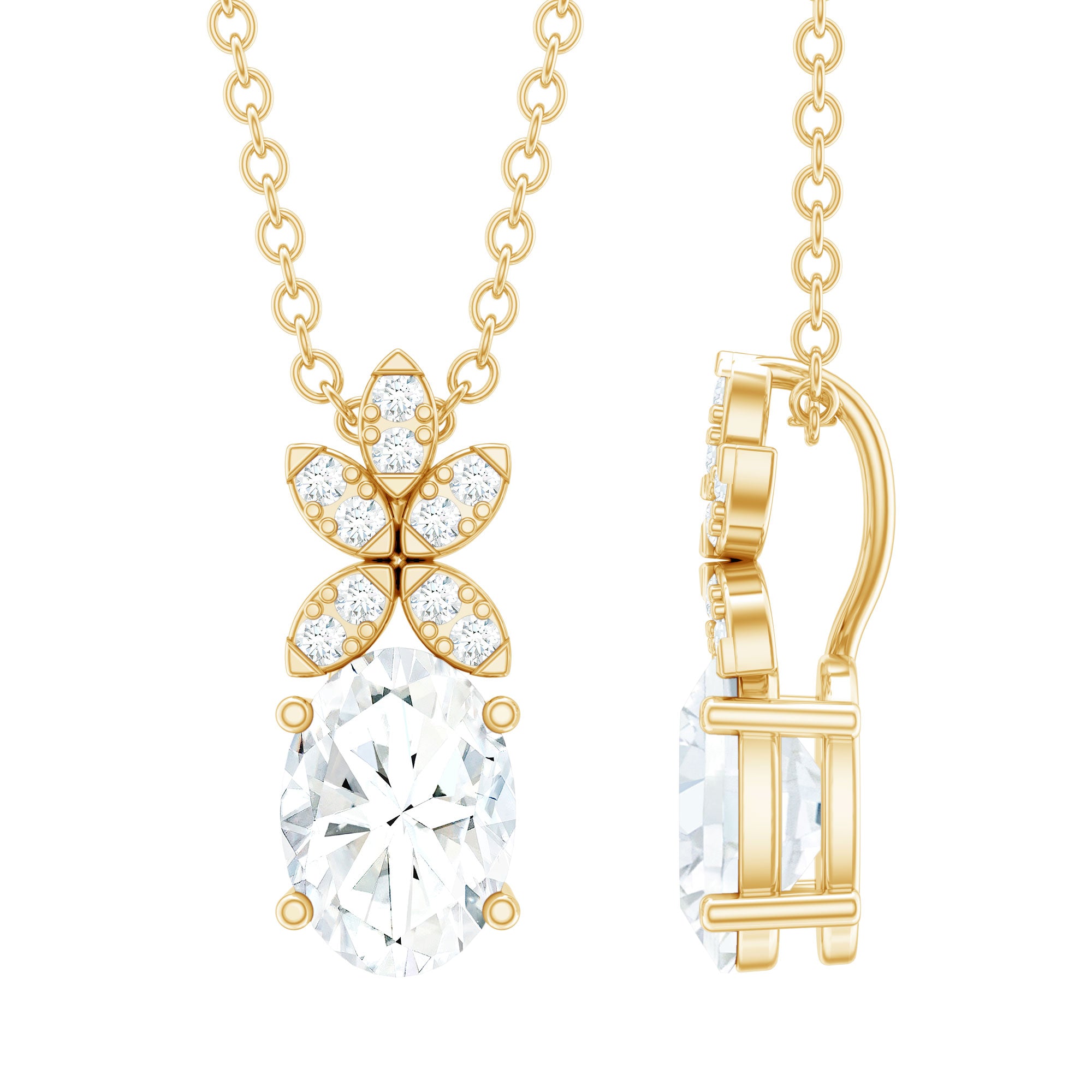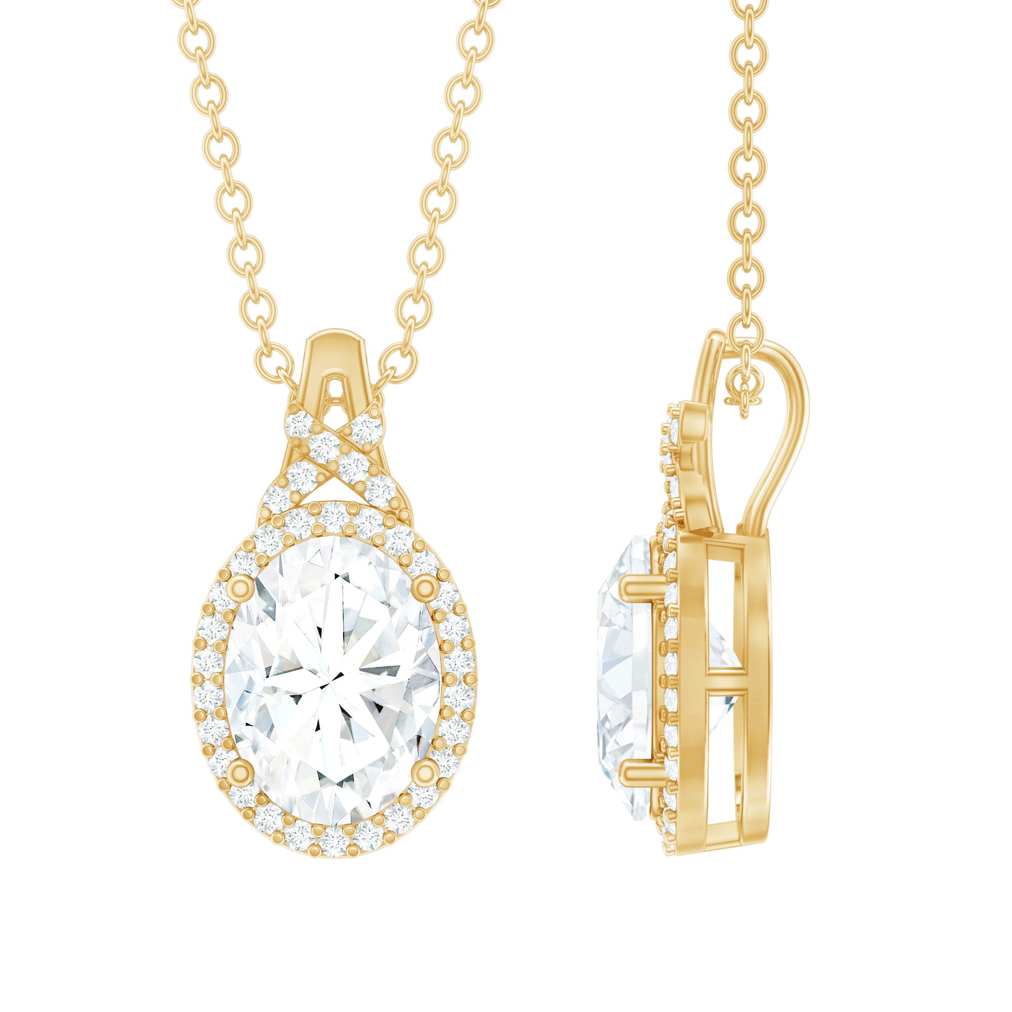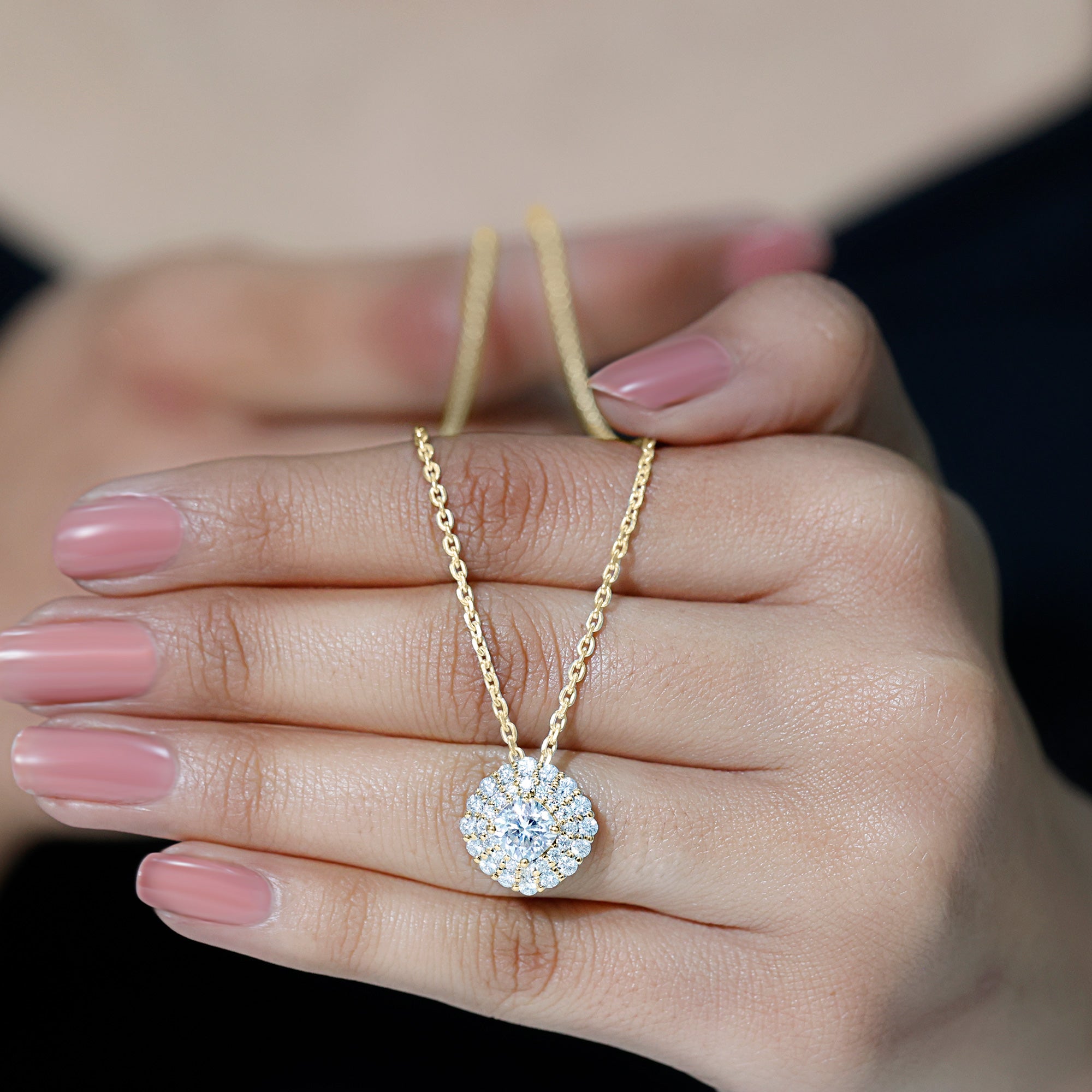 Solitaire: One of the classic styles that features a single lab grown diamond in the center in different shapes. Our lab grown diamond pendant is one of the favorite picks for almost all occasions.