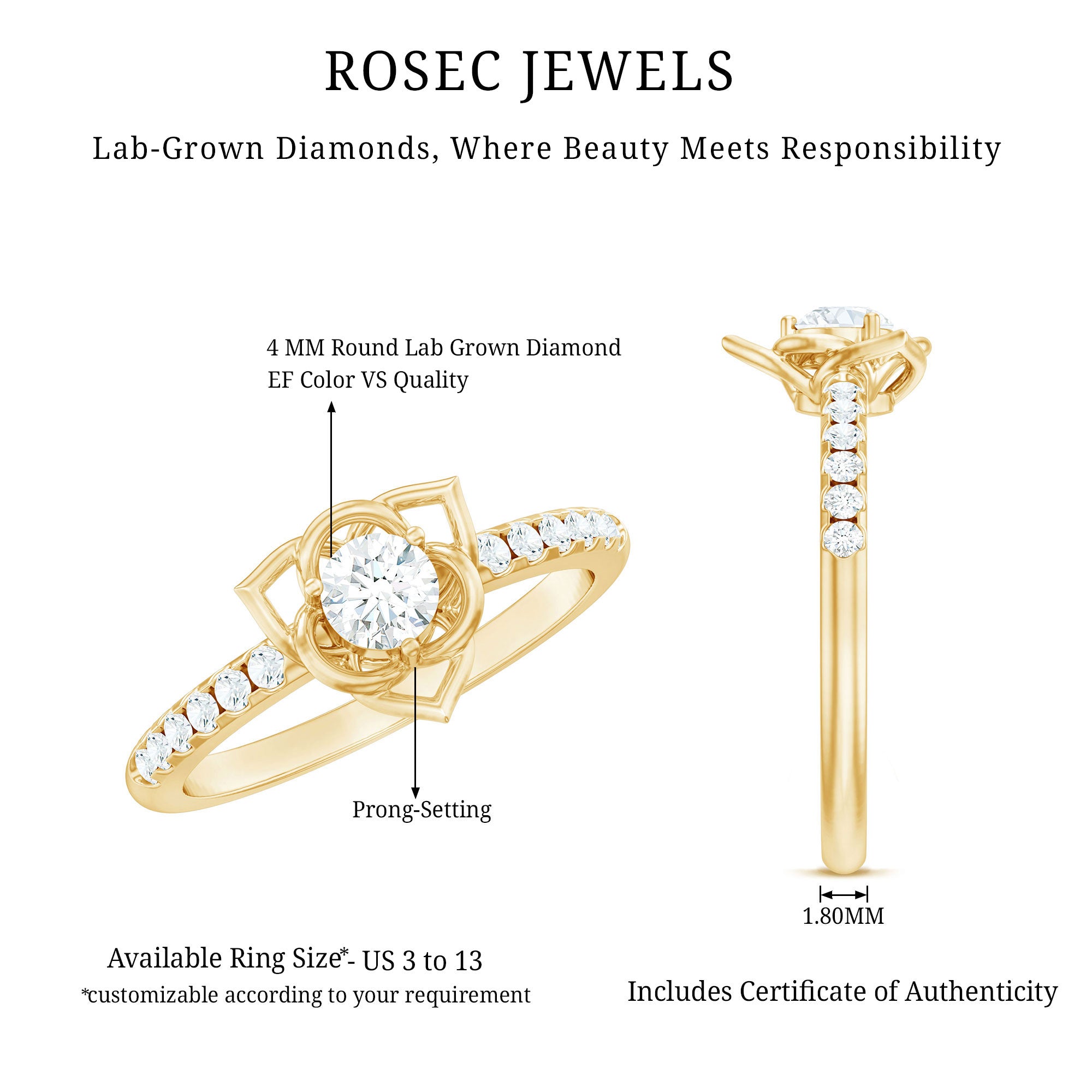 Rosec Jewels is the ultimate destination for buying lab-grown diamond promise rings, for several reasons. Here are a few: