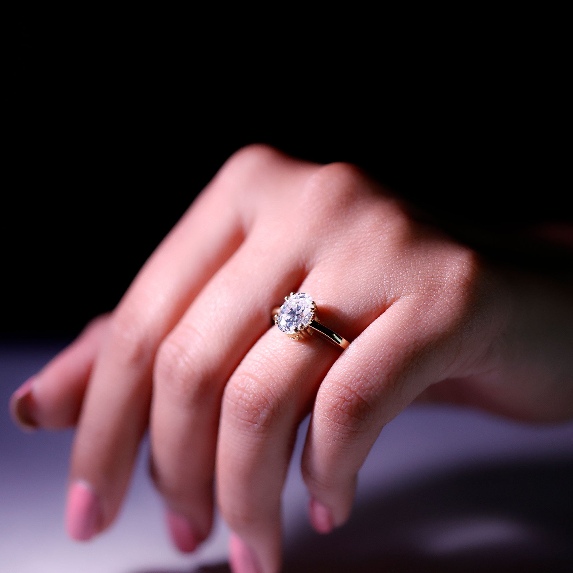 Different metals like yellow gold, white gold can be chosen according to different gemstones, taste and budget. Yellow gold is a traditional choice that carries classic warmth, adds rich contrast and makes the solitaire gemstone stand out. White gold is known to offer sleek, modern appeal that enhances the brilliance of lab created diamond solitaire ring.