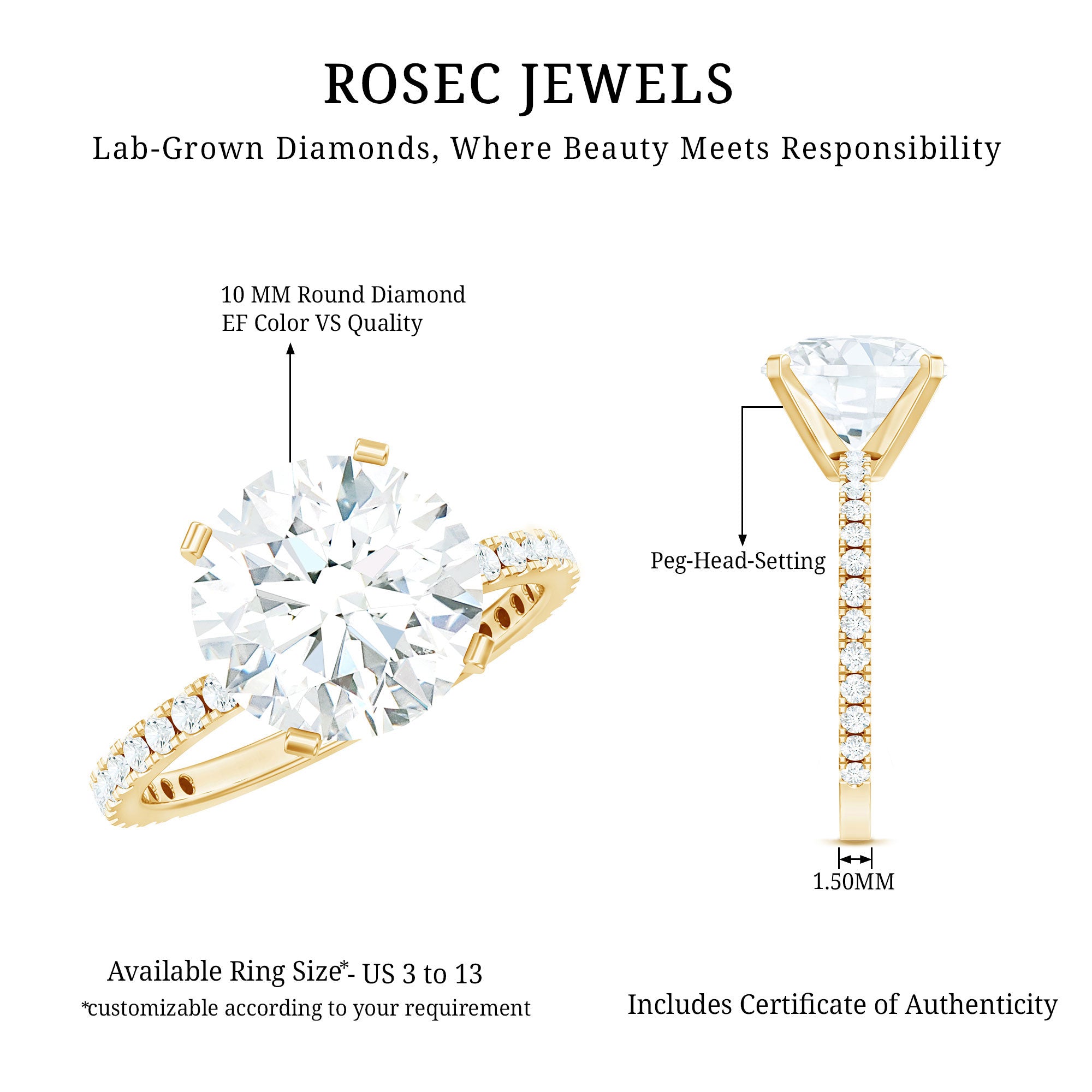 Round-Cut Solitaire Rings: These lab diamond solitaire rings feature classical round-cut gemstone with maximized sparkle.