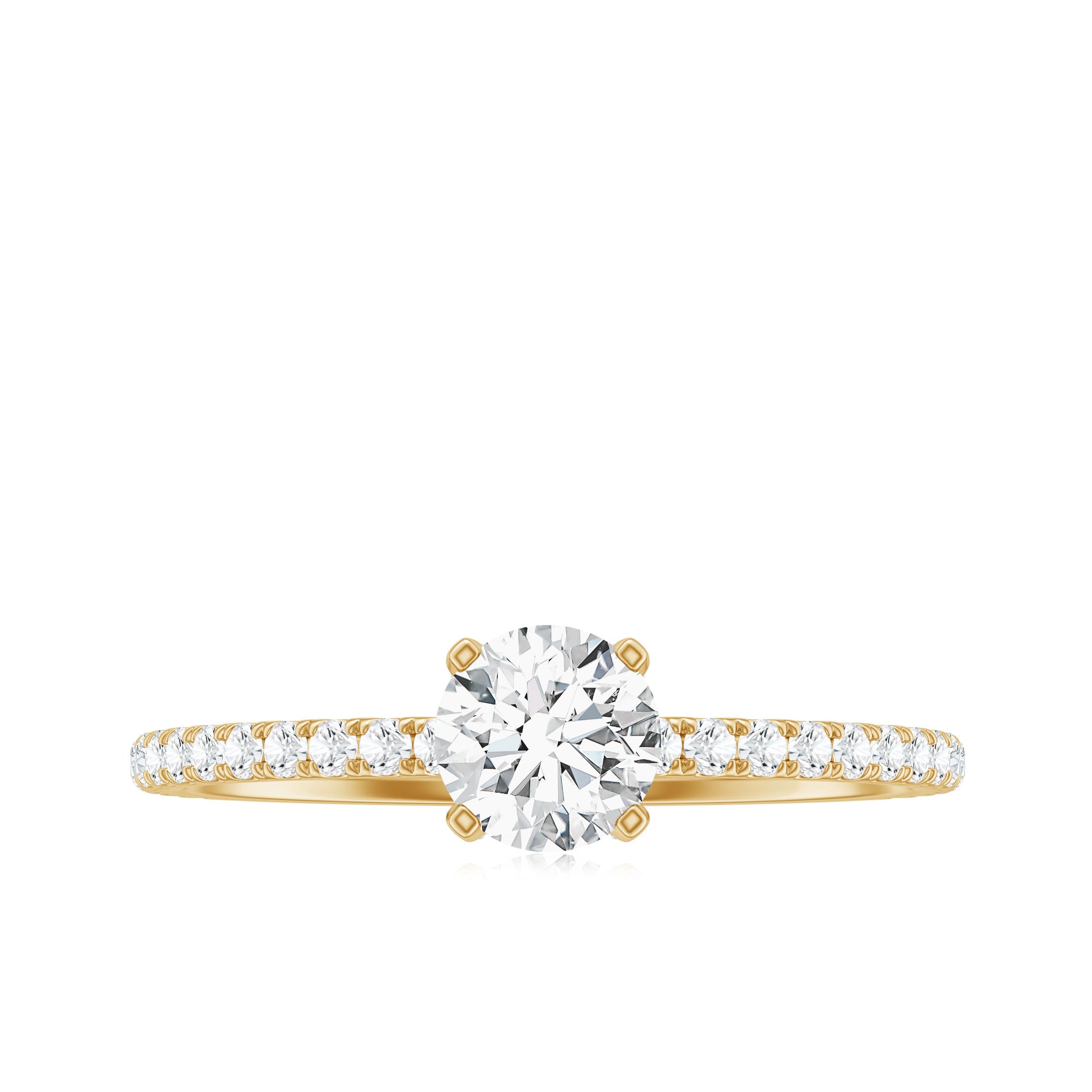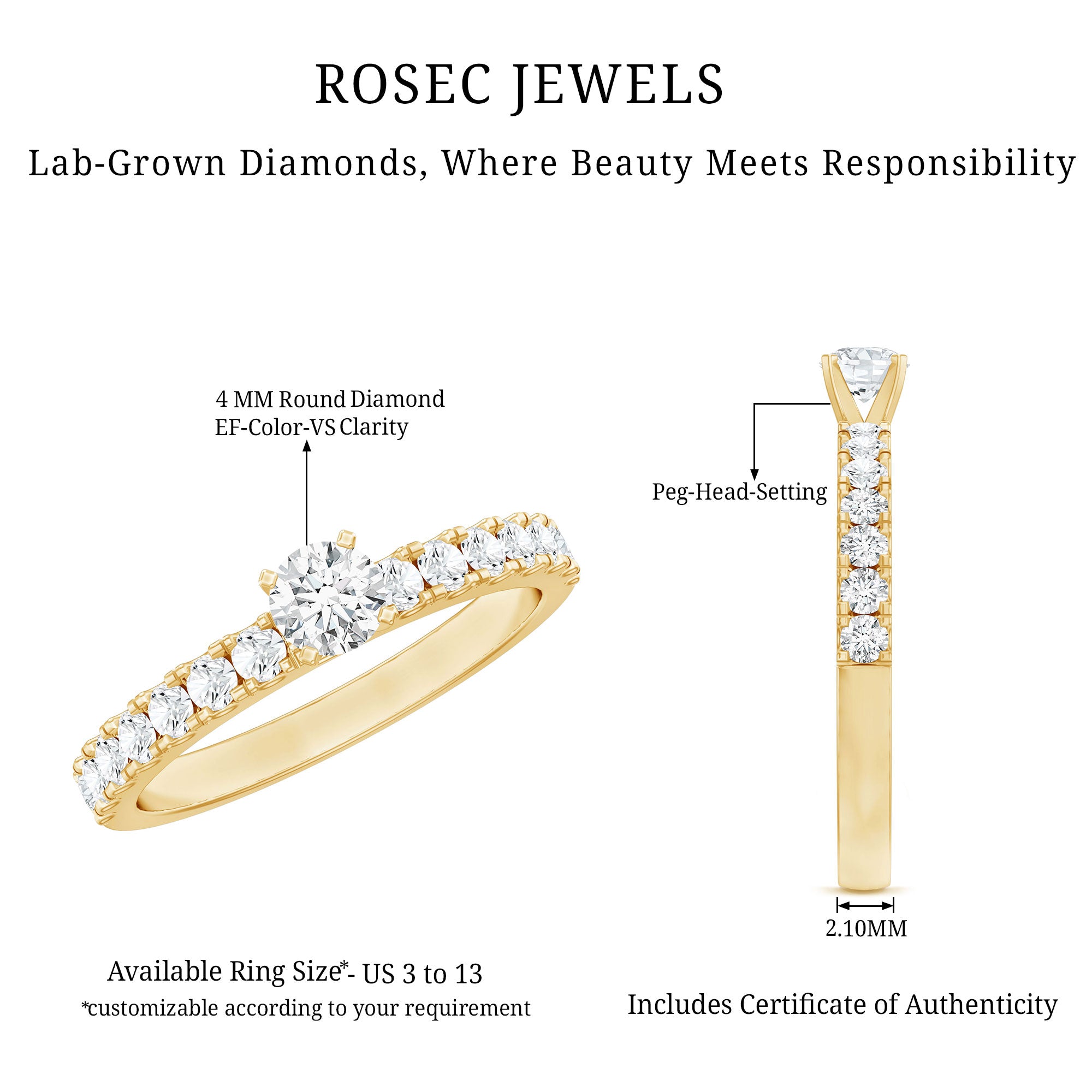 Round-Cut Solitaire Rings: These lab diamond solitaire rings feature classical round-cut gemstone with maximized sparkle.