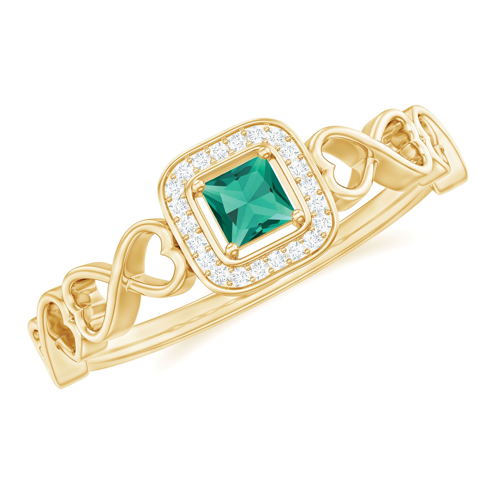 Heart Rings: A heart-shaped lab created gemstone or a heart frame with sparkling stones, made to express true love.