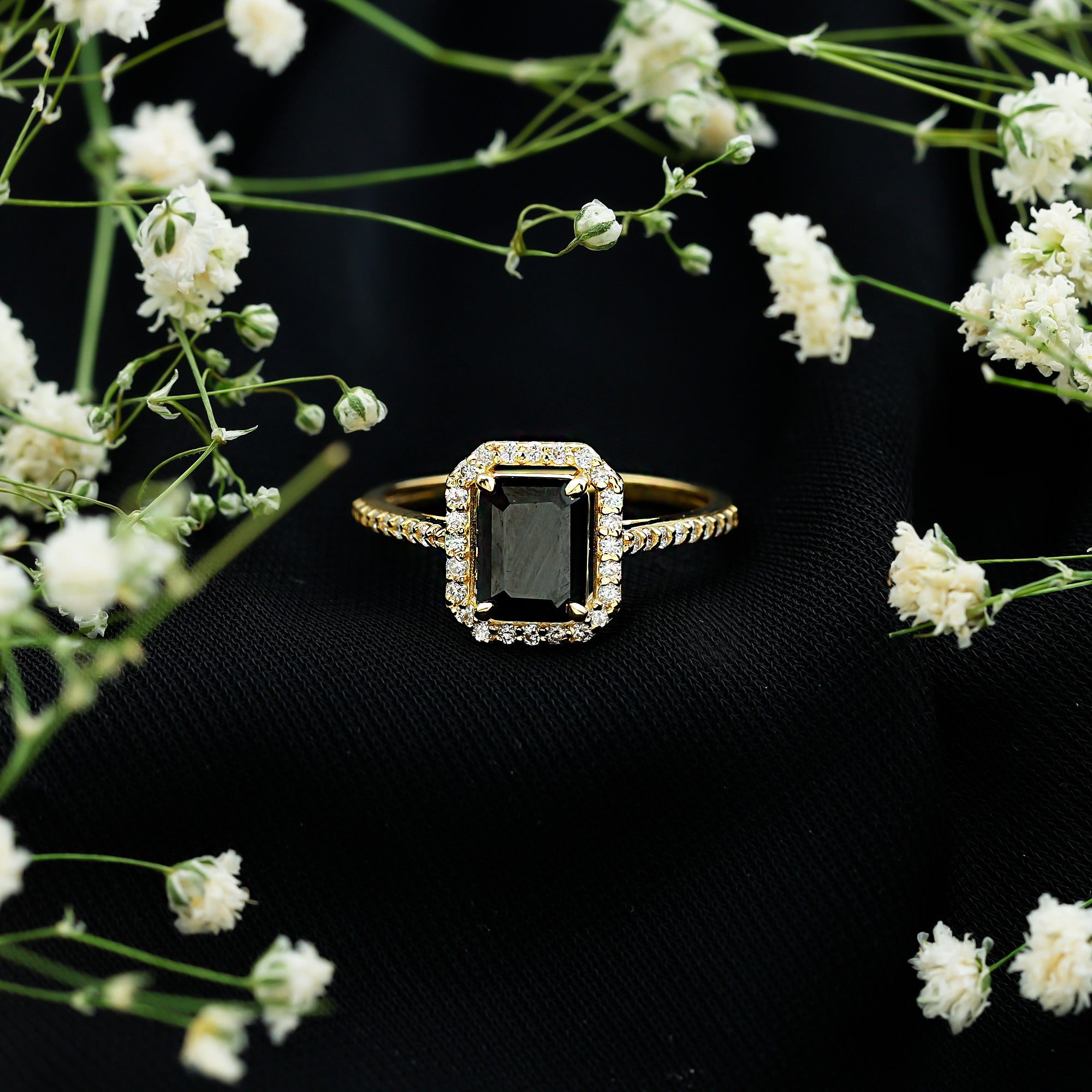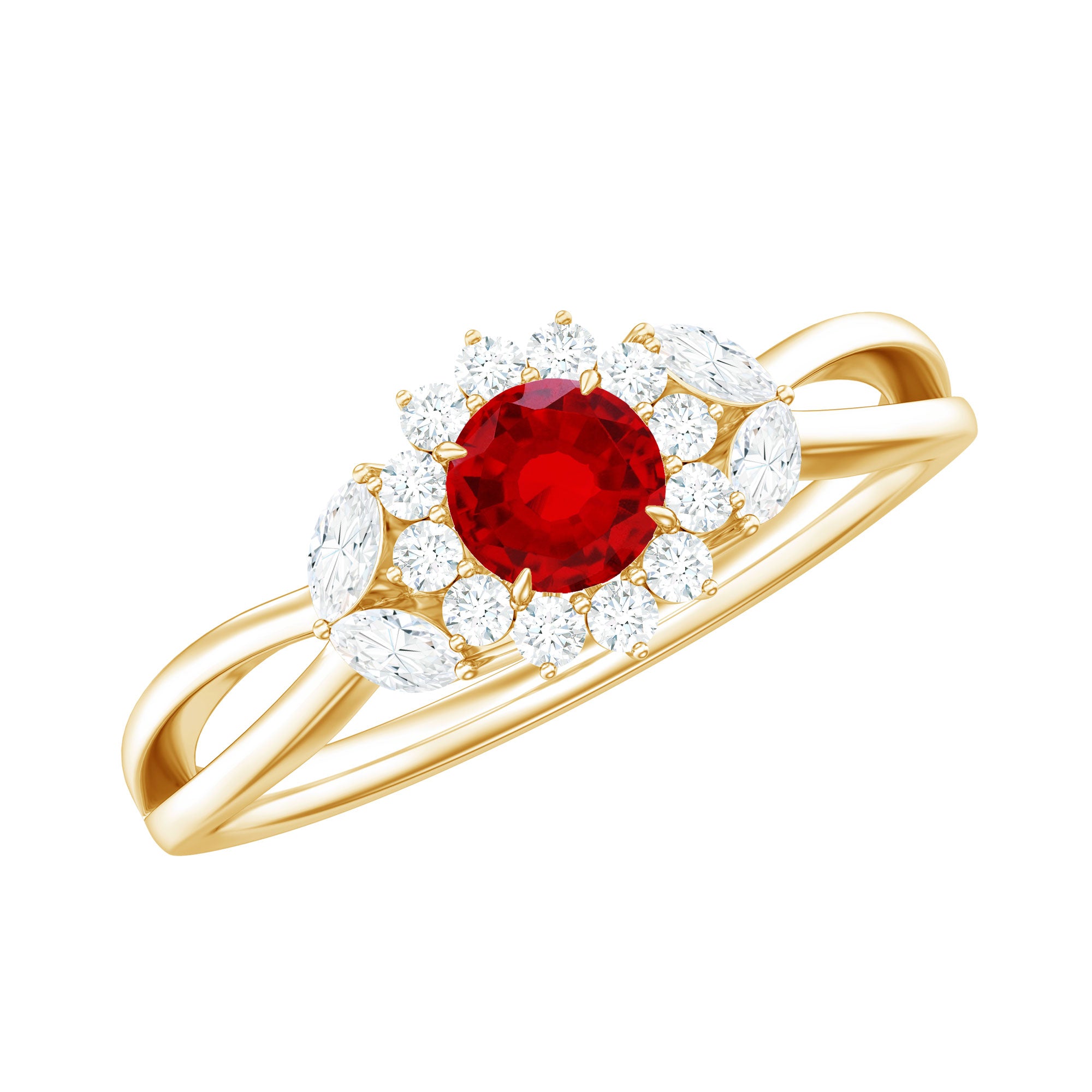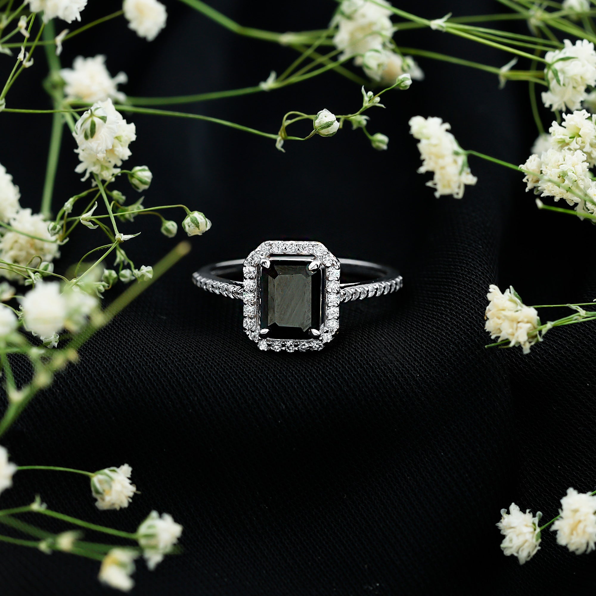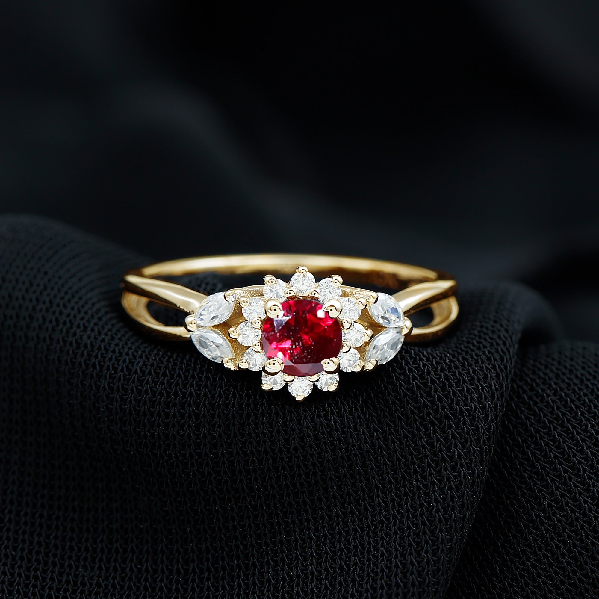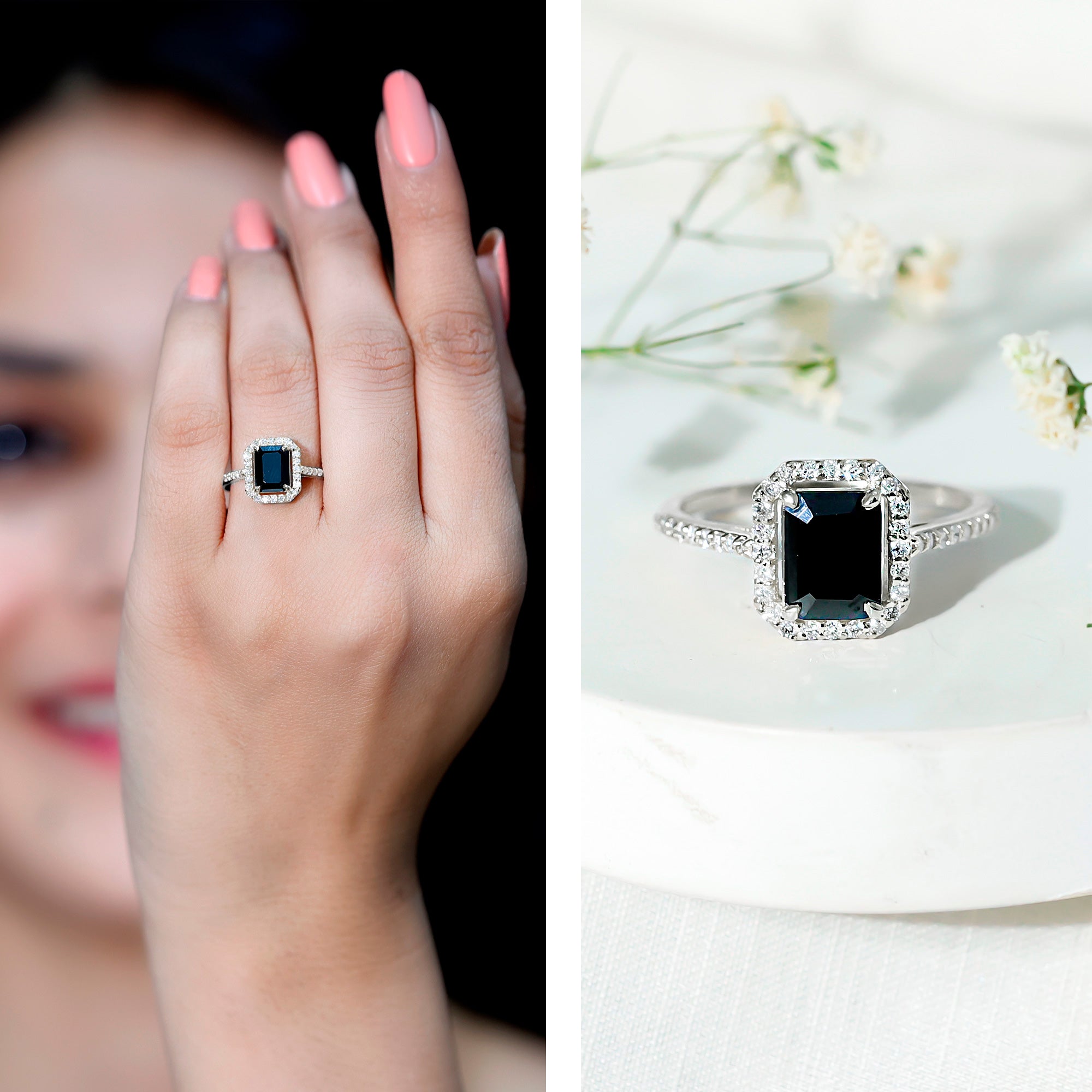 Halo Rings: Center lab made gemstone accented with shining or colored stones for a sparkling look.