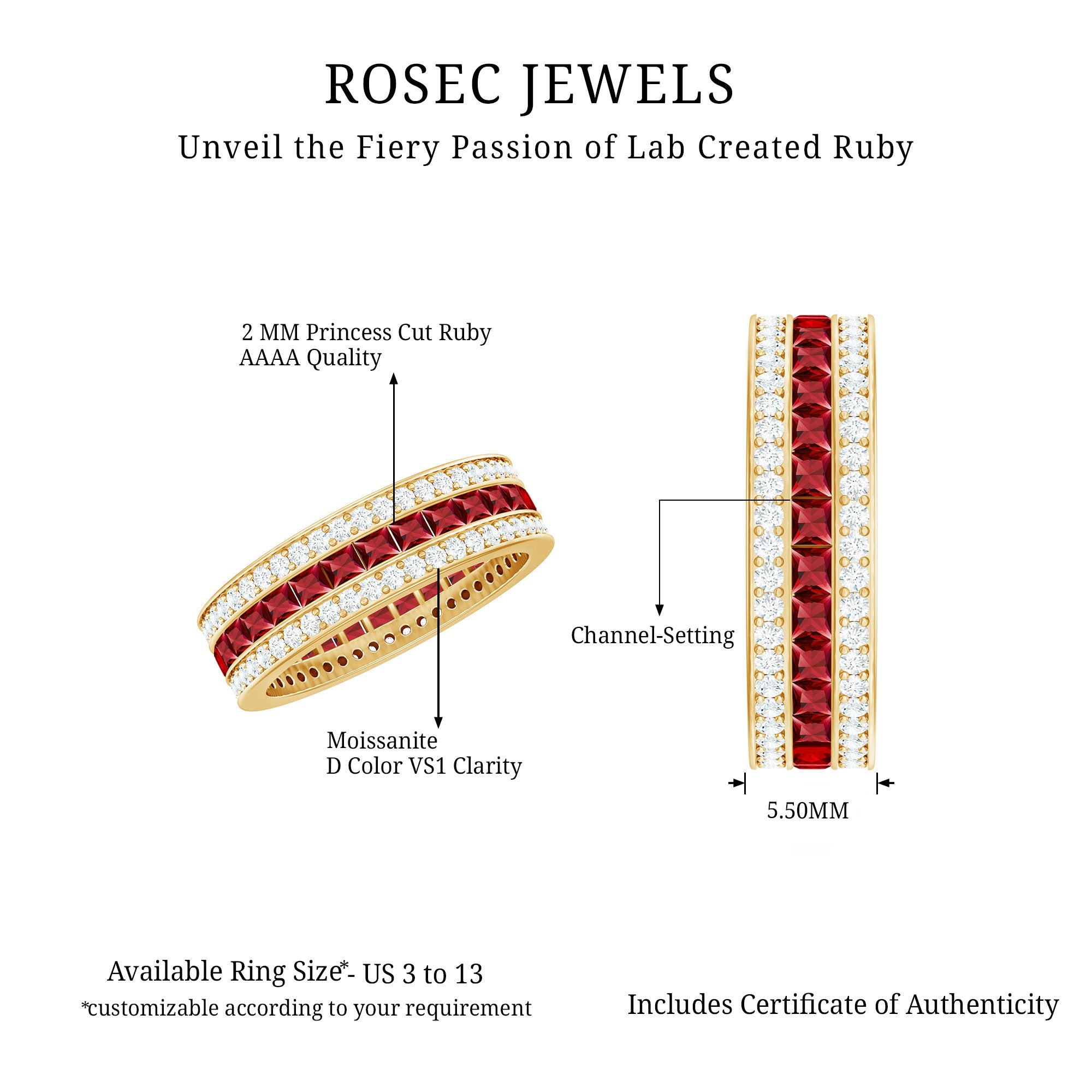 Full Eternity Rings: Lab created gemstones all along the band, a beautiful expression of endless love.