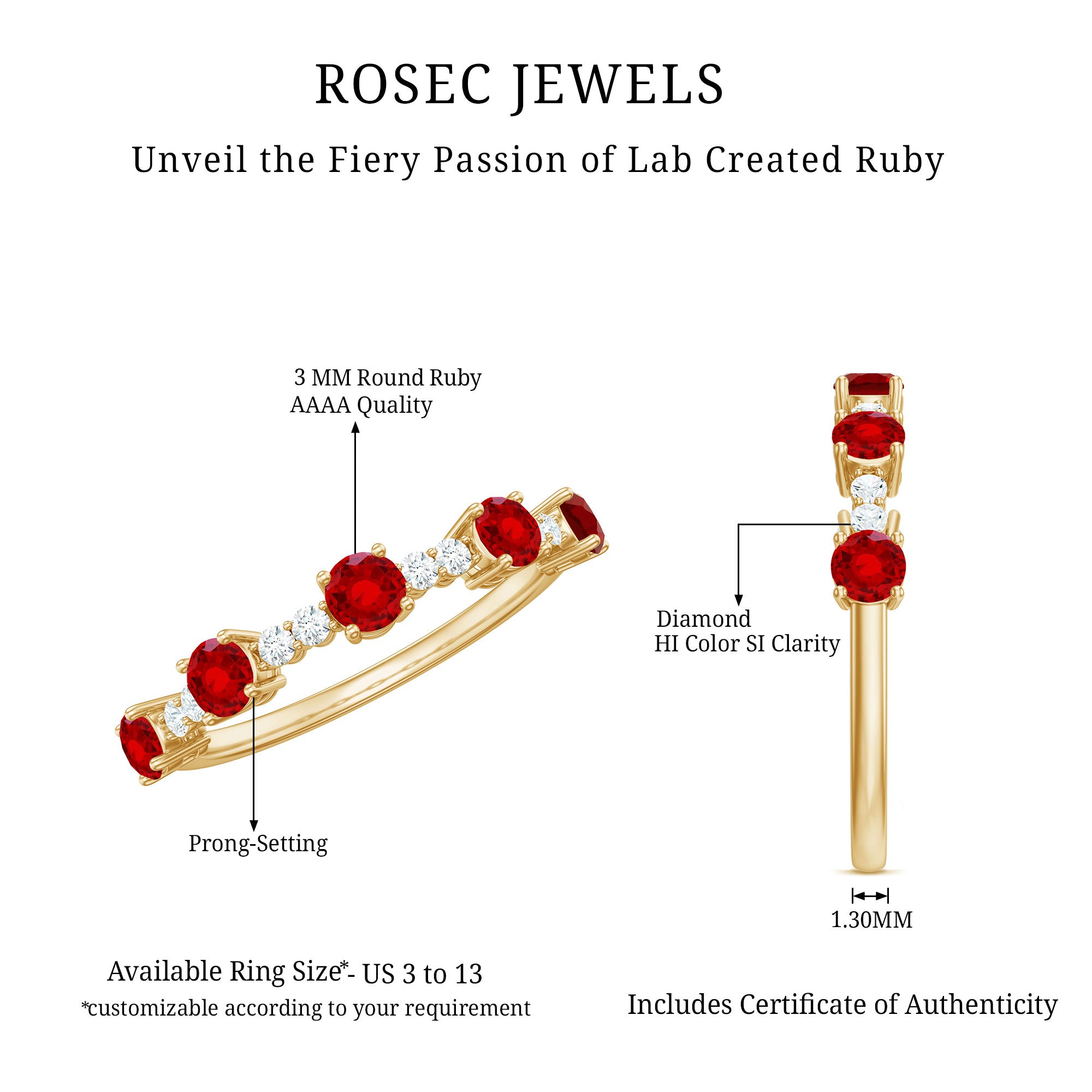 Half Eternity Rings: Entire top of the band adorned with laboratory created gemstones for a graceful sparkle.