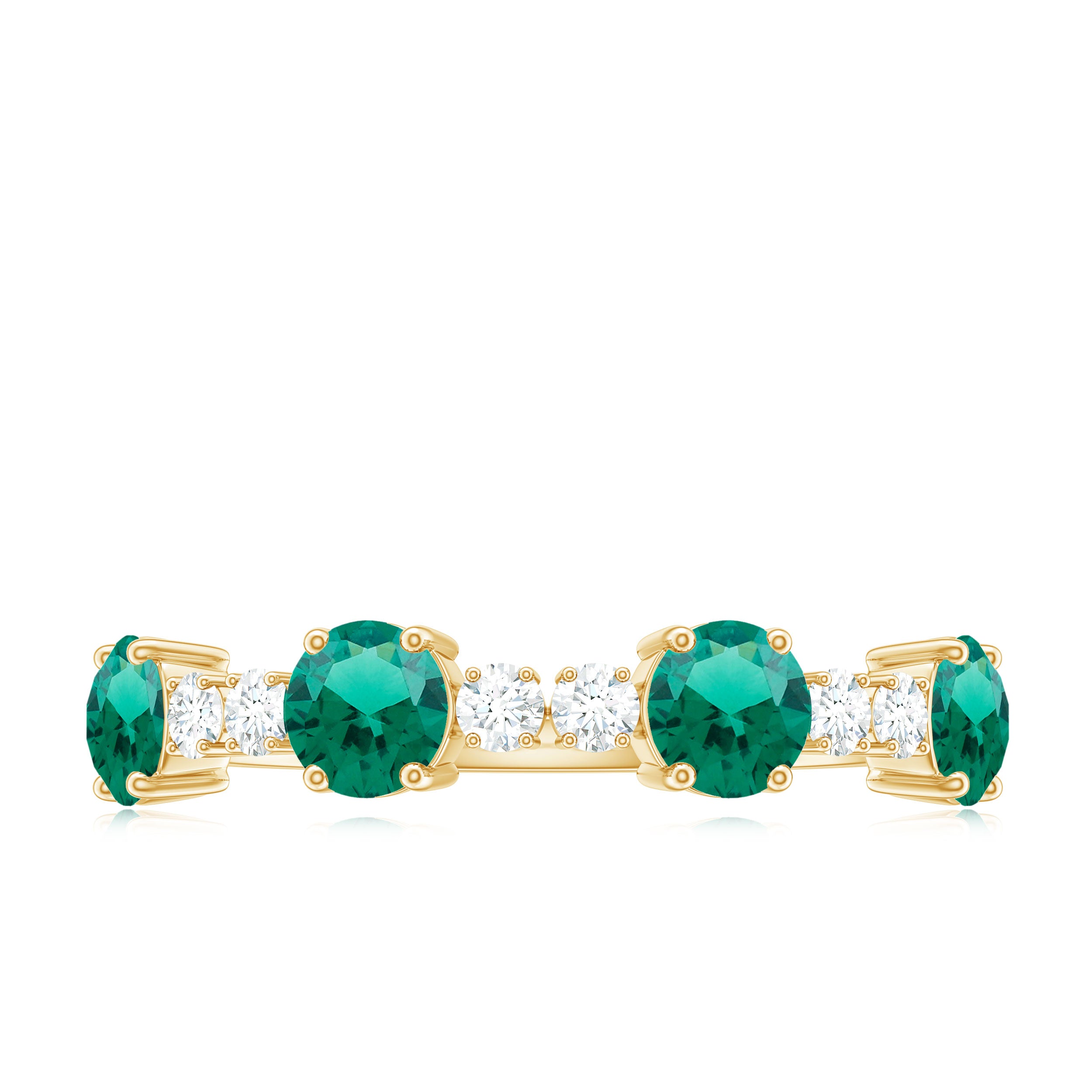Half Eternity Rings: Entire top of the band adorned with laboratory created gemstones for a graceful sparkle.