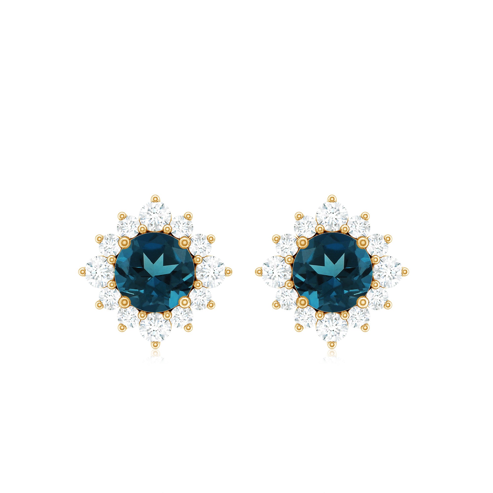 London Blue Topaz Halo Earrings: - The center gems of the blue Topaz halo earrings are embellished with distinct cuts like oval cut, heart cut, pear cut, and brilliant cut that is crafted in solid gold. The brilliant cuts of London blue topaz create a centerpiece attraction that stole everyone's attention.