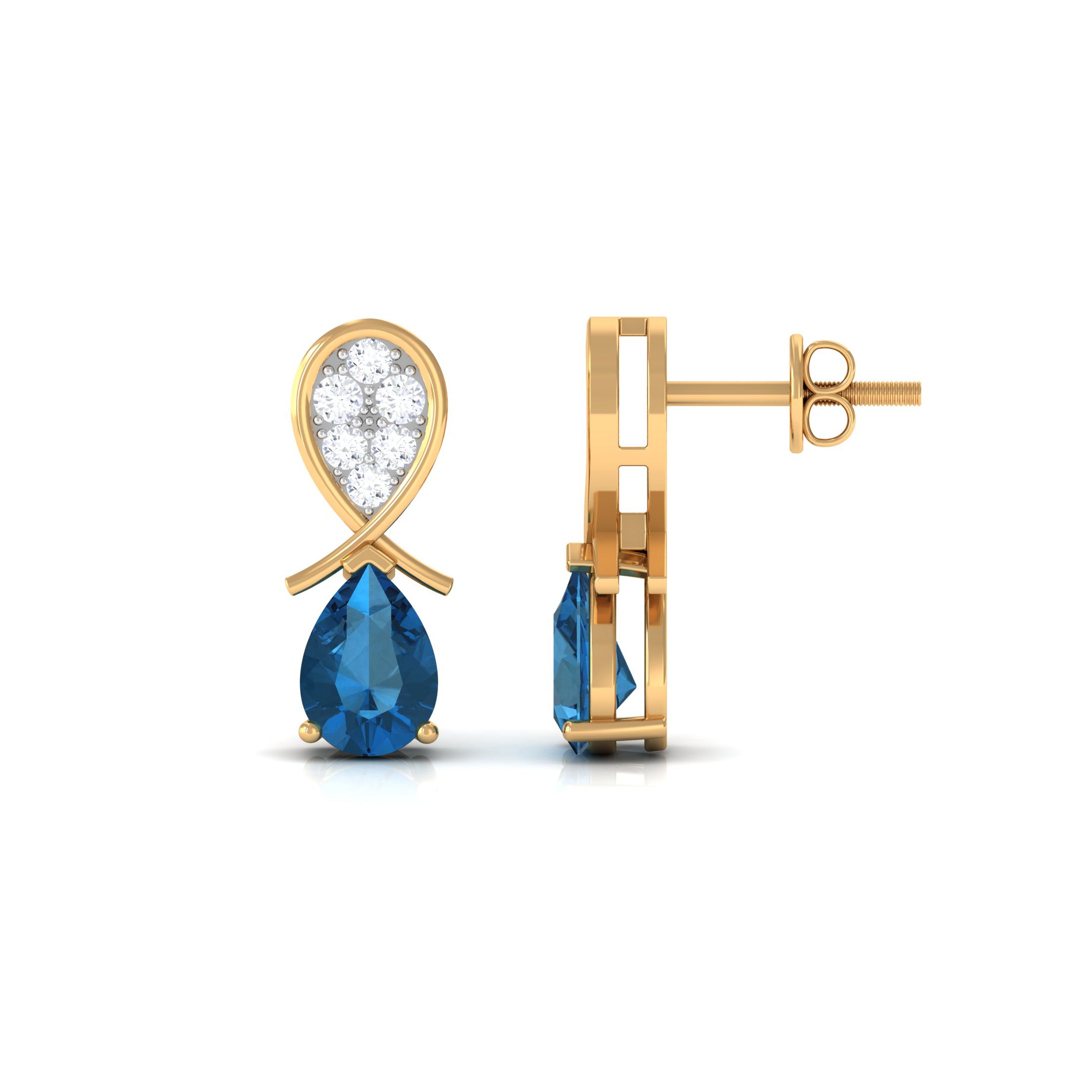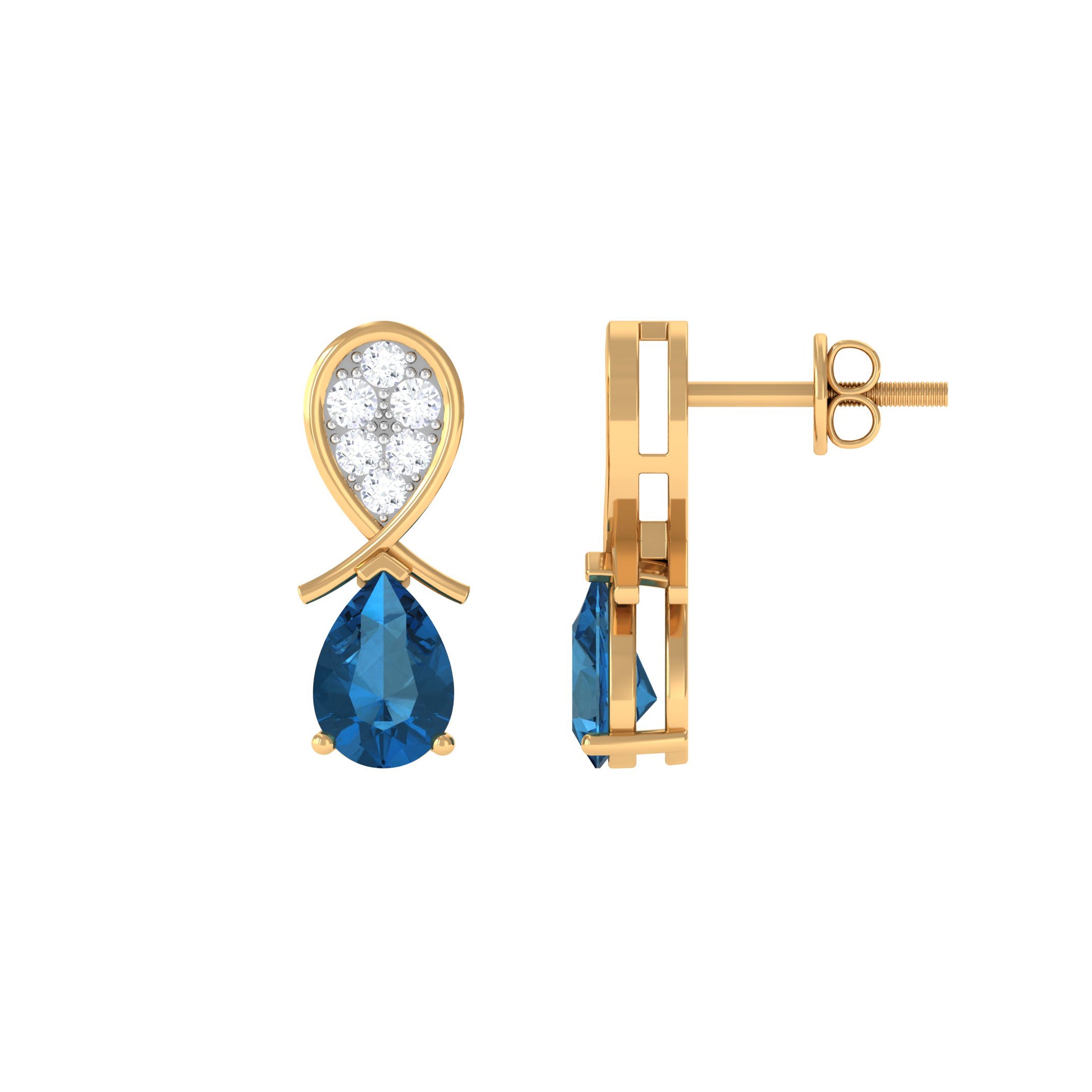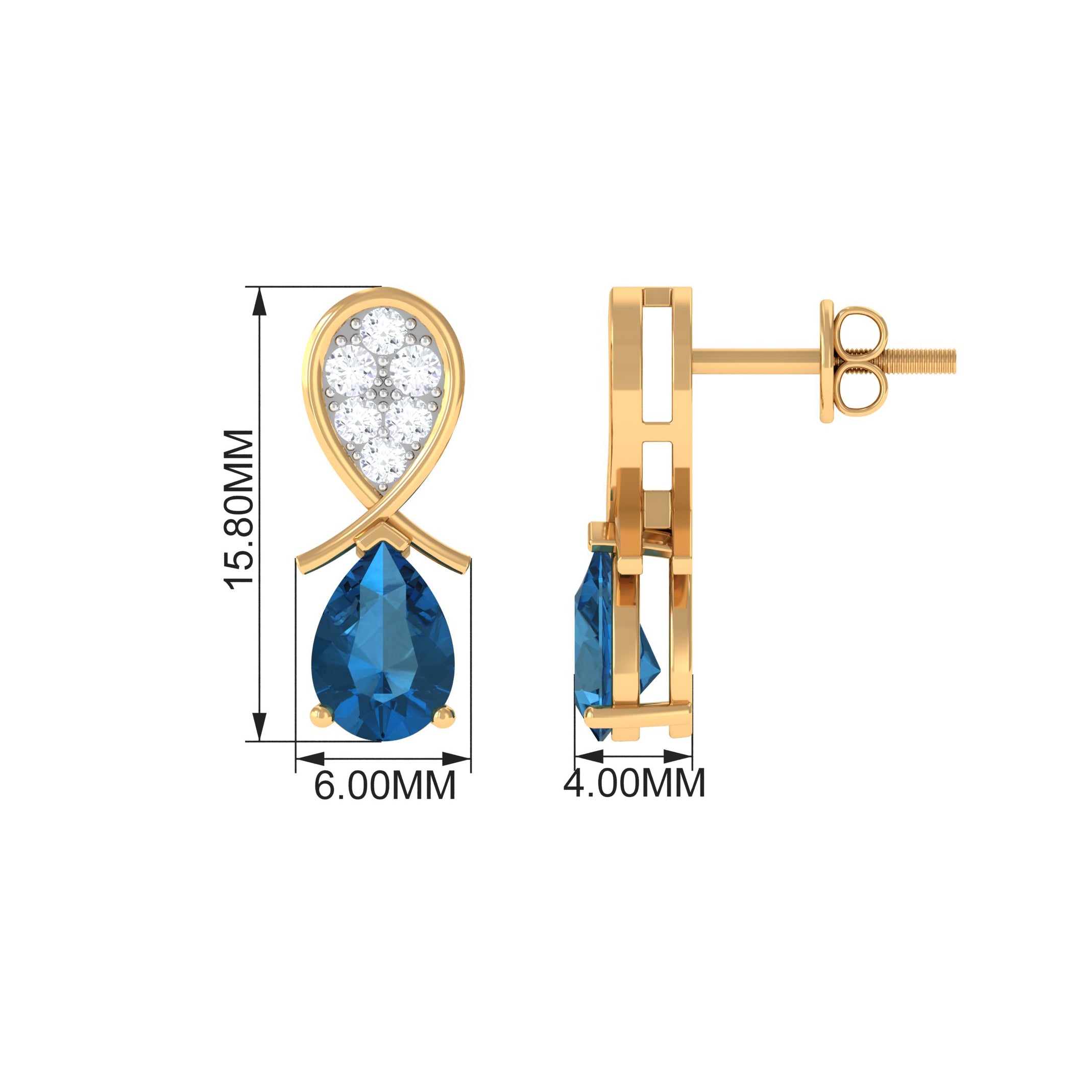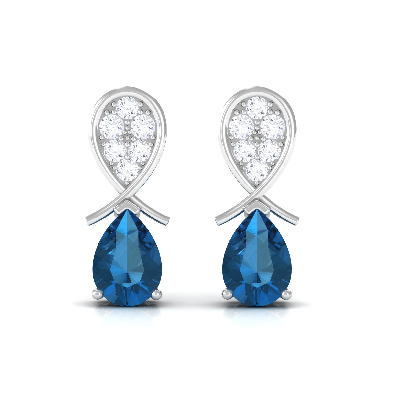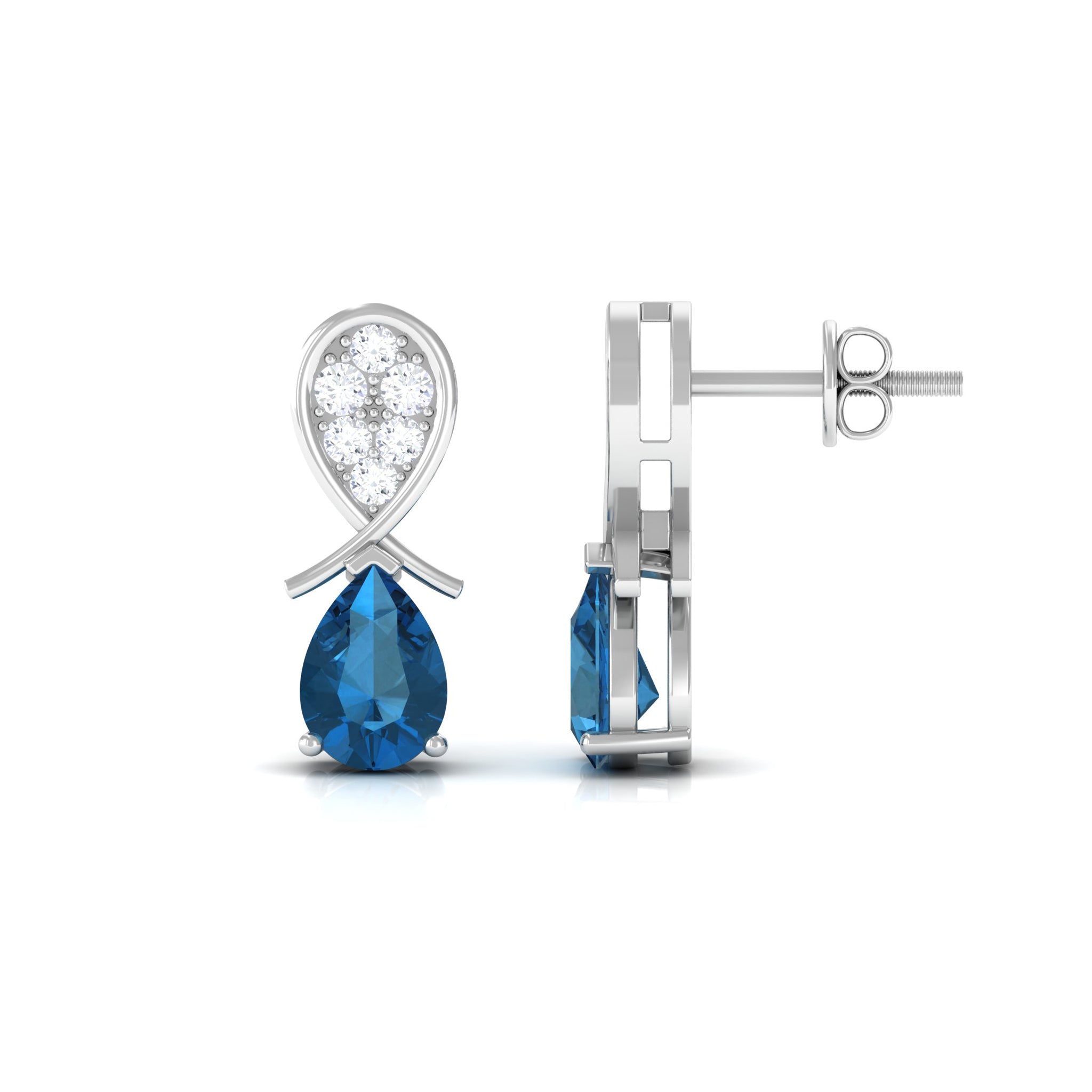 White Gold:- A popular pick for gemstone jewelry. White Gold metal complement any design and cool color tones of London blue topaz earrings, creating a mesmerizing charm to your personality.