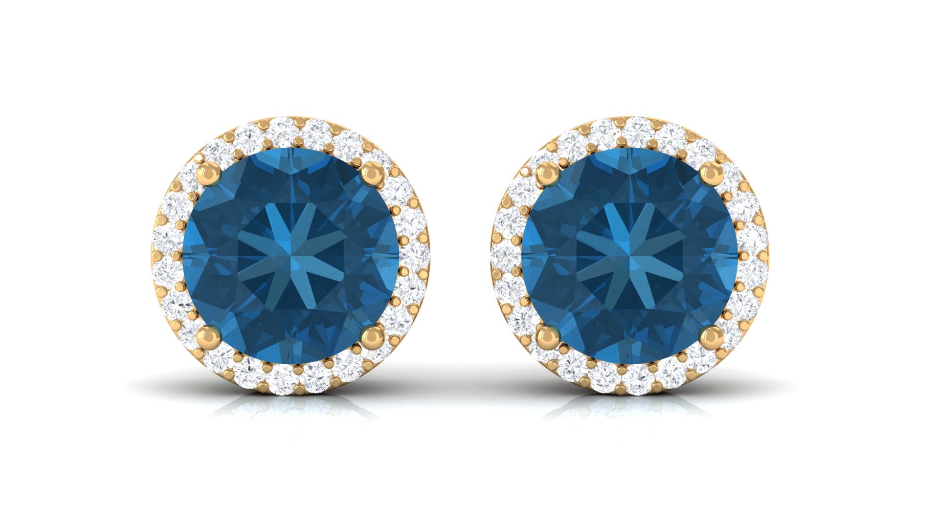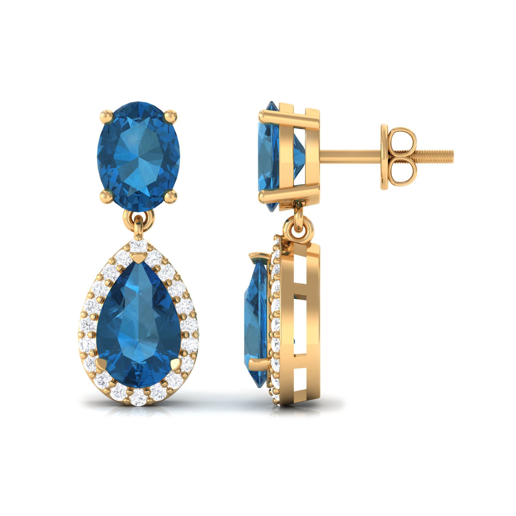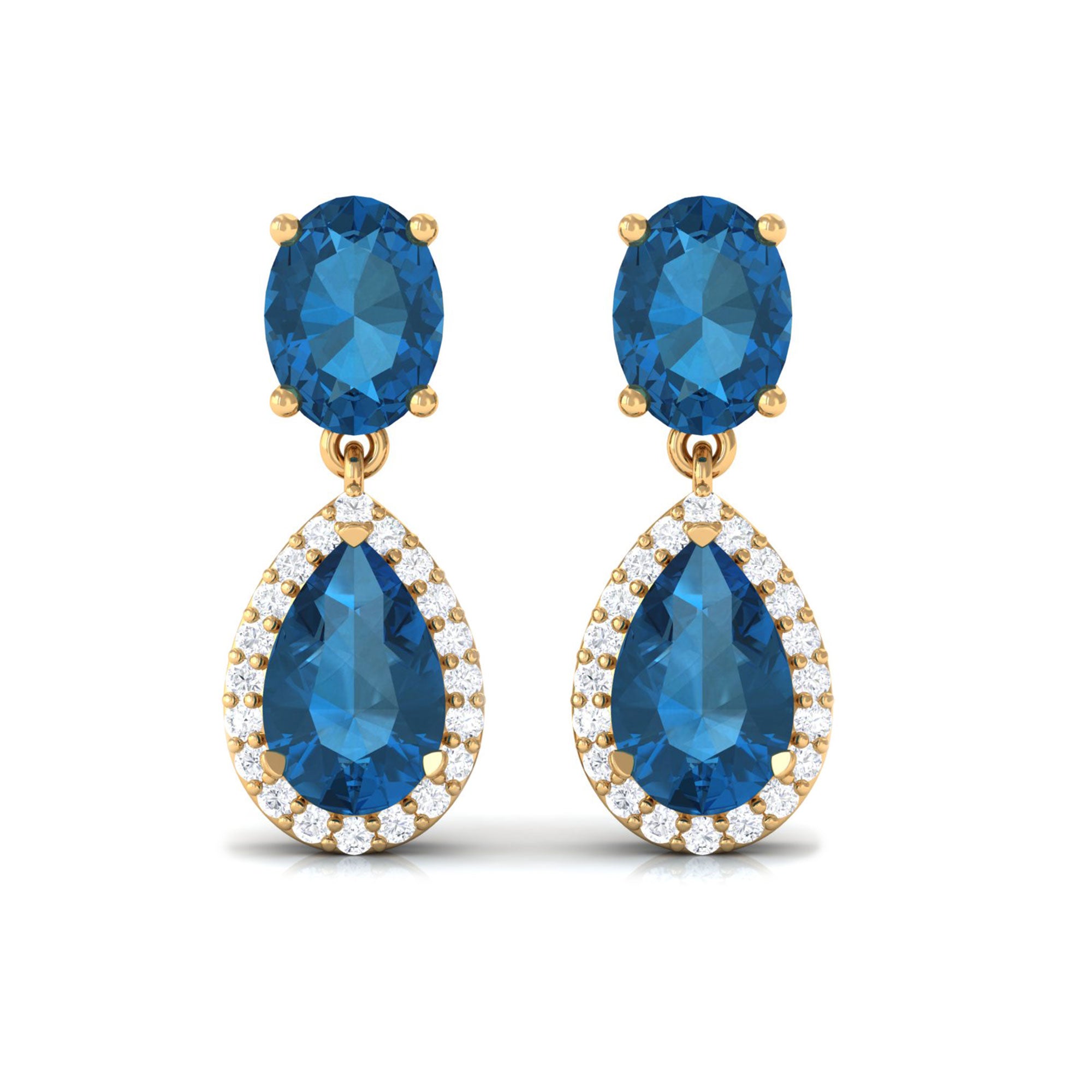 London Blue Topaz Halo Earrings: - The center gems of the blue Topaz halo earrings are embellished with distinct cuts like oval cut, heart cut, pear cut, and brilliant cut that is crafted in solid gold. The brilliant cuts of London blue topaz create a centerpiece attraction that stole everyone's attention.