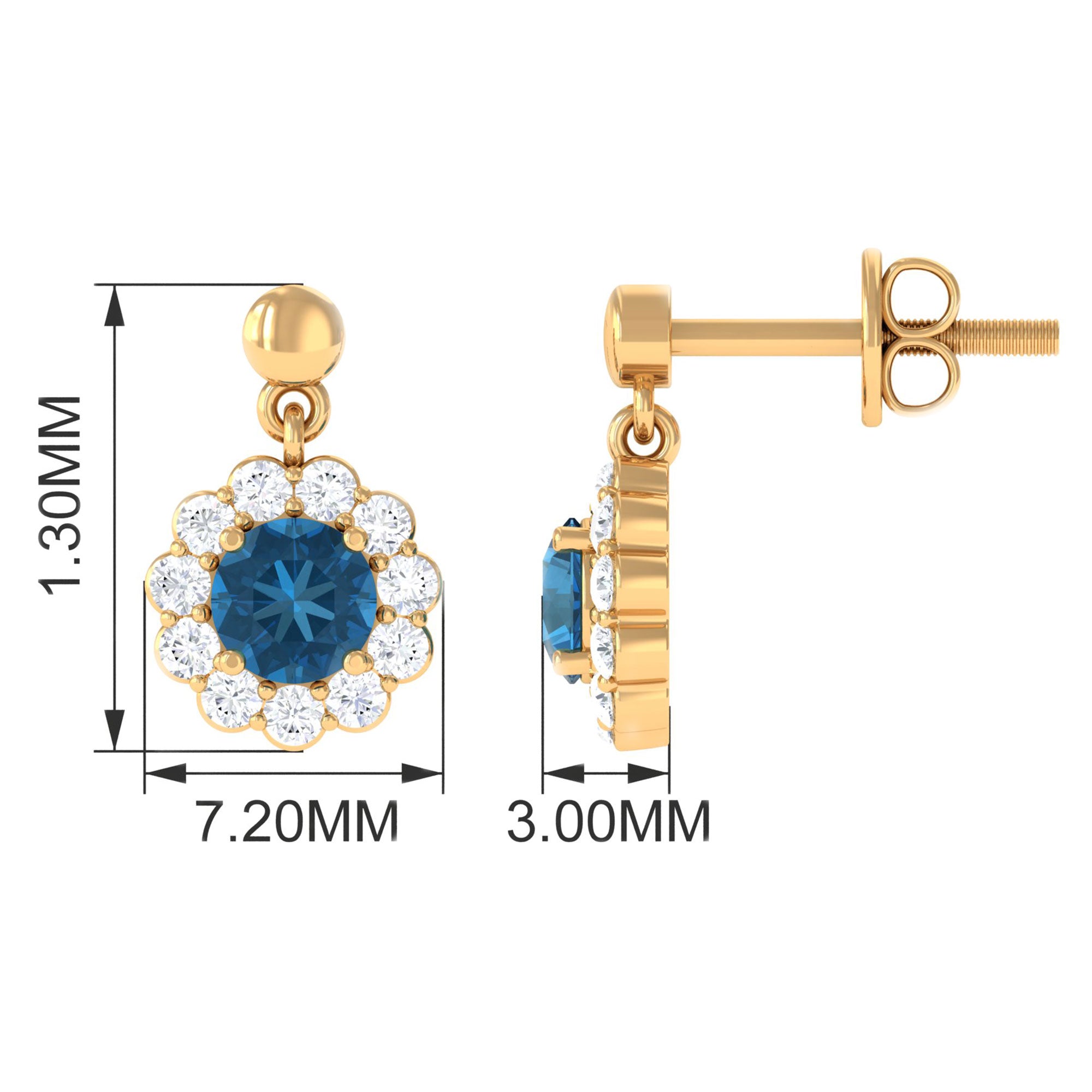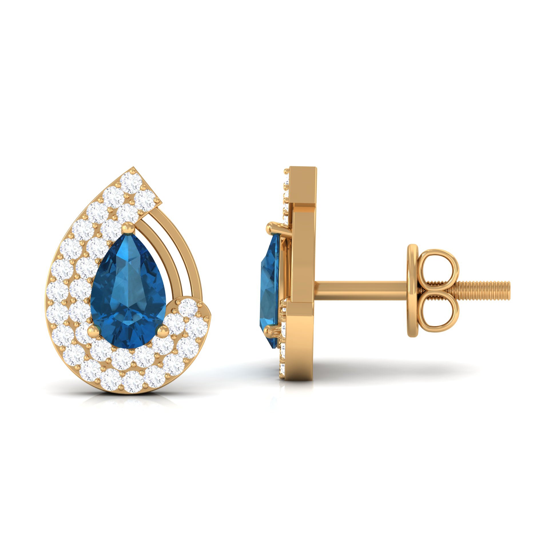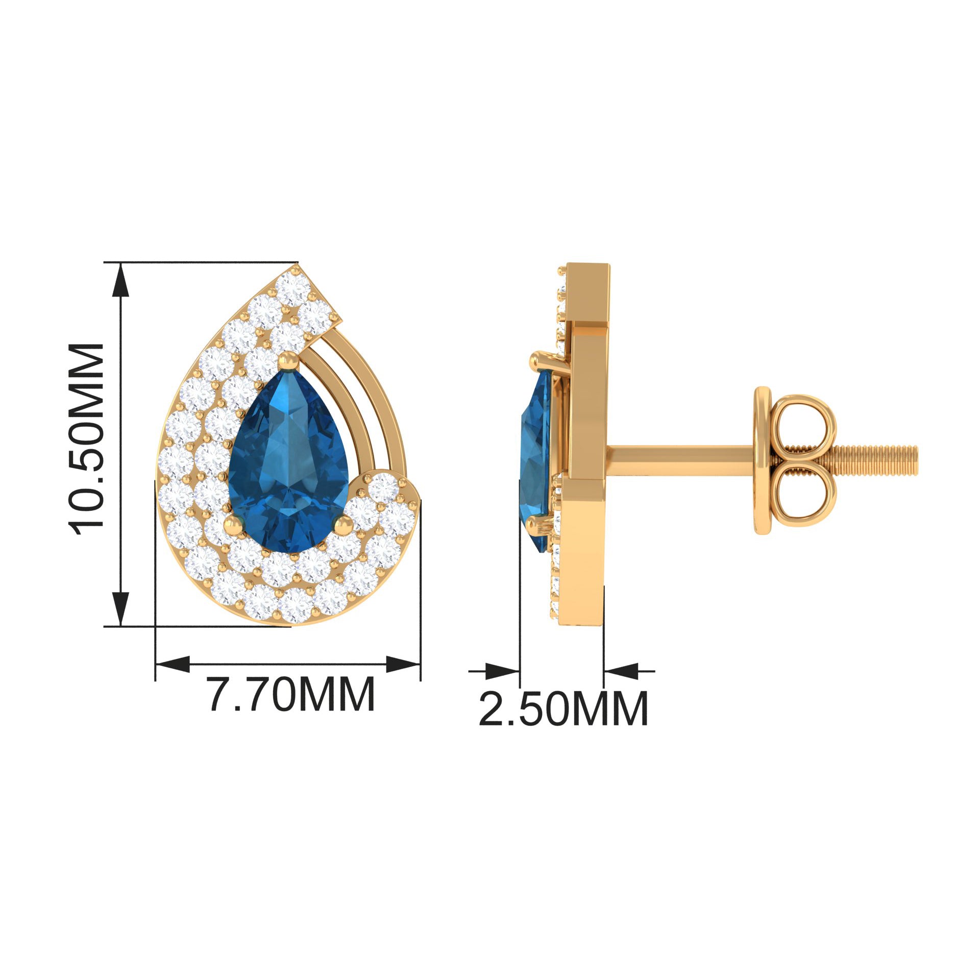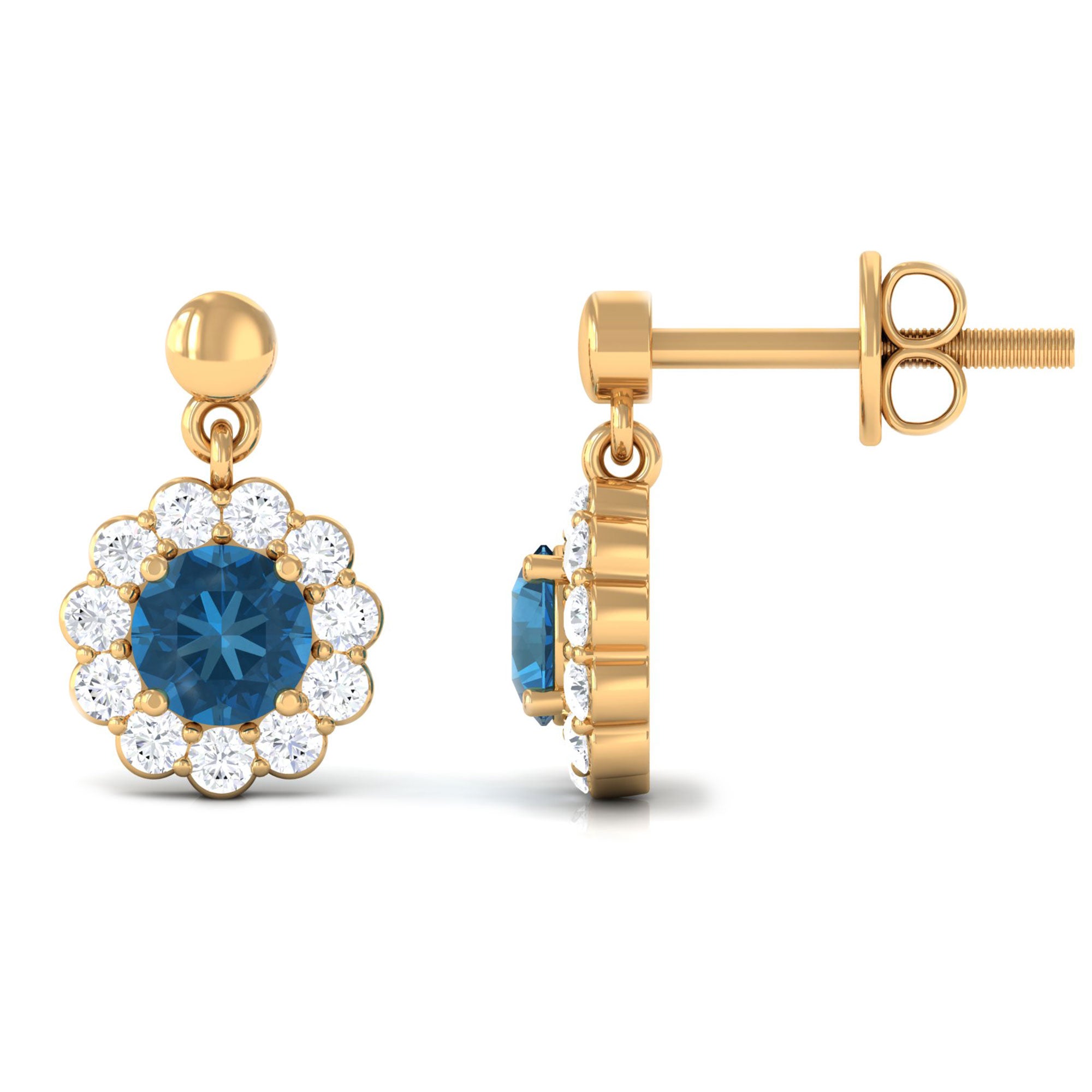 London Blue Topaz Halo Earrings: - The center gems of the blue Topaz halo earrings are embellished with distinct cuts like oval cut, heart cut, pear cut, and brilliant cut that is crafted in solid gold. The brilliant cuts of London blue topaz create a centerpiece attraction that stole everyone's attention.