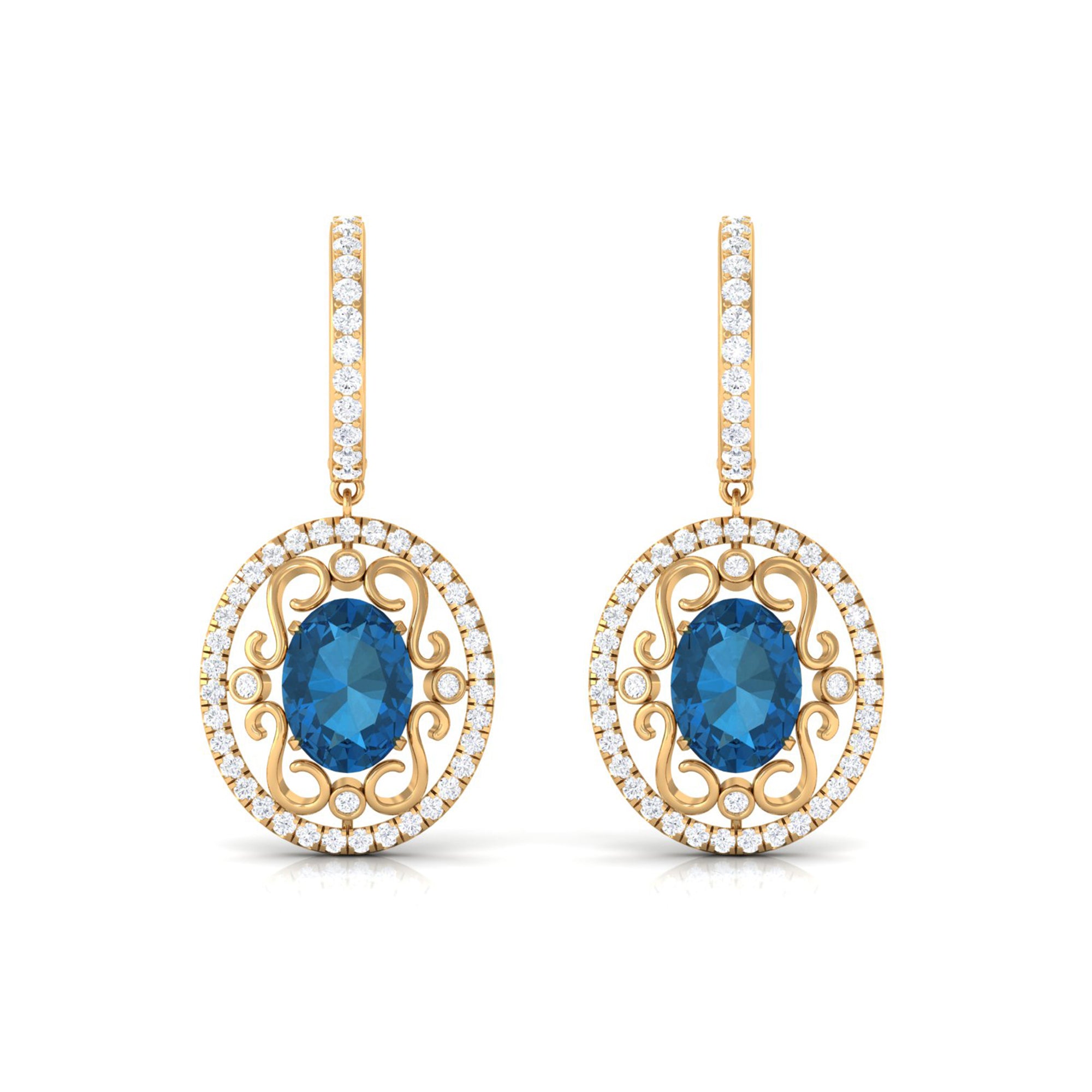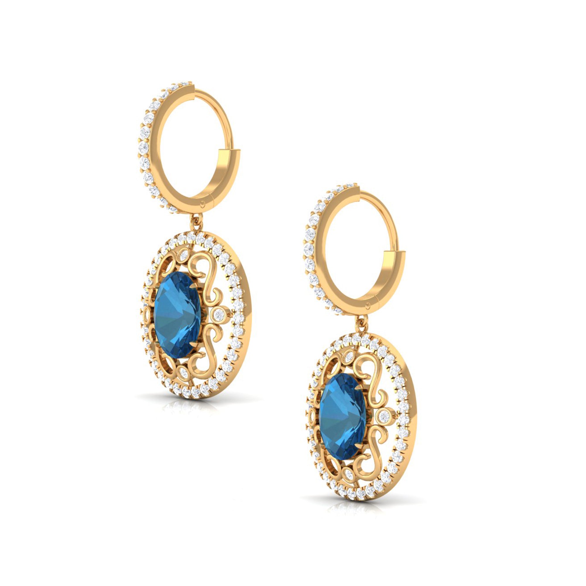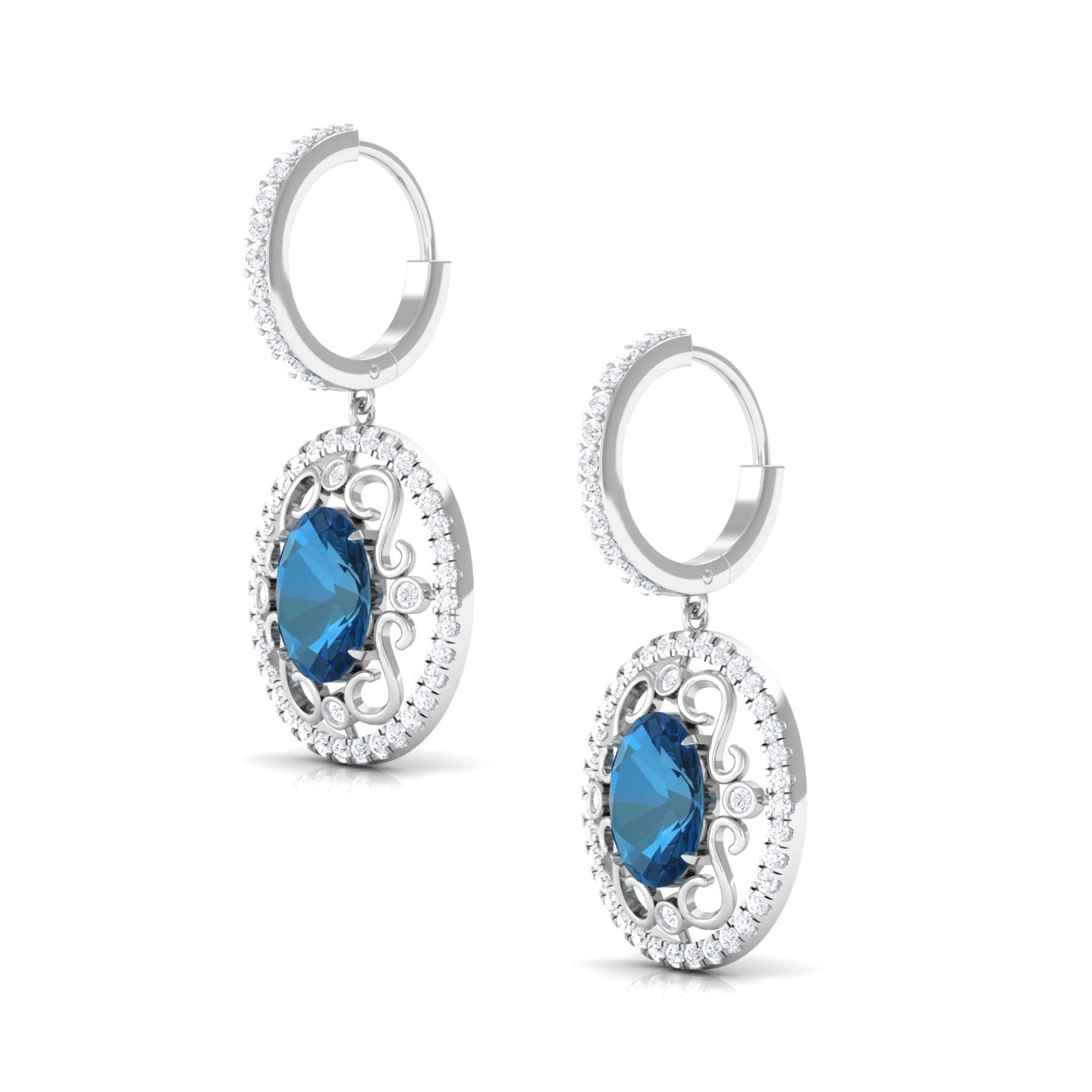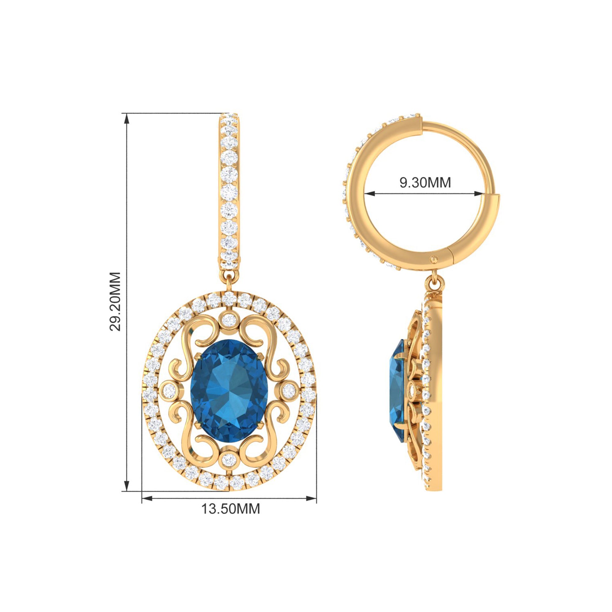 London Blue Topaz Vintage Inspired Earrings: - with each unique design of blue topaz vintage inspired earrings contributes to your charm and allure. Our vintage-styled blue topaz hoop drop earrings with diamond accents are a harmonious combination of modernism and classic elegance. They are lightweight and also comfortable to wear, adding a slight touch of vintage charm to your attires.