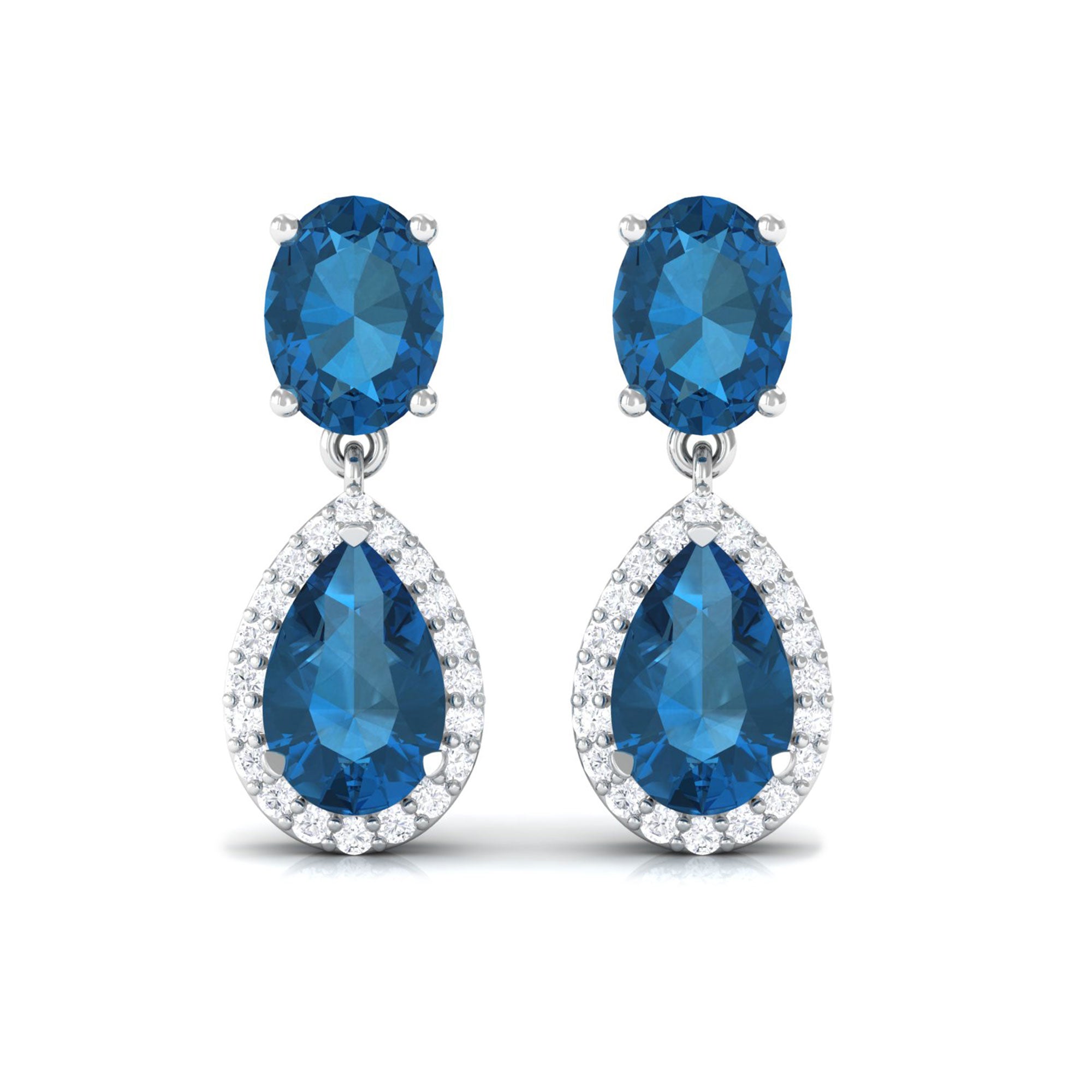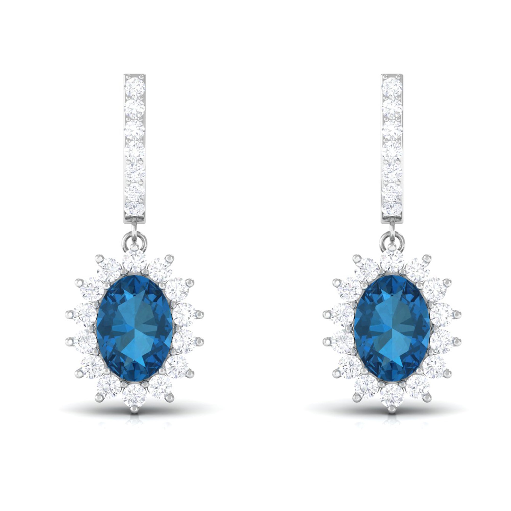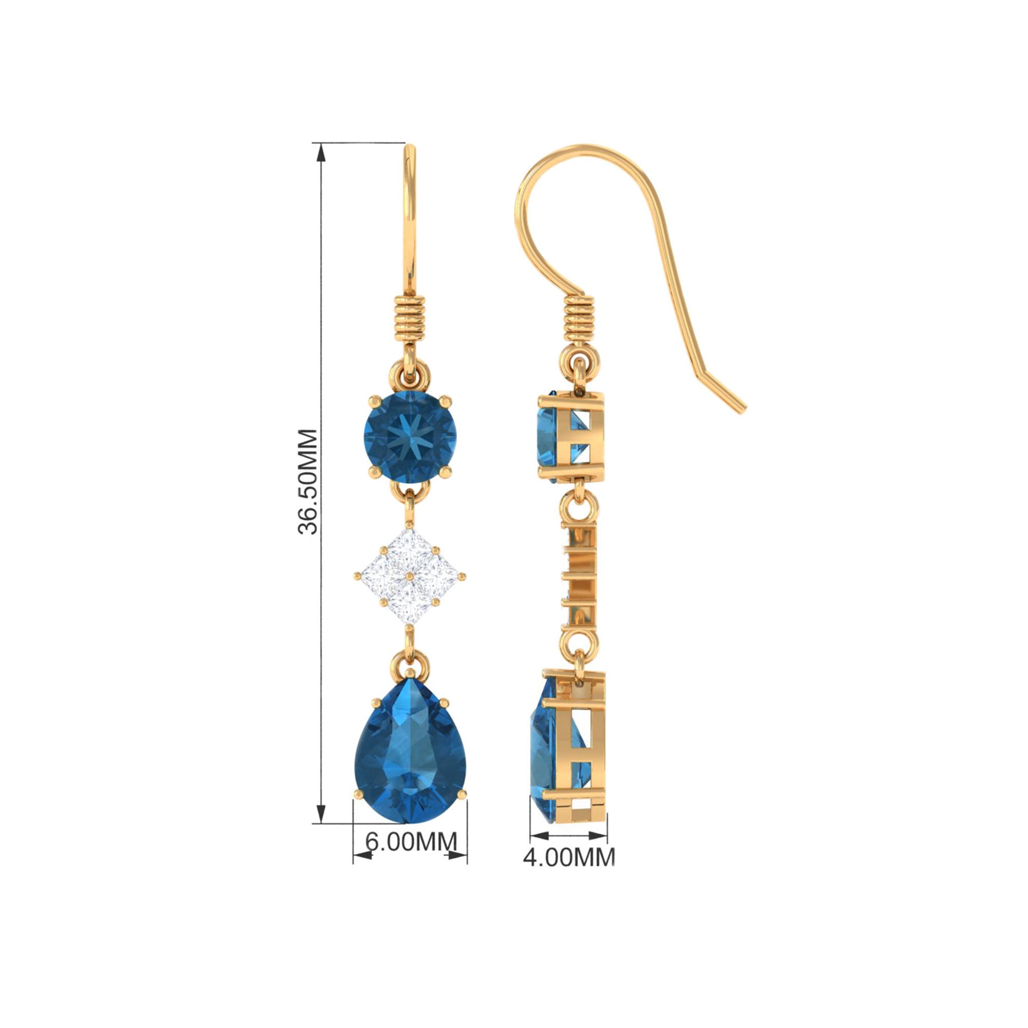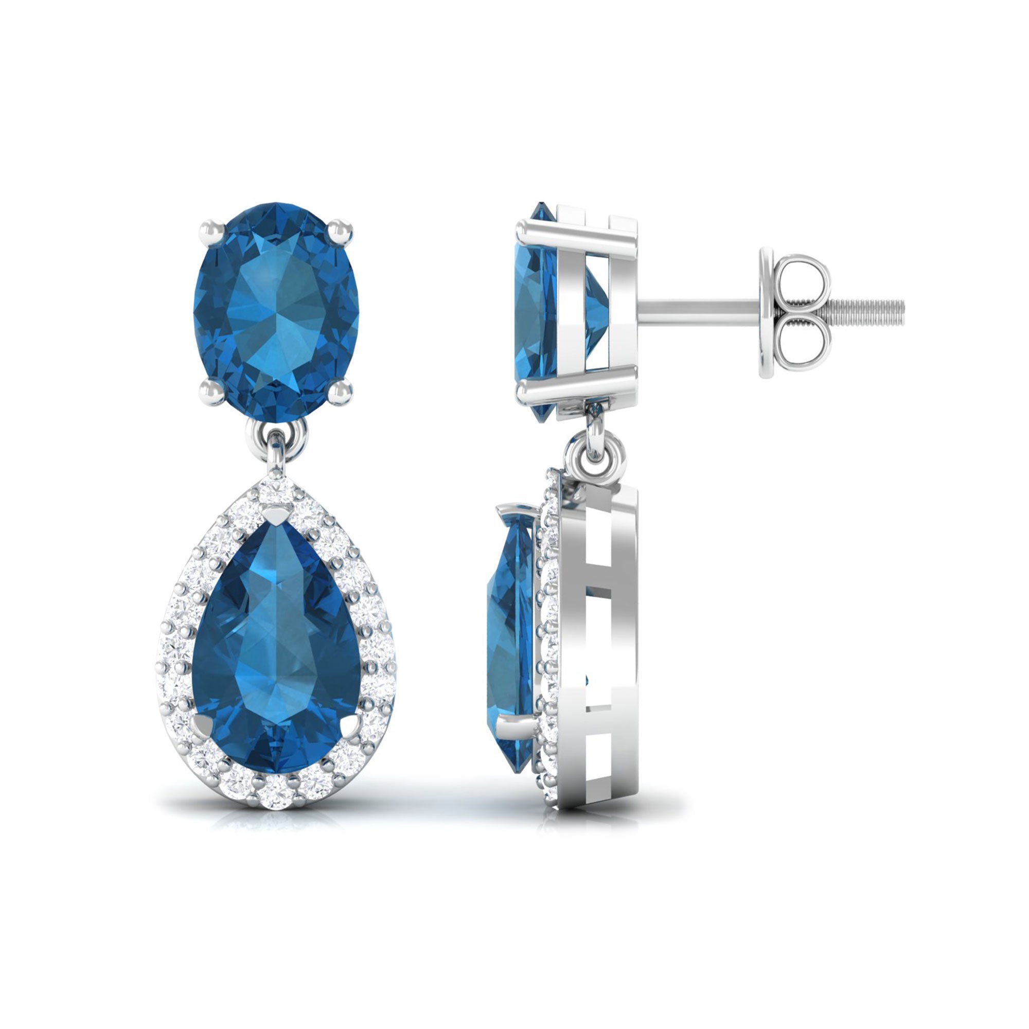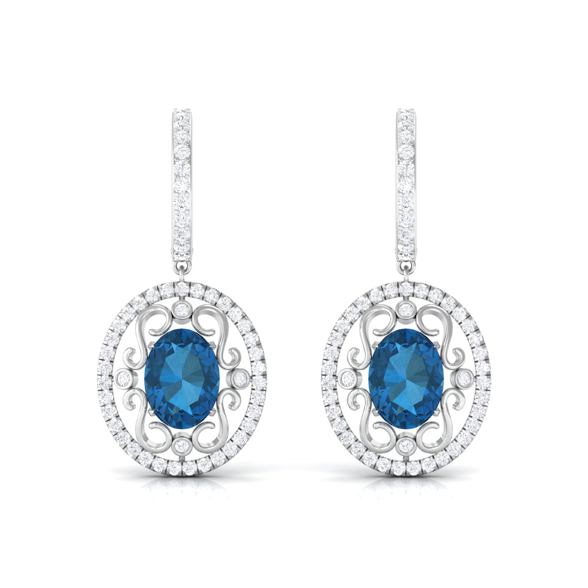 London Blue Topaz Vintage Inspired Earrings: - with each unique design of blue topaz vintage inspired earrings contributes to your charm and allure. Our vintage-styled blue topaz hoop drop earrings with diamond accents are a harmonious combination of modernism and classic elegance. They are lightweight and also comfortable to wear, adding a slight touch of vintage charm to your attires.