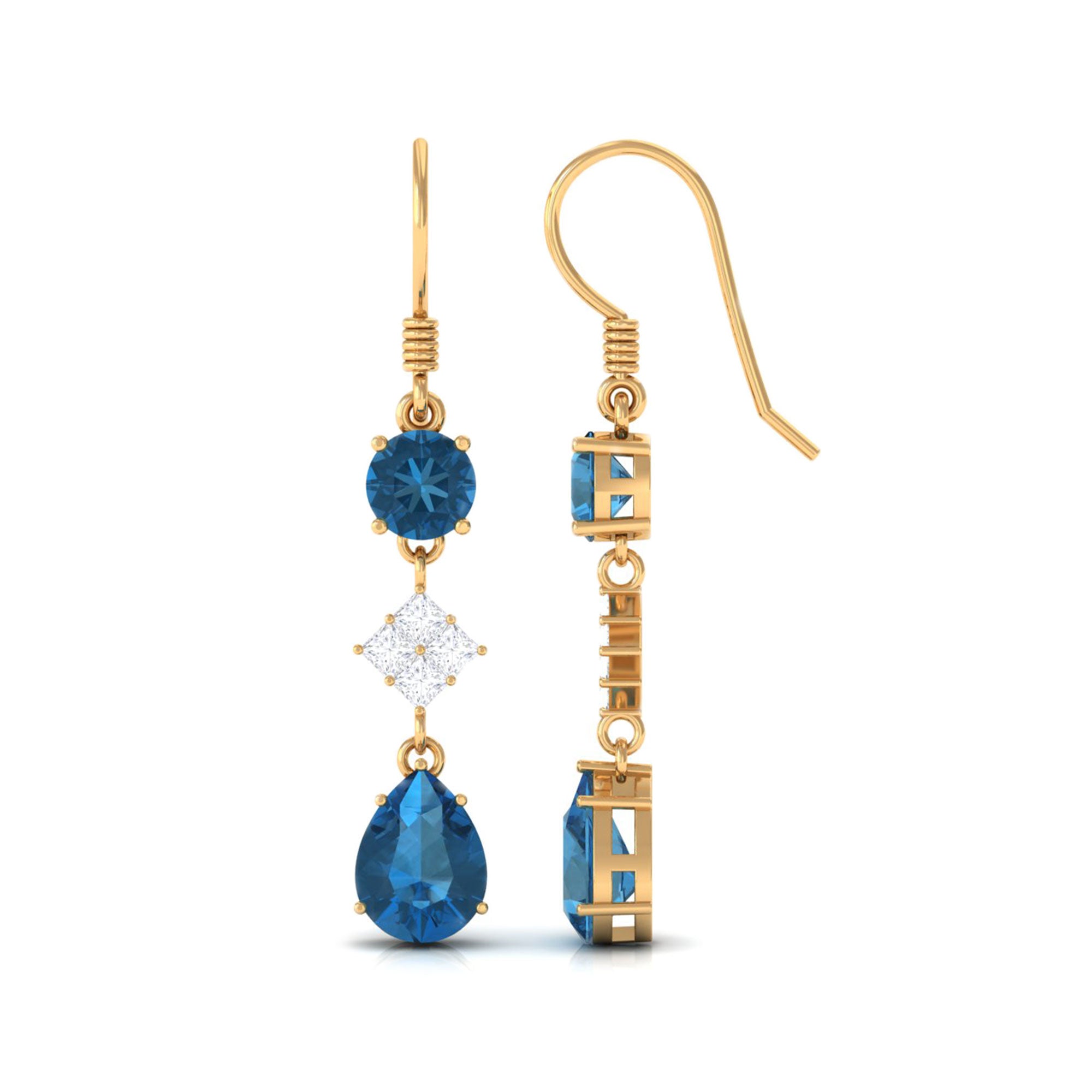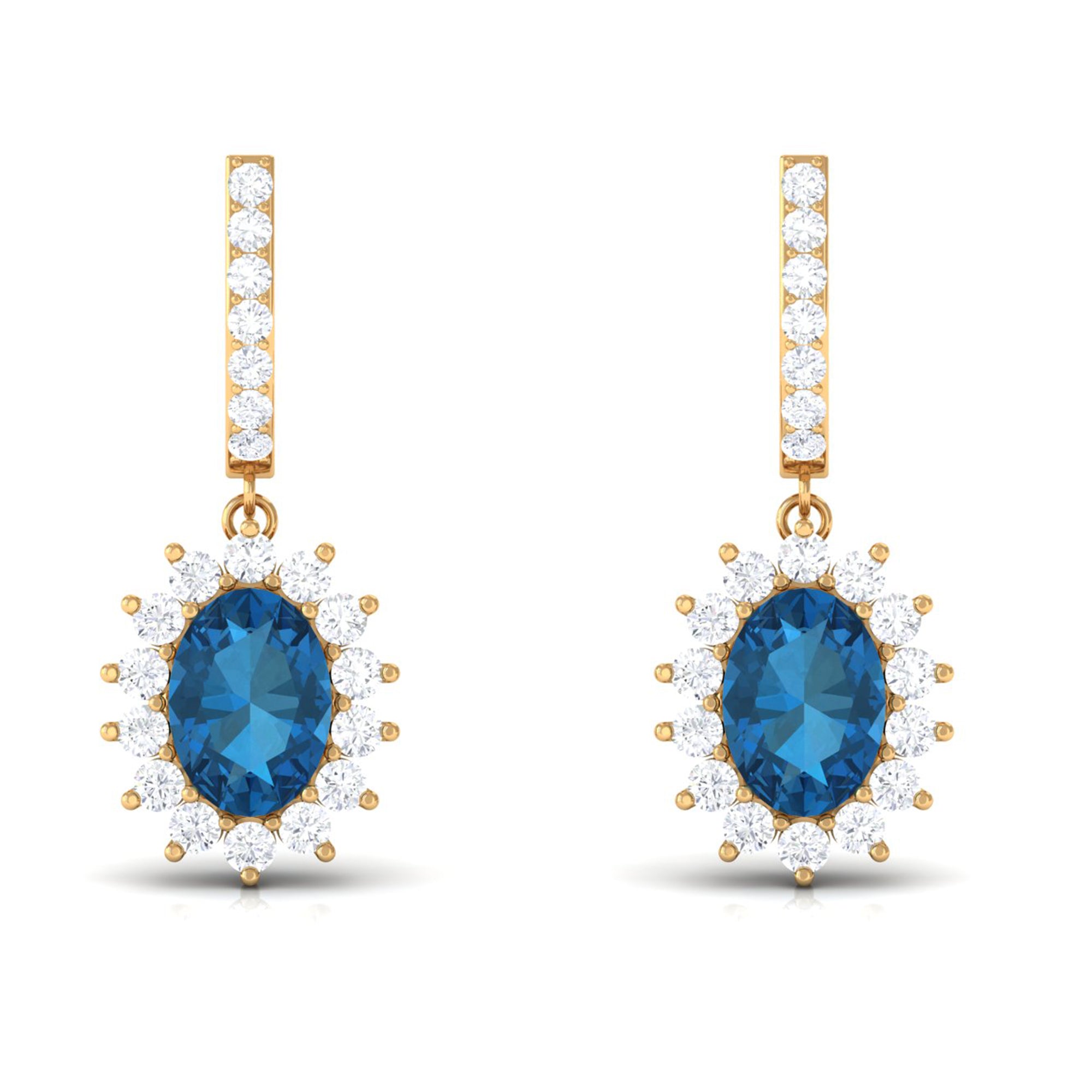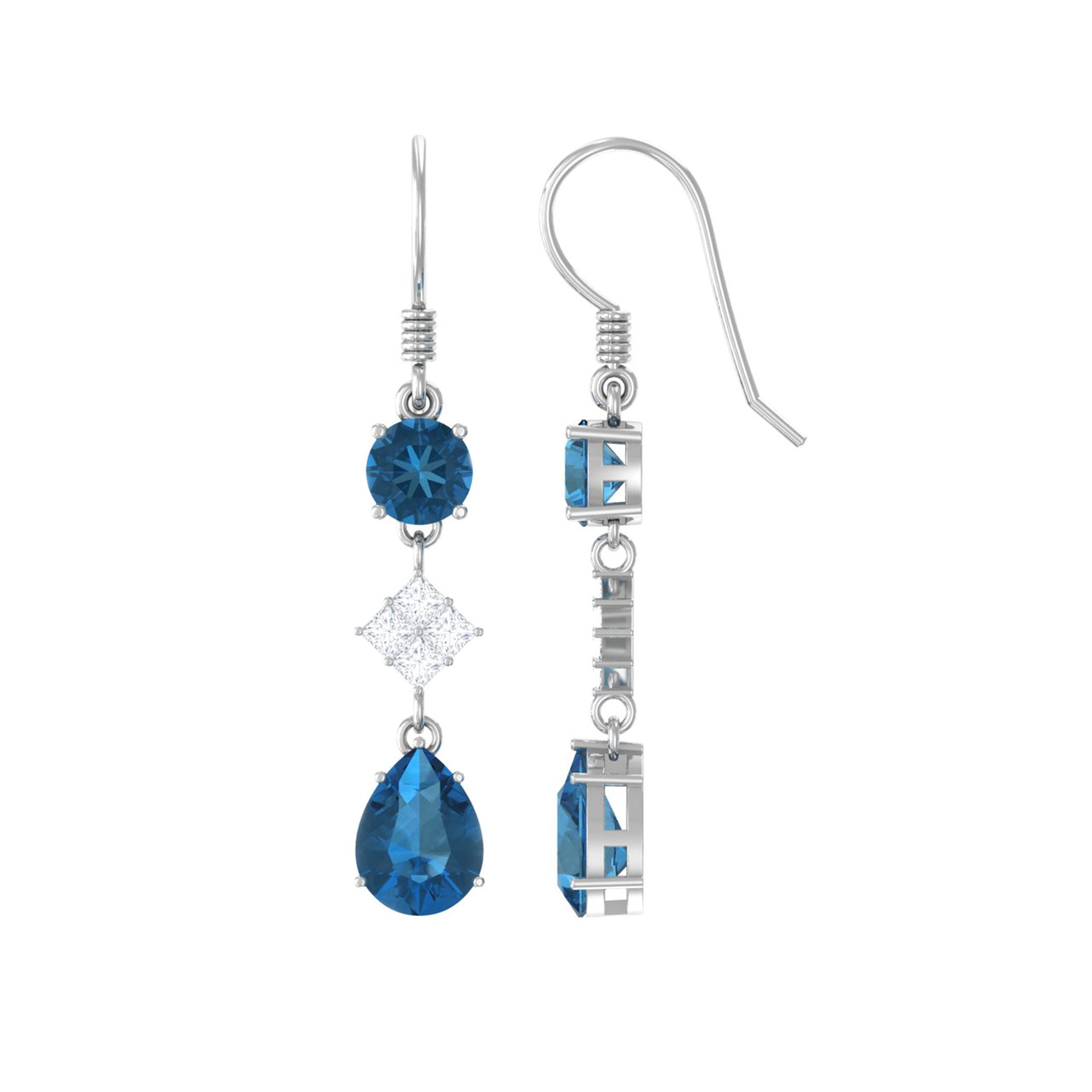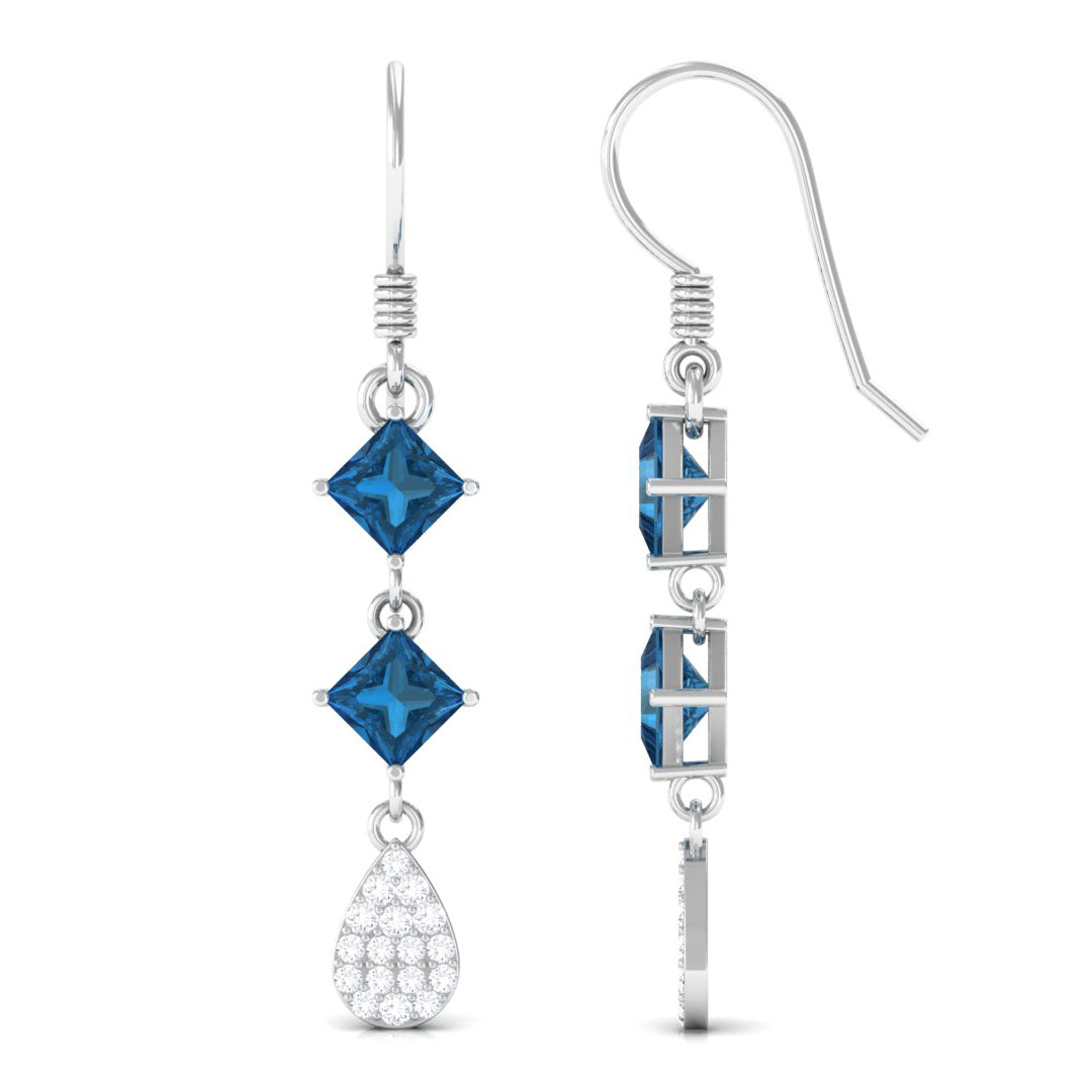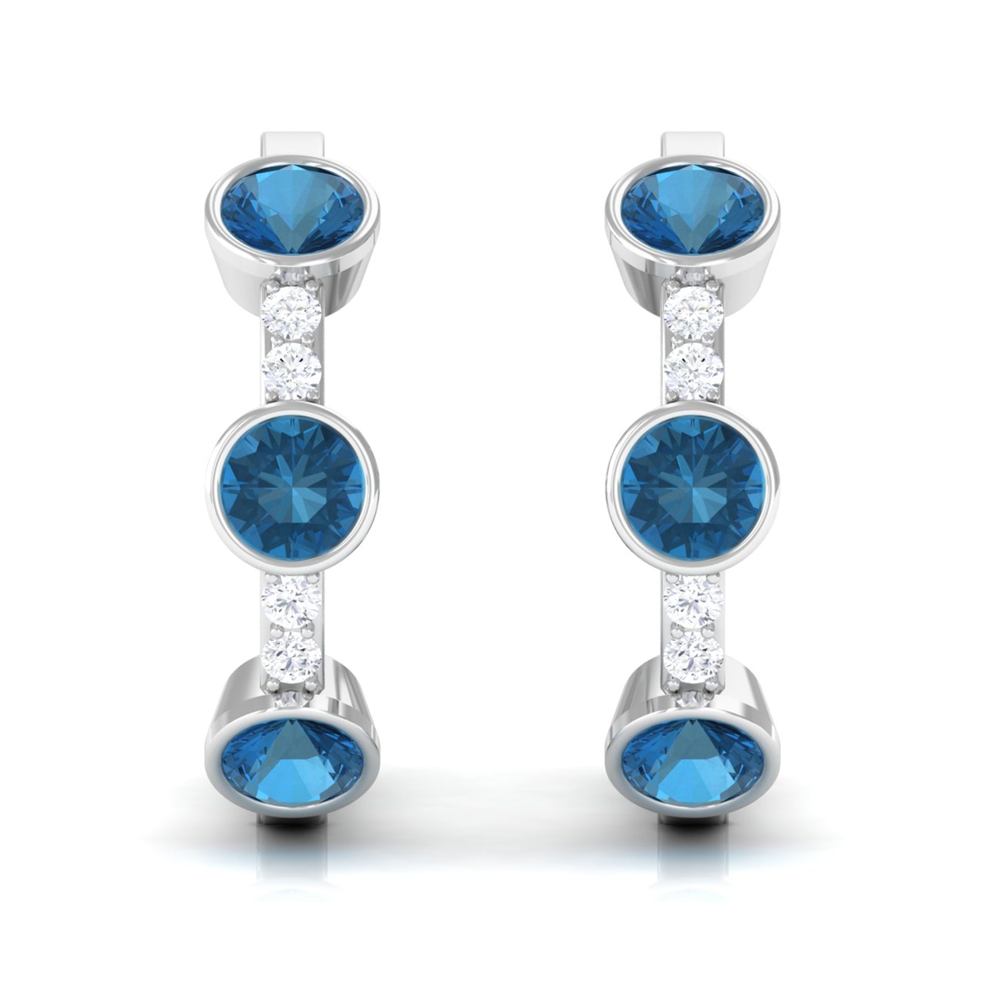 London Blue Topaz Vintage Inspired Earrings: - with each unique design of blue topaz vintage inspired earrings contributes to your charm and allure. Our vintage-styled blue topaz hoop drop earrings with diamond accents are a harmonious combination of modernism and classic elegance. They are lightweight and also comfortable to wear, adding a slight touch of vintage charm to your attires.