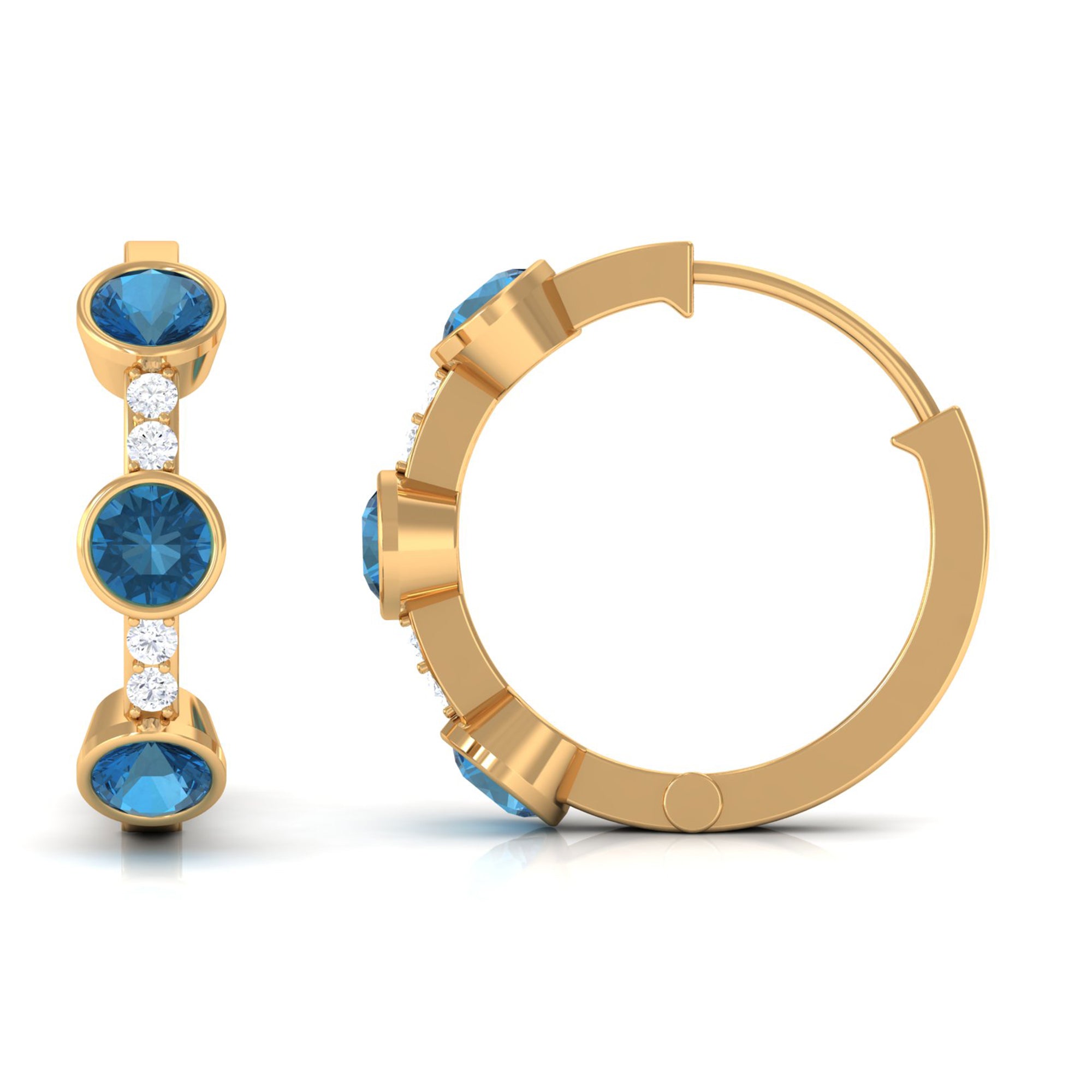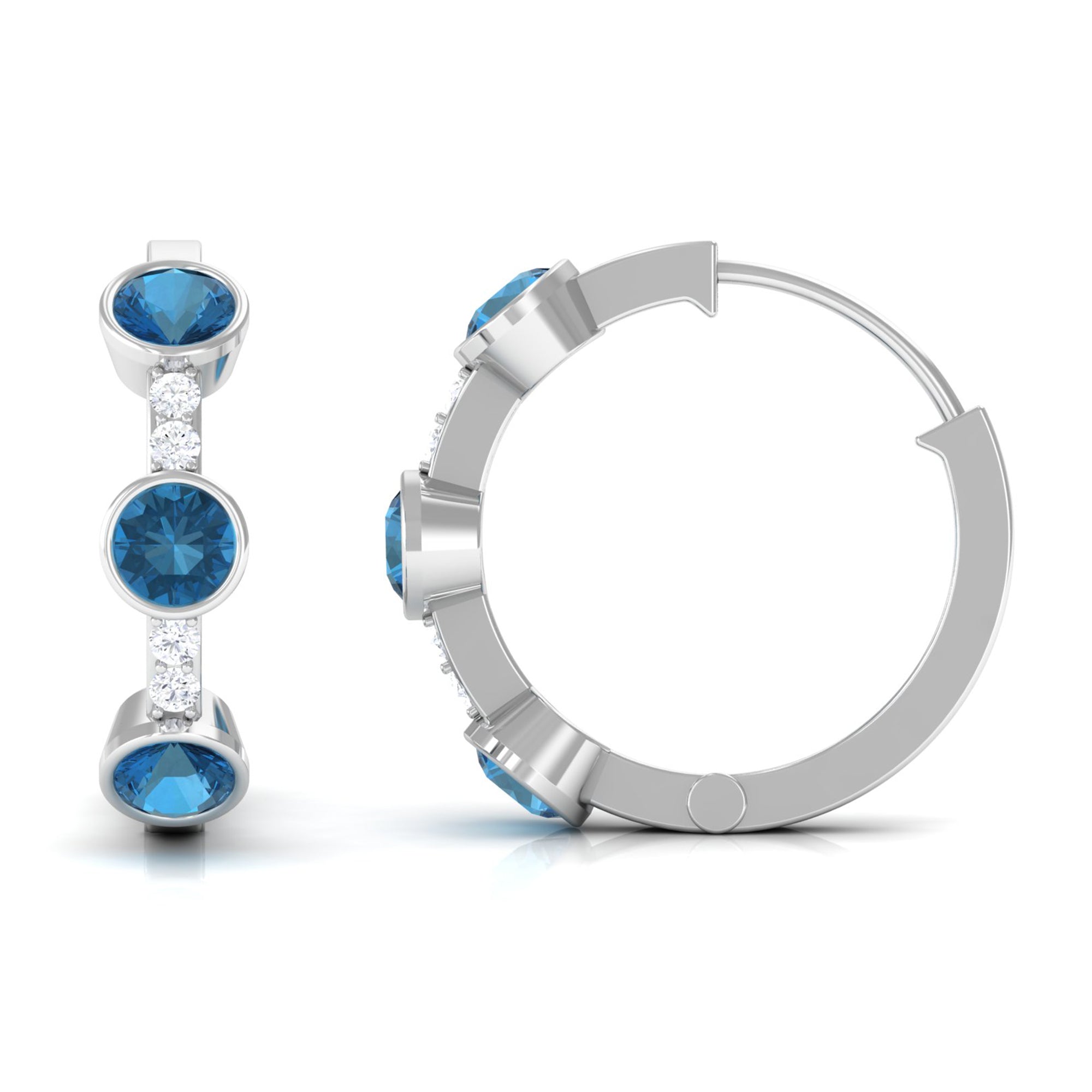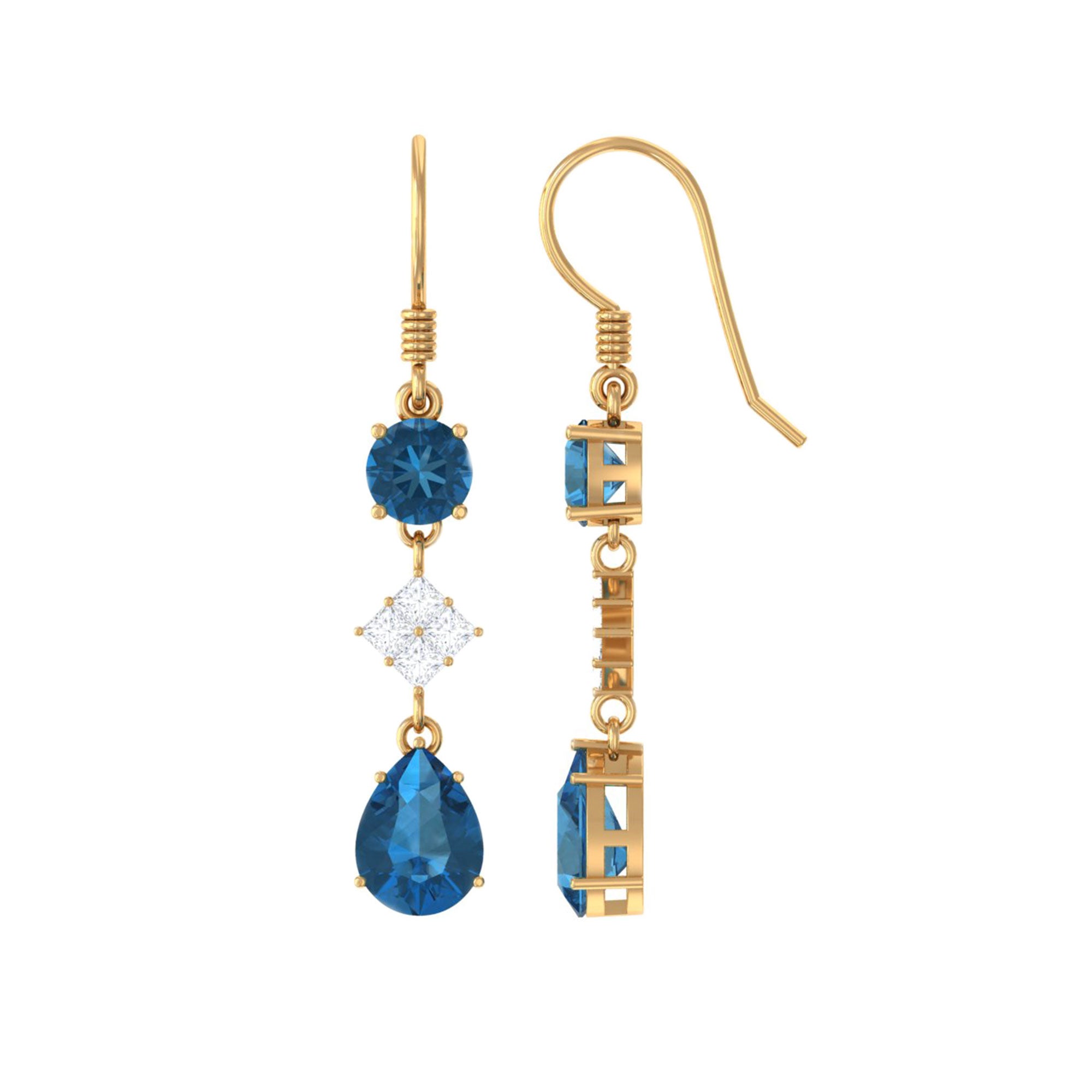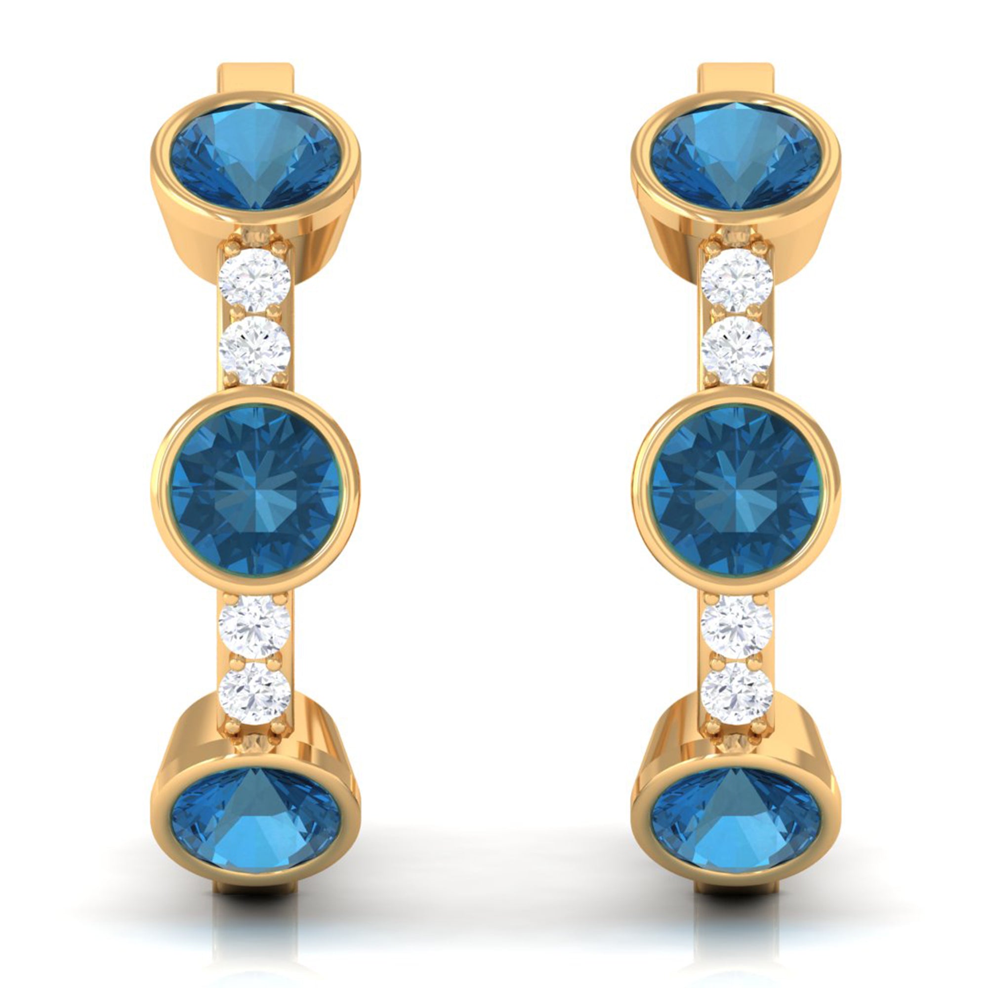 London Blue Topaz Vintage Inspired Earrings: - with each unique design of blue topaz vintage inspired earrings contributes to your charm and allure. Our vintage-styled blue topaz hoop drop earrings with diamond accents are a harmonious combination of modernism and classic elegance. They are lightweight and also comfortable to wear, adding a slight touch of vintage charm to your attires.
