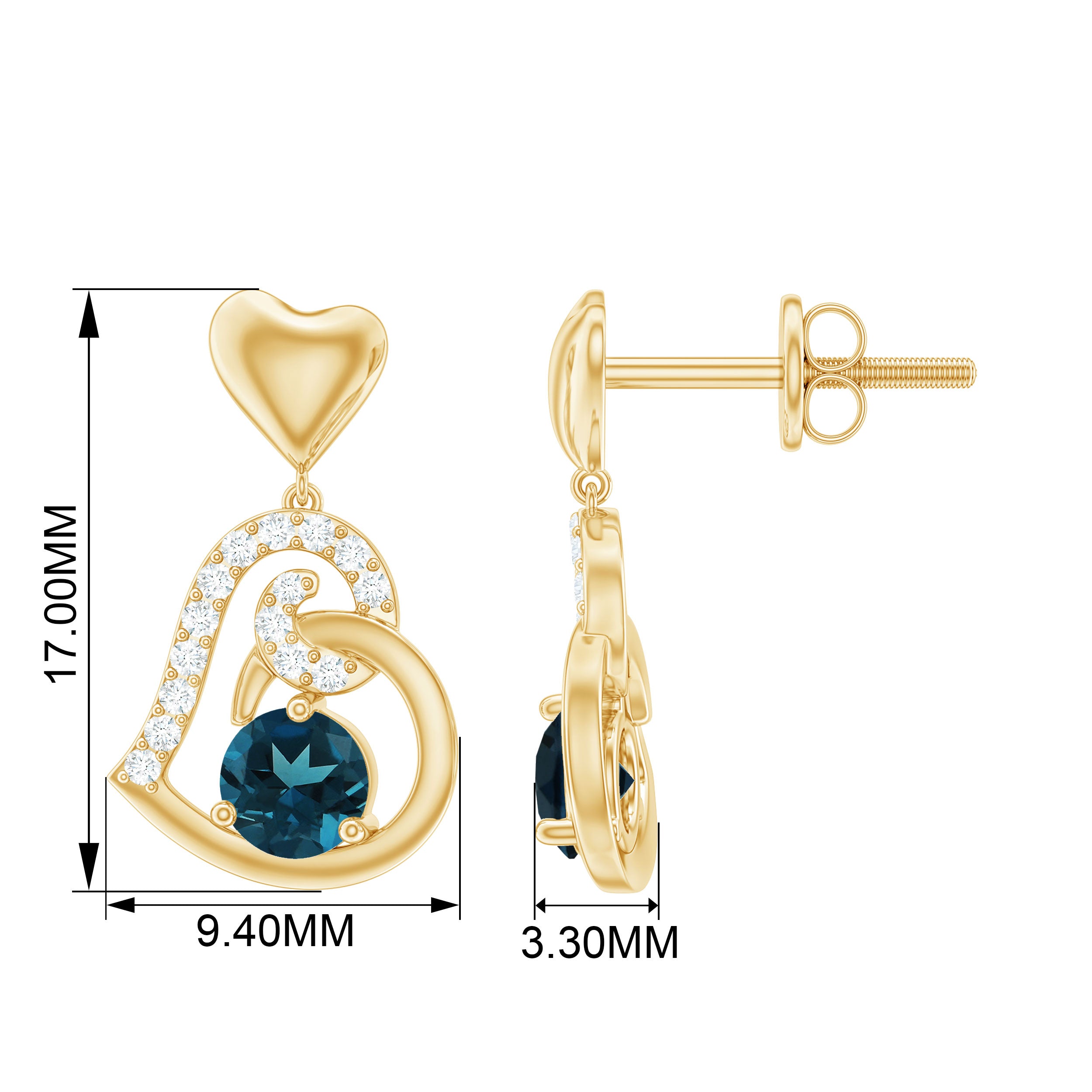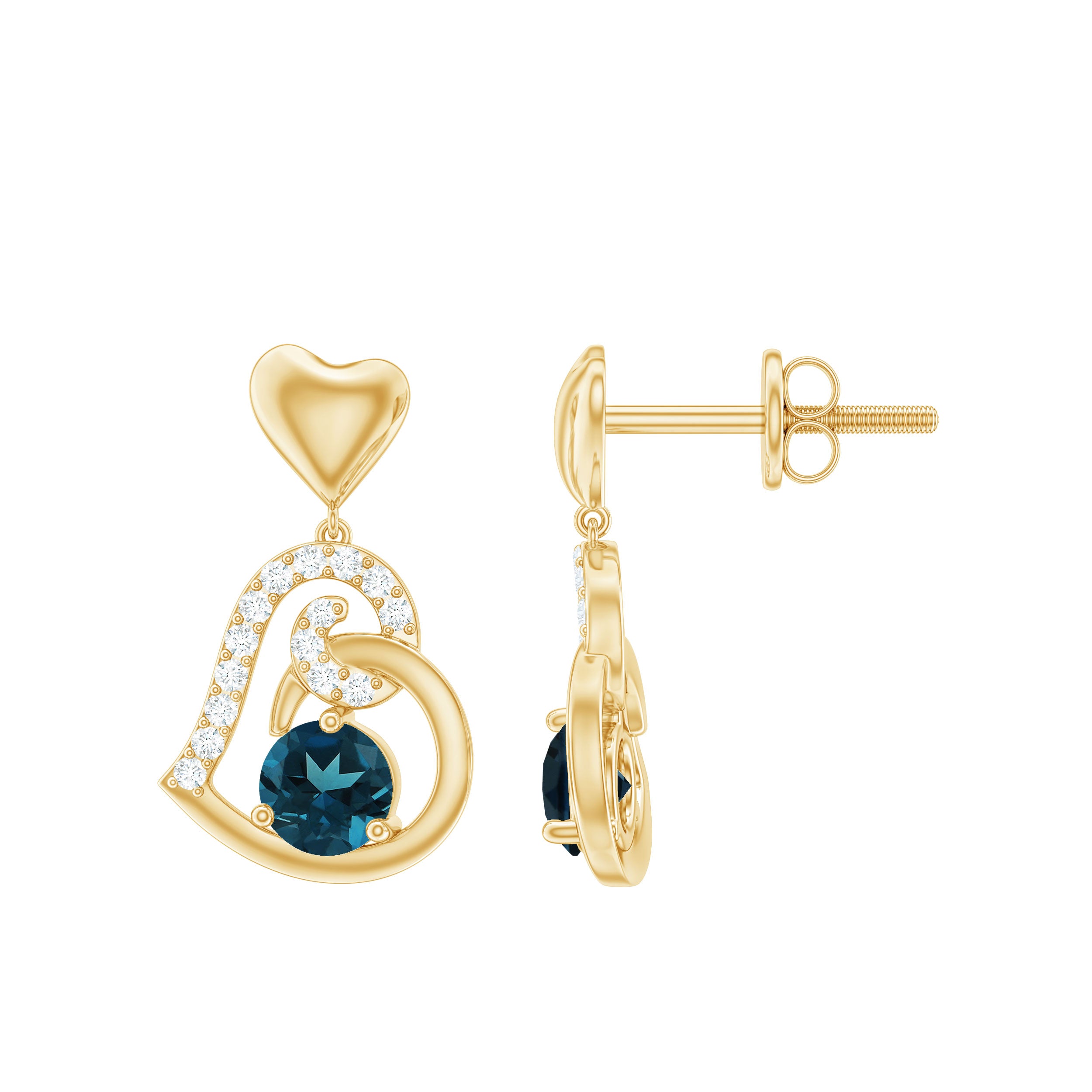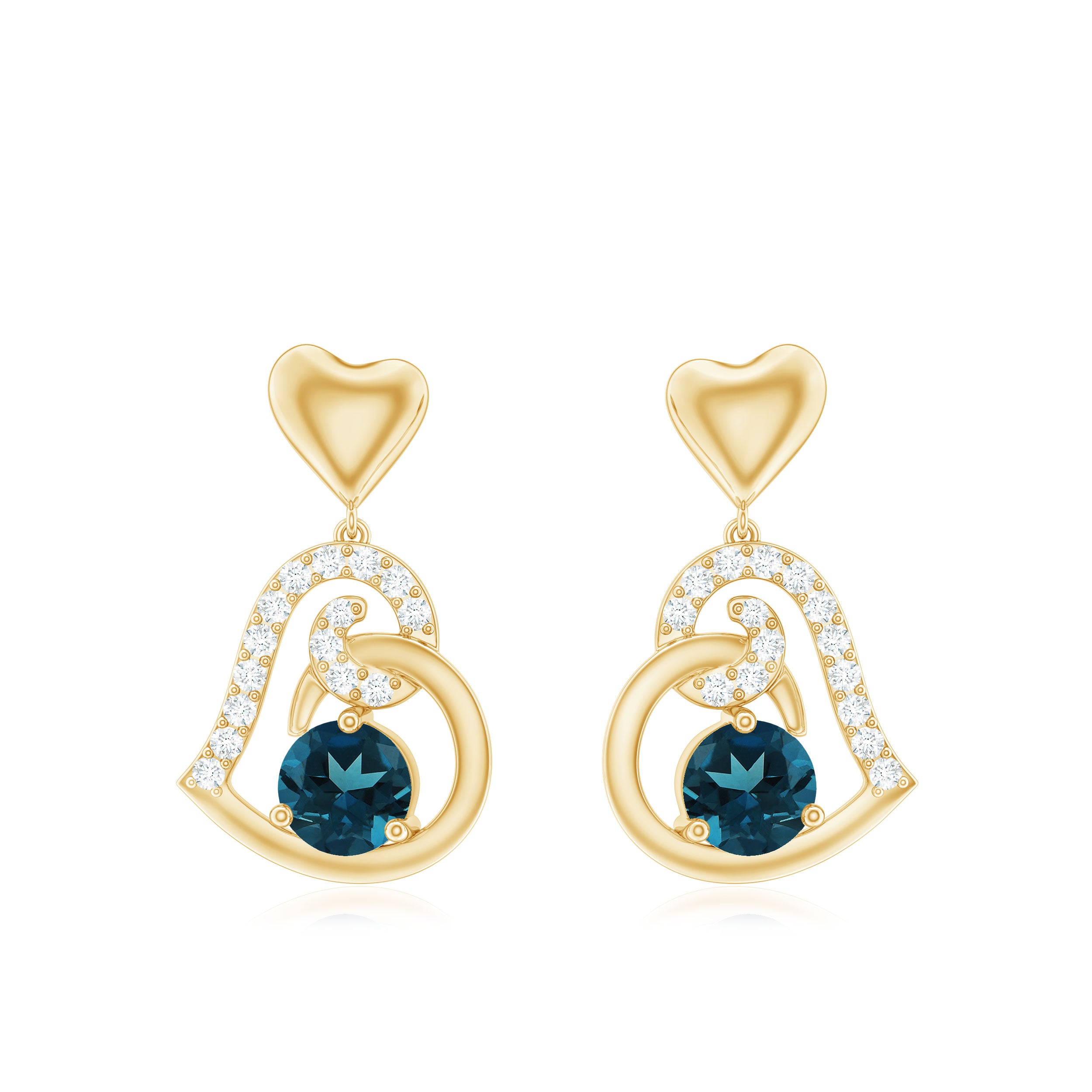 London Blue Topaz Drop & Dangle:- The blue topaz gemstone is also referred to as a "gemstone of successful love". This array of blue topaz drop & dangle earrings with heart and round shape, characterized as the deep rich color London blue topaz, dangling below the earlobes.