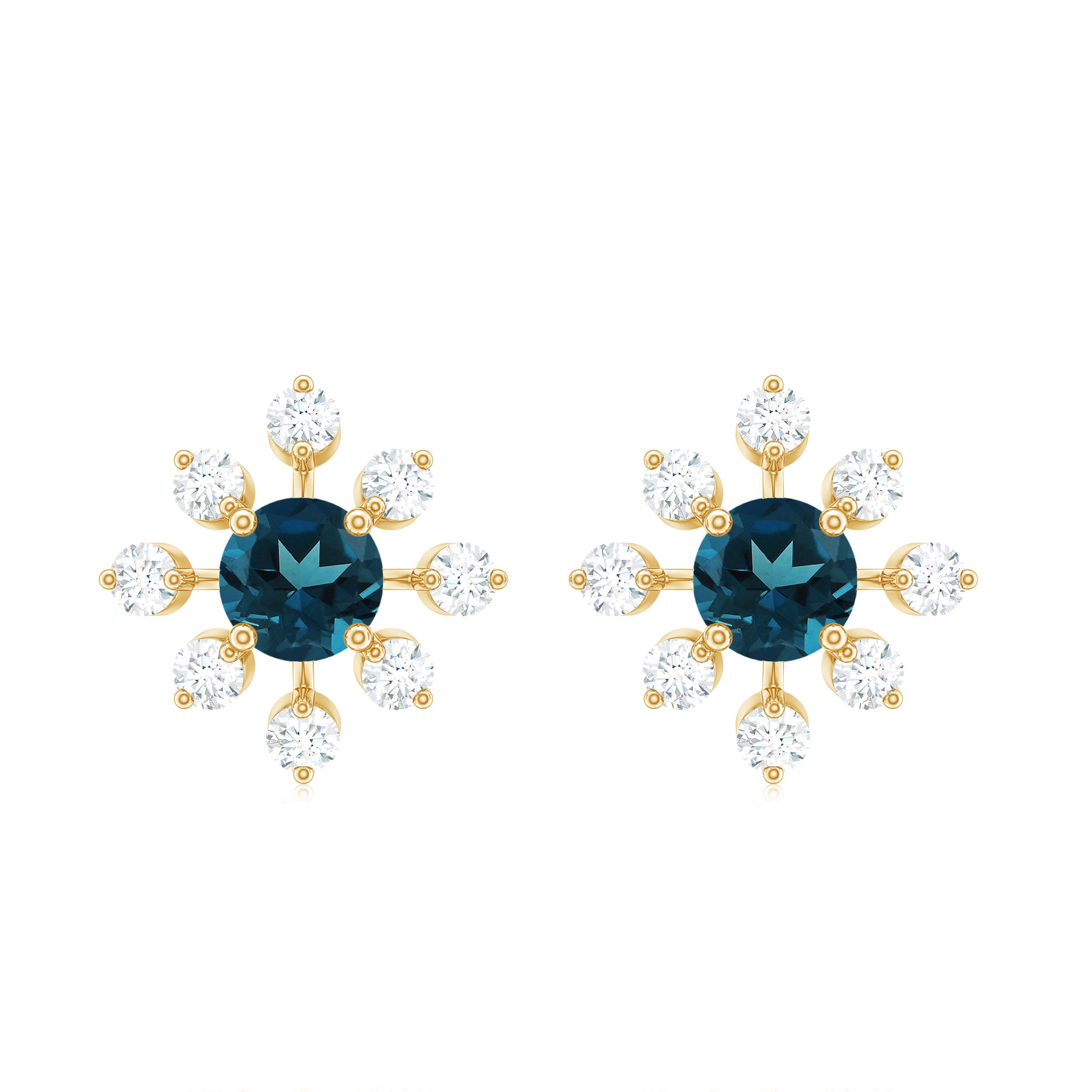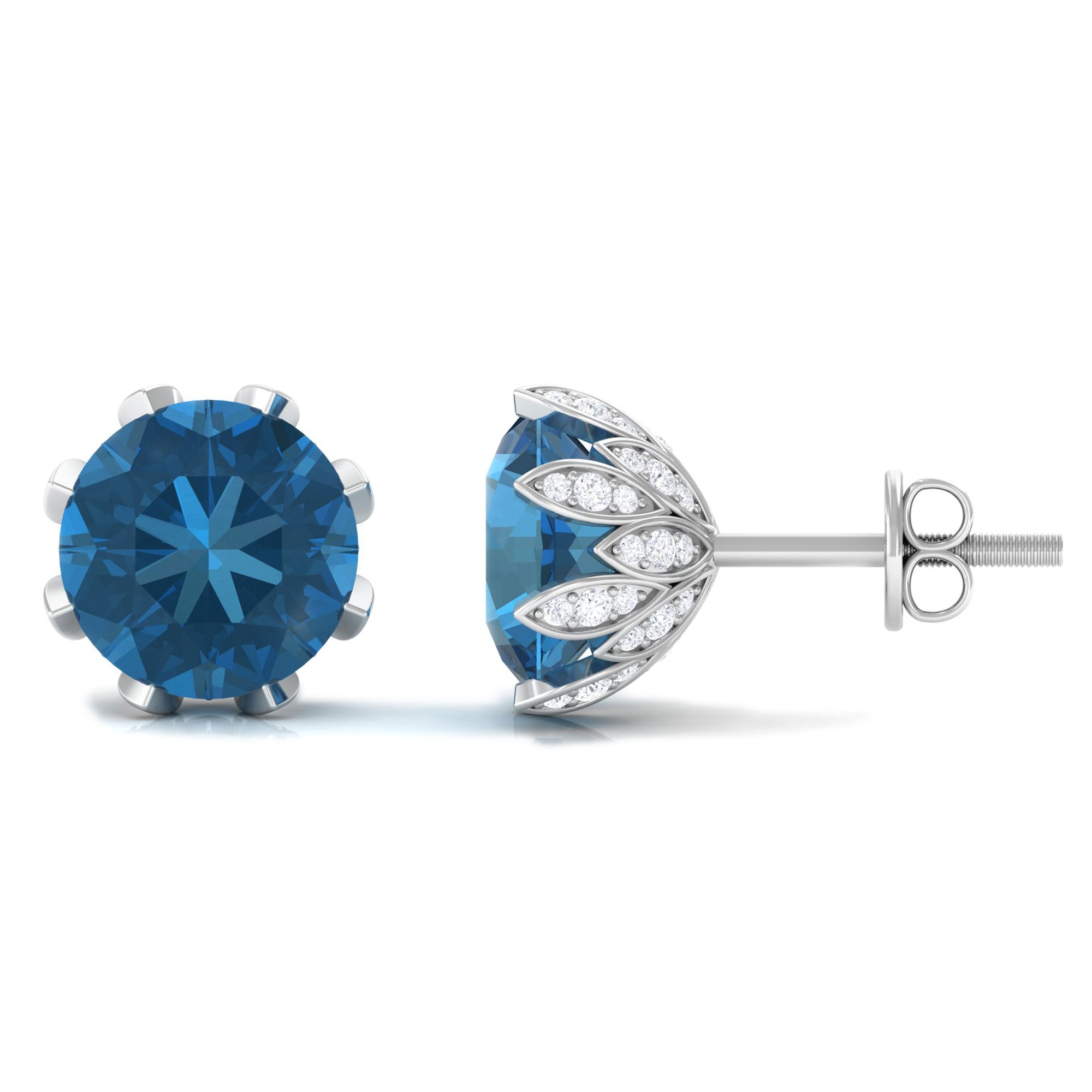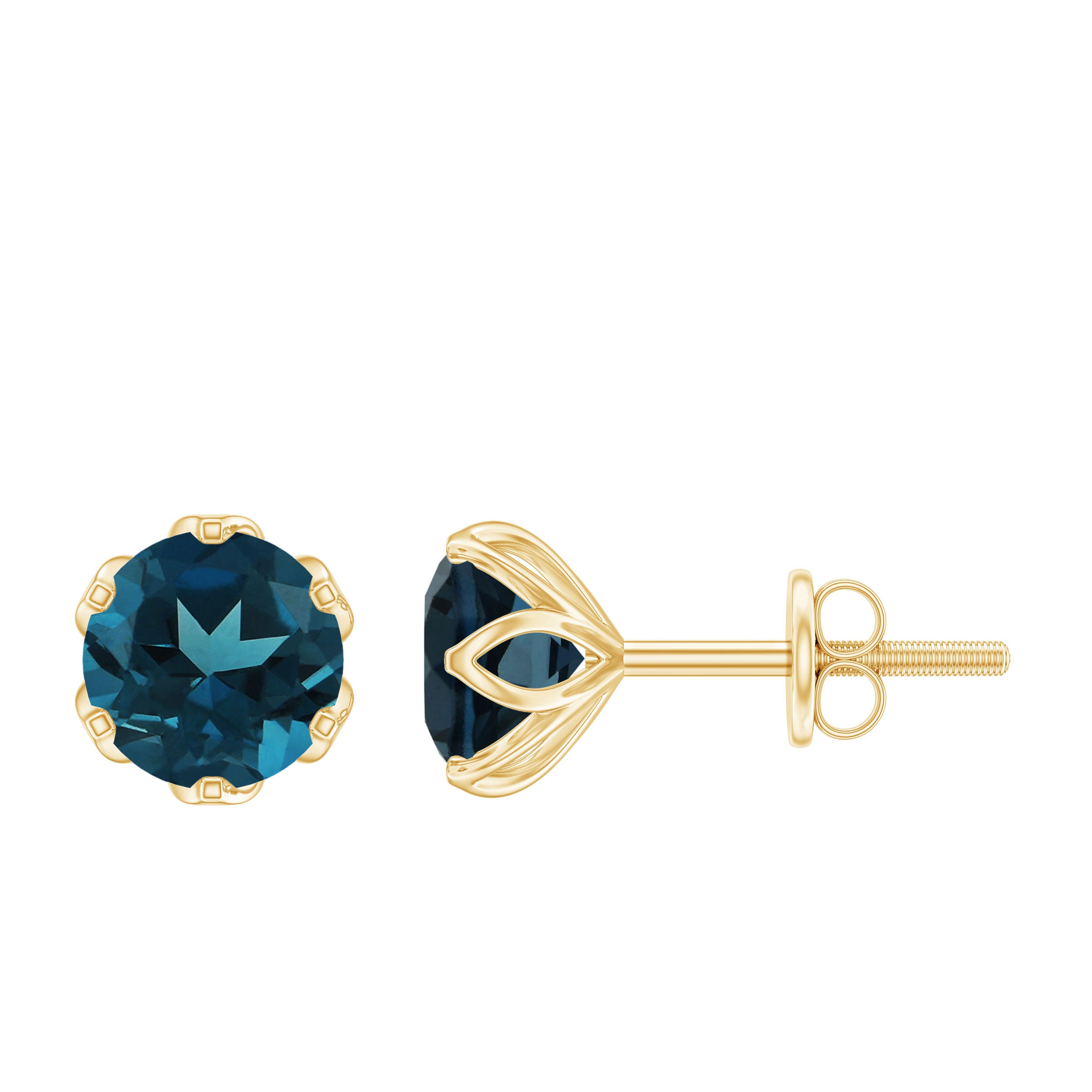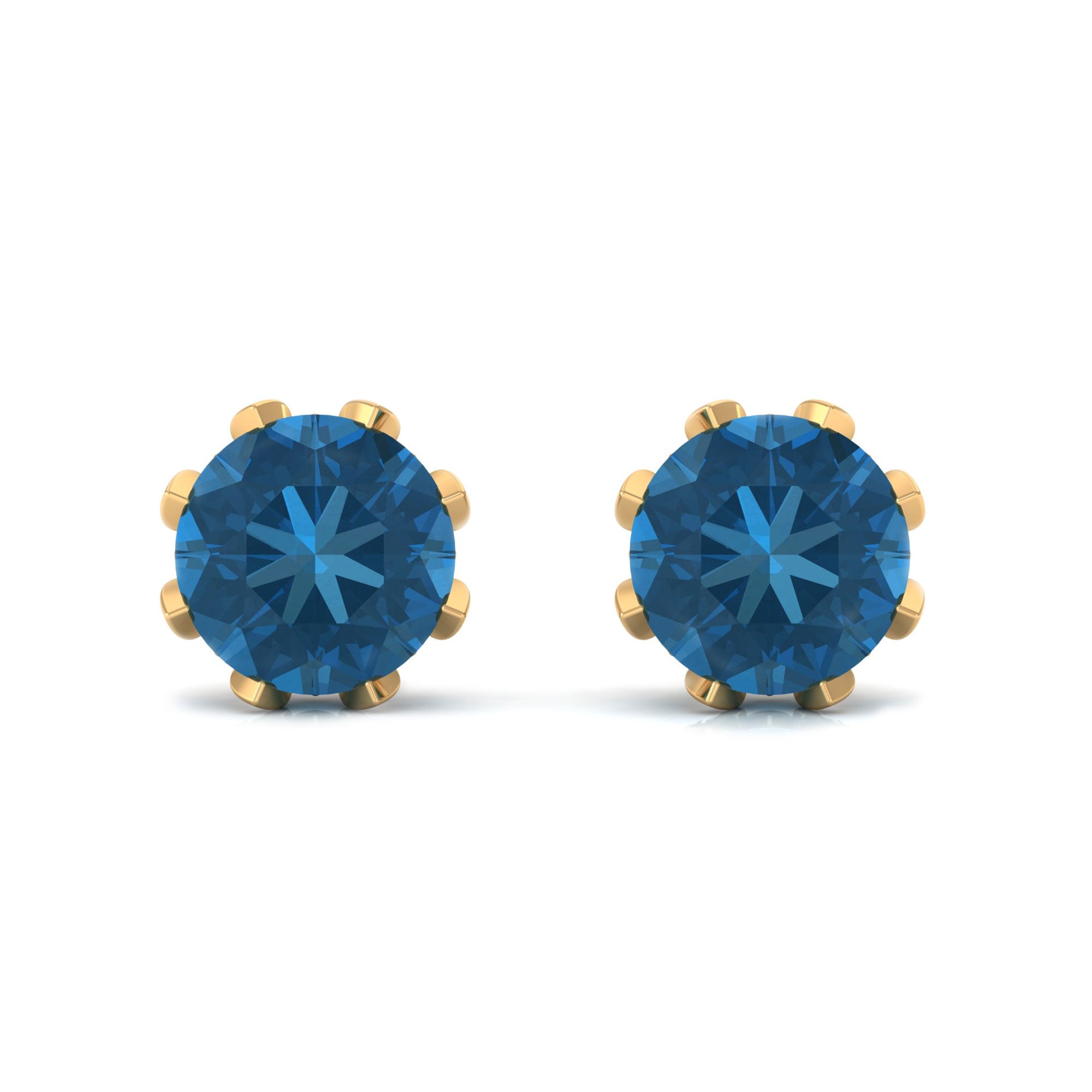 London Blue Topaz Studs: - Every London blue topaz stud earring, from round shape to cushion cut, gleams and displays sparkle from every angle. The simple and sophisticated appearance of earrings makes them an ideal piece of earrings for those who seek versatility in their accessories. Being durable studs, they are cherished for years, and the stud's sparkle will endure undiminished.
