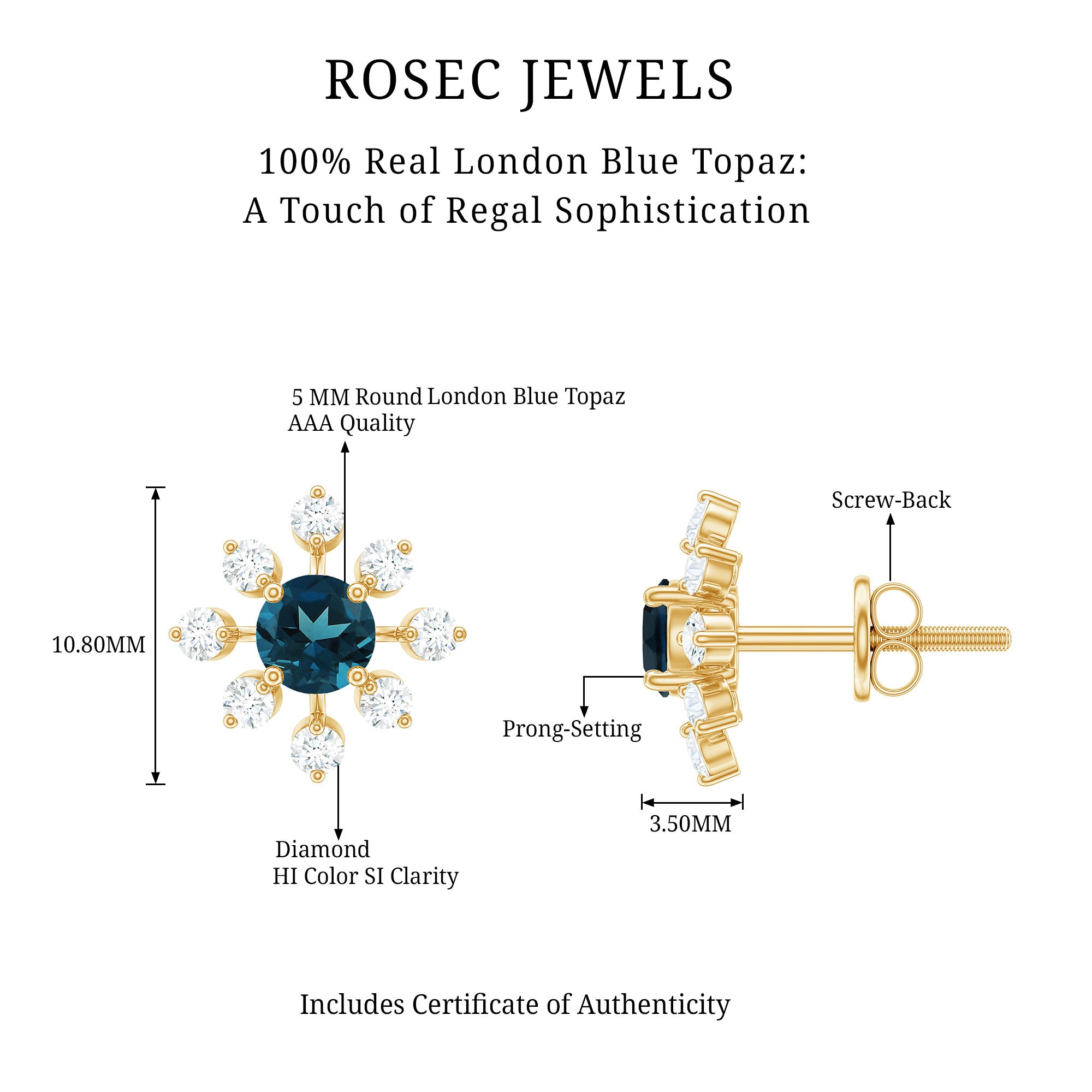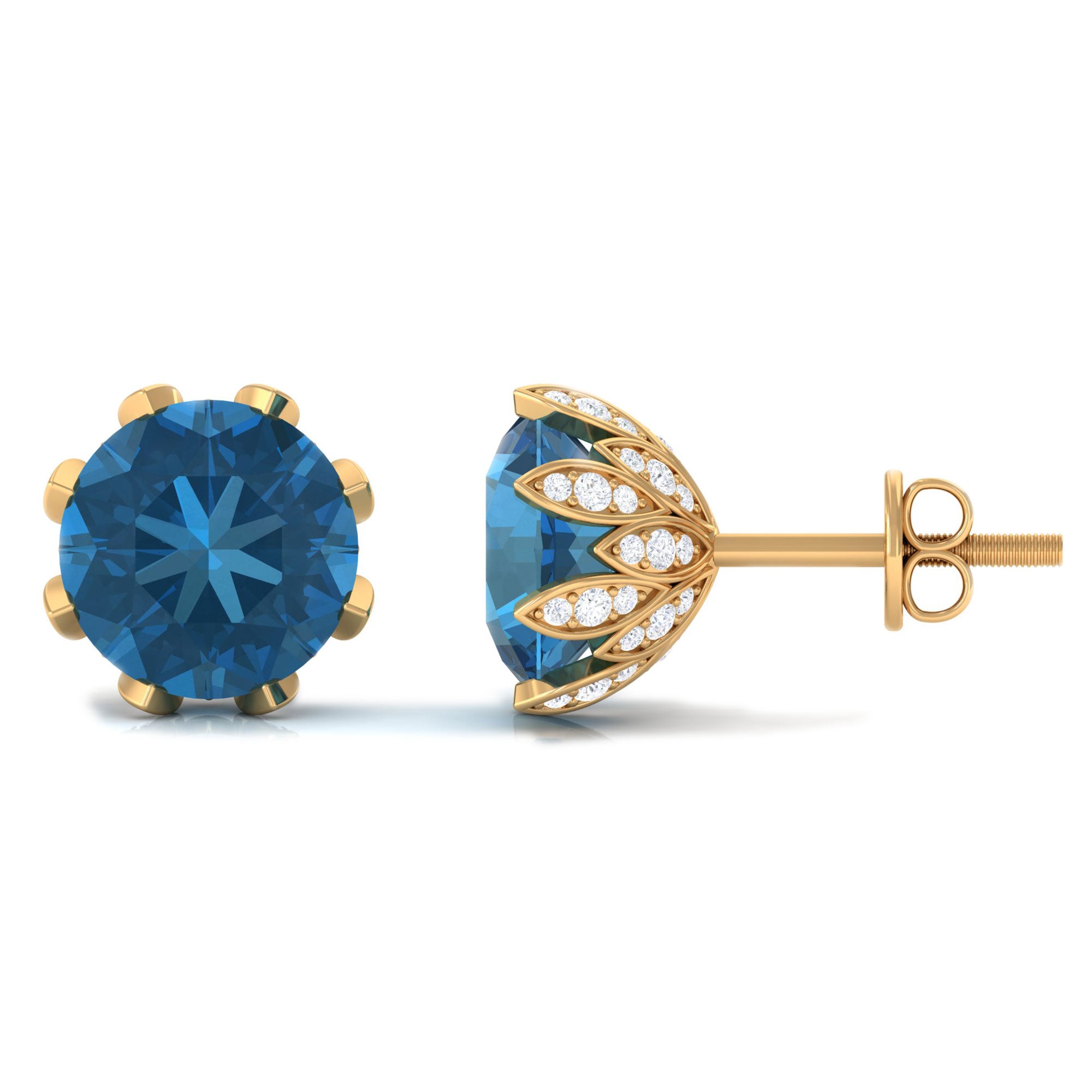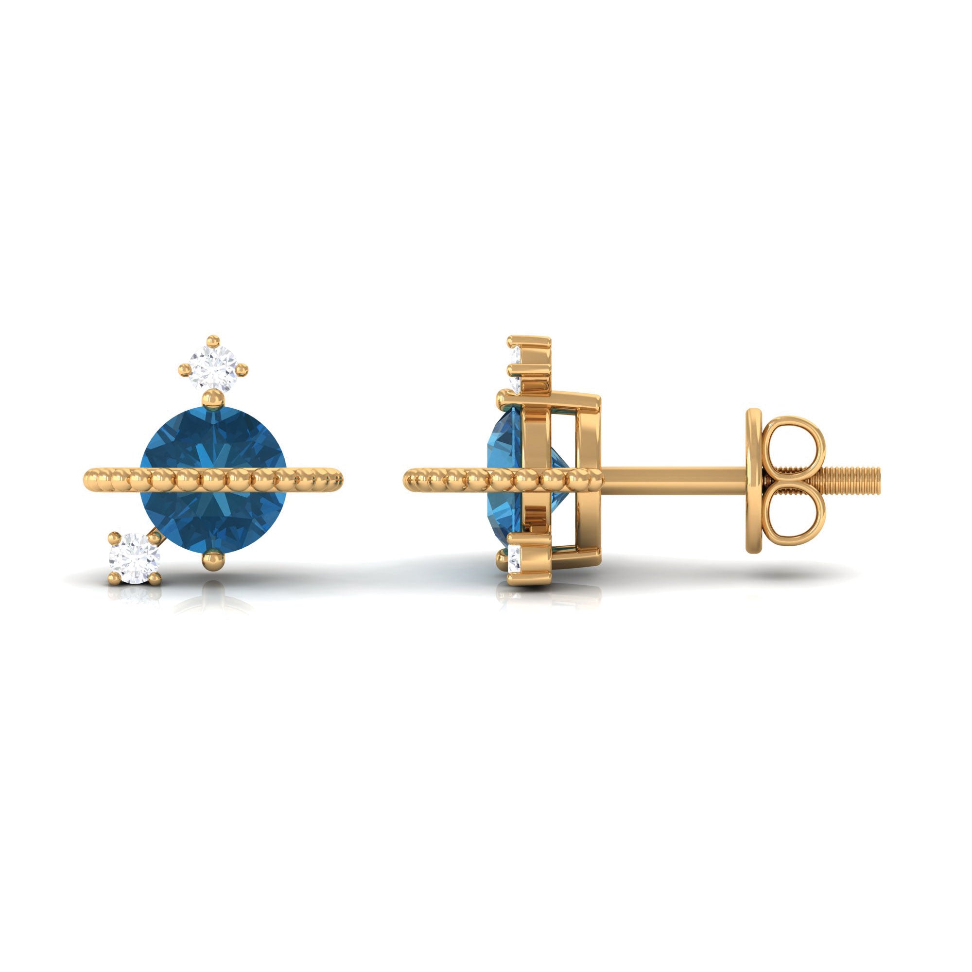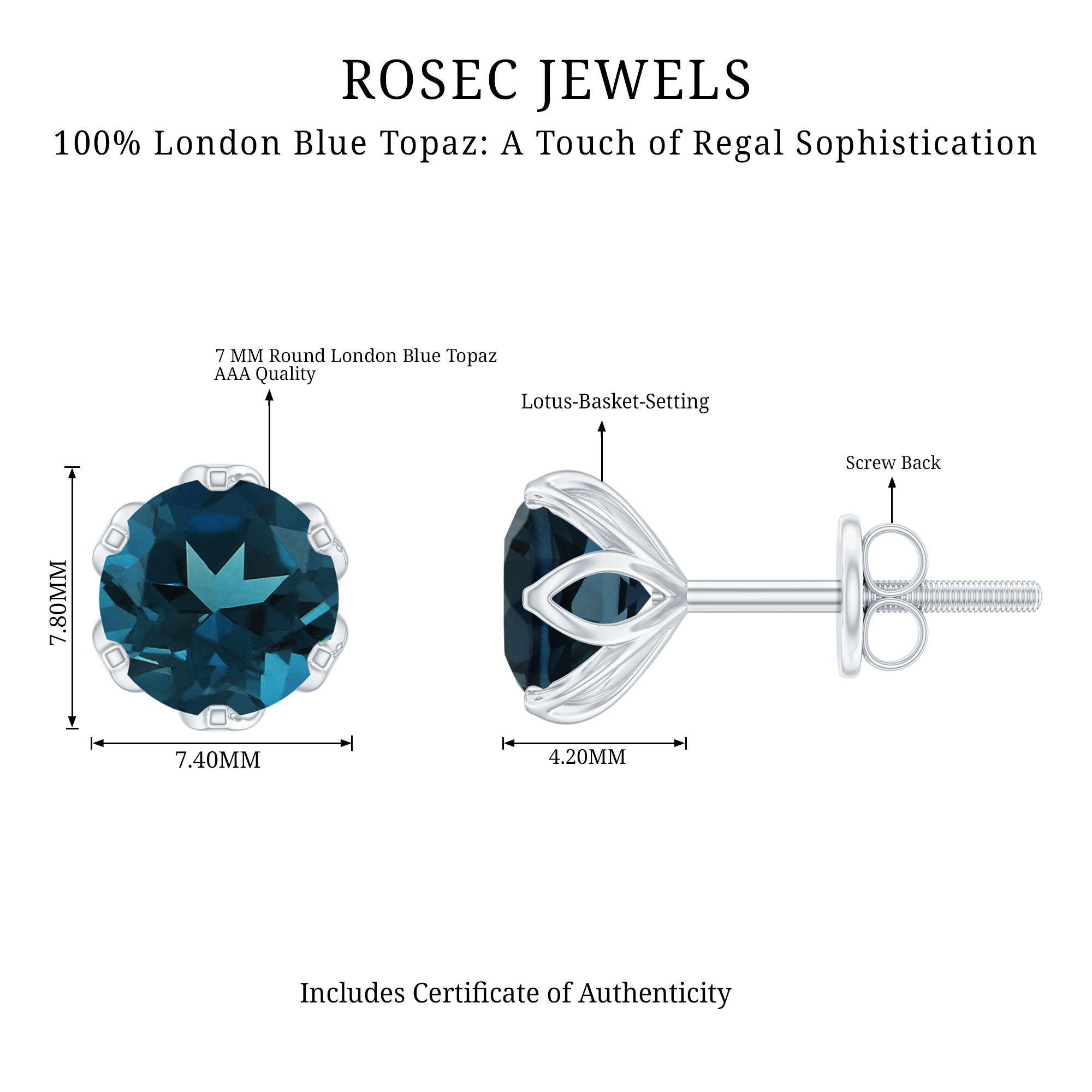 London Blue Topaz Studs: - Every London blue topaz stud earring, from round shape to cushion cut, gleams and displays sparkle from every angle. The simple and sophisticated appearance of earrings makes them an ideal piece of earrings for those who seek versatility in their accessories. Being durable studs, they are cherished for years, and the stud's sparkle will endure undiminished.