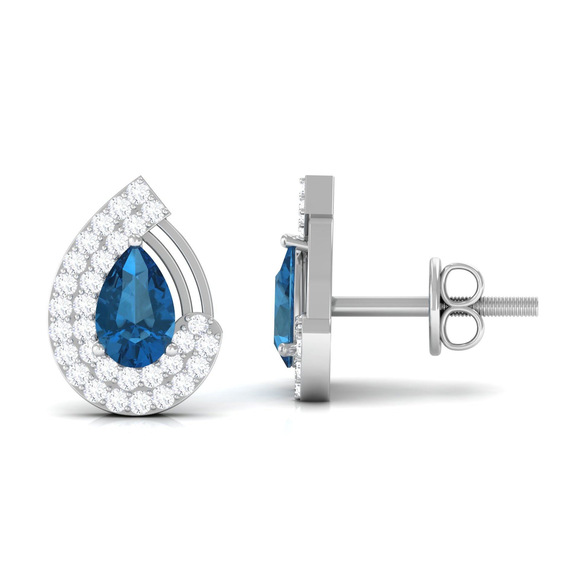 White Gold:- A popular pick for gemstone jewelry. White Gold metal complement any design and cool color tones of London blue topaz earrings, creating a mesmerizing charm to your personality.