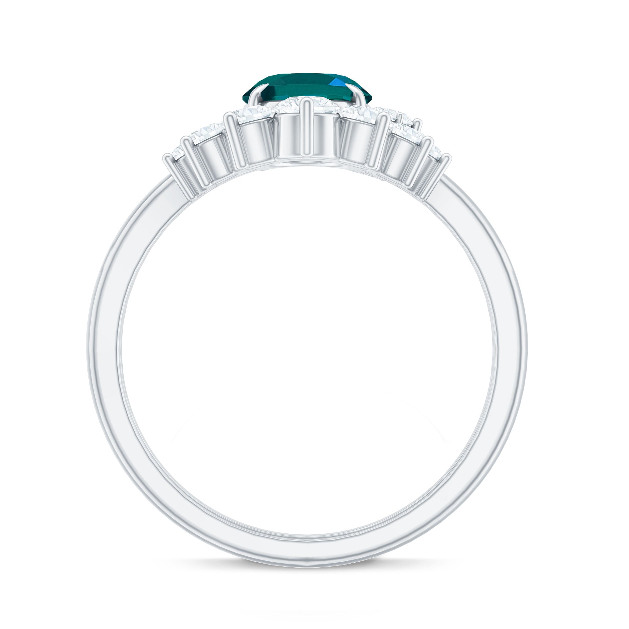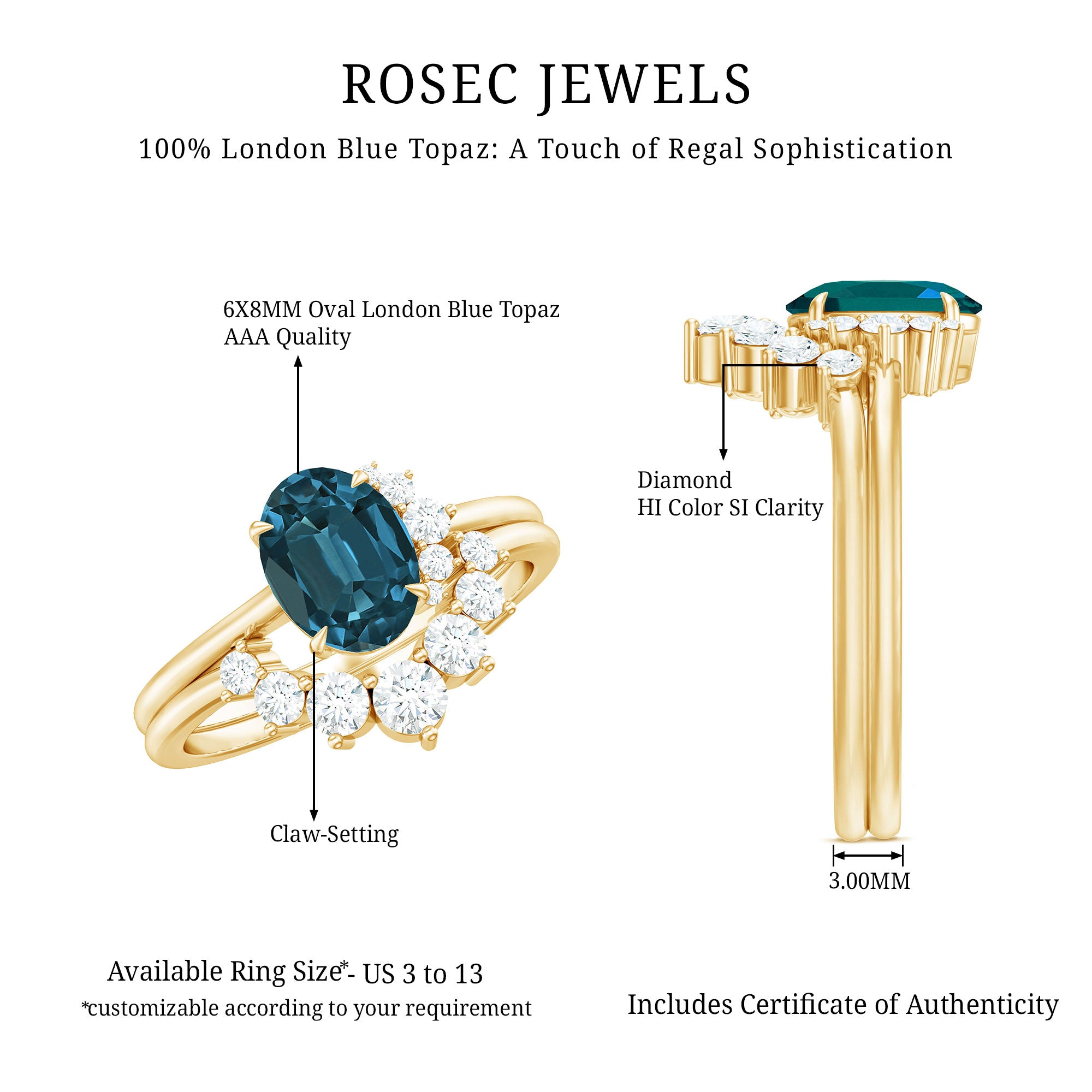 For bride who adore a touch of sparkle, our stylish halo engagement ring elegantly highlights the center London blue topaz and makes them appear a bit larger. Encircled by small diamonds or moissanite stone, the shimmery halo not only accentuates the brilliance but also maximizes the regal blue hues, making them a foremost option for wedding or engagement rings. Our classic yet mesmerizing London blue topaz with a diamond accent is perfect for couples who appreciate the timeless charm with a hint of glamour.