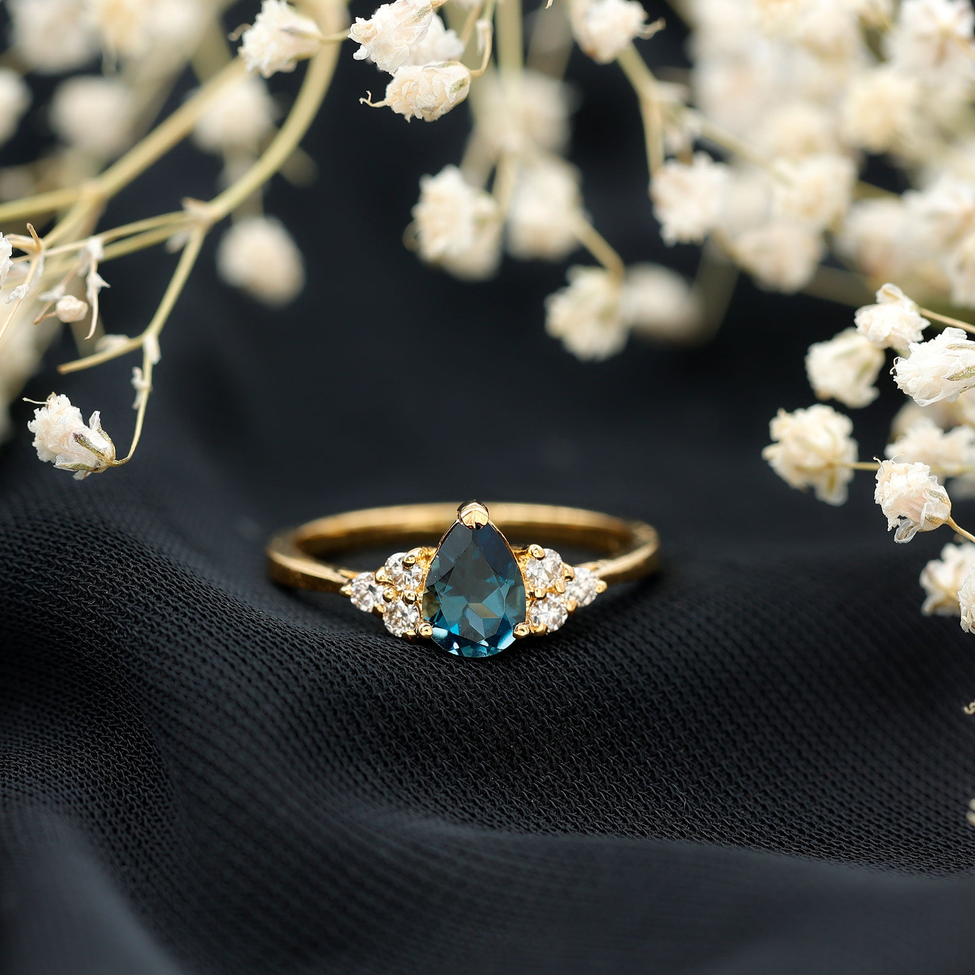 This style of engagement ring stands out unique due to its artistic elegance and nostalgic vibe, drawing inspiration from the classic Art Deco Victorian Eras and Edwardian eras. Our London blue topaz vintage-inspired rings highlight intricate details such as milgran and filigree along with abstract geometric patterns and historic engravings, making the best timeless charming accessory that offers an antique feel. The London Blue Topaz is graced by vintage design, making it a perfect ring for those couples who are inspired by old-school romance.