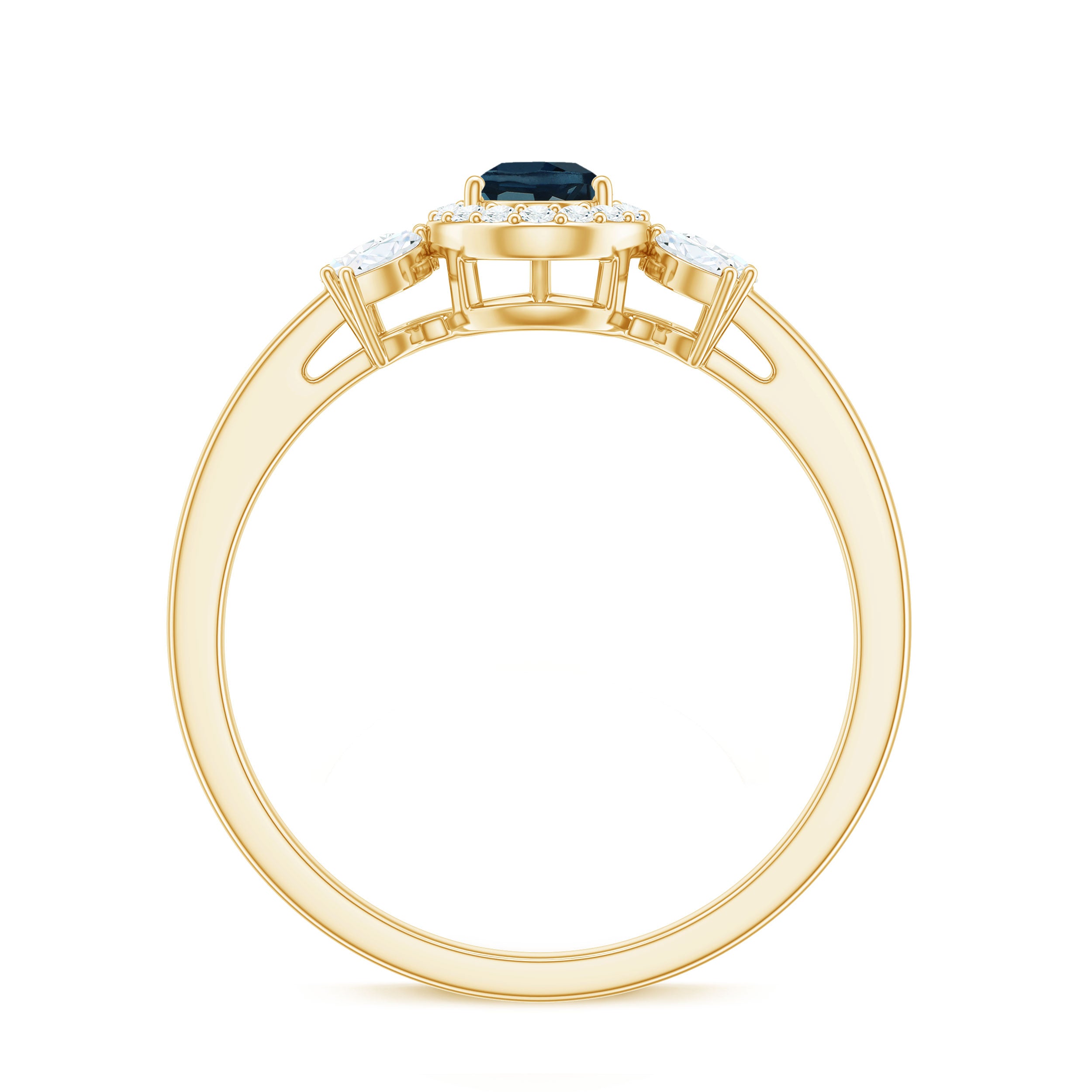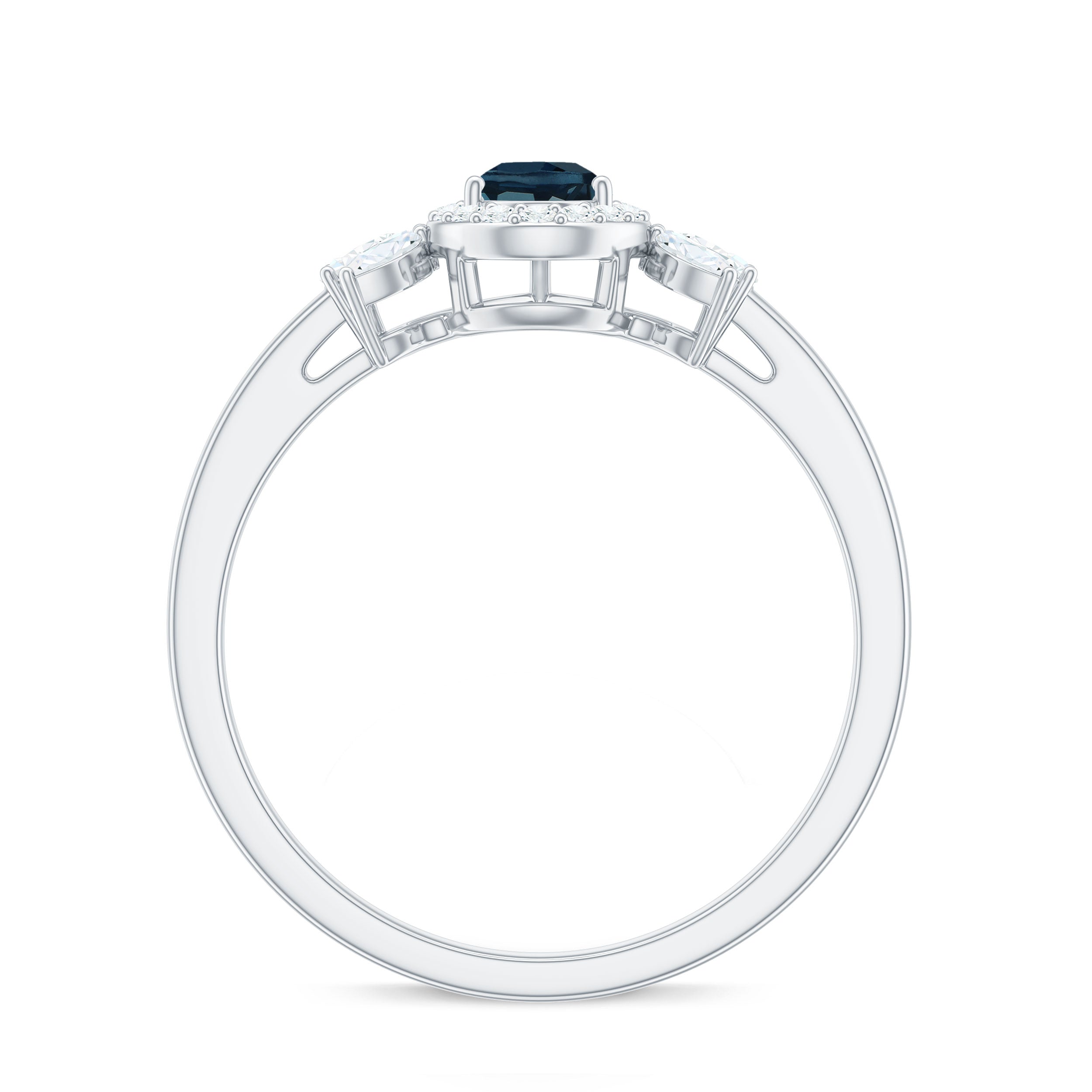 For bride who adore a touch of sparkle, our stylish halo engagement ring elegantly highlights the center London blue topaz and makes them appear a bit larger. Encircled by small diamonds or moissanite stone, the shimmery halo not only accentuates the brilliance but also maximizes the regal blue hues, making them a foremost option for wedding or engagement rings. Our classic yet mesmerizing London blue topaz with a diamond accent is perfect for couples who appreciate the timeless charm with a hint of glamour.