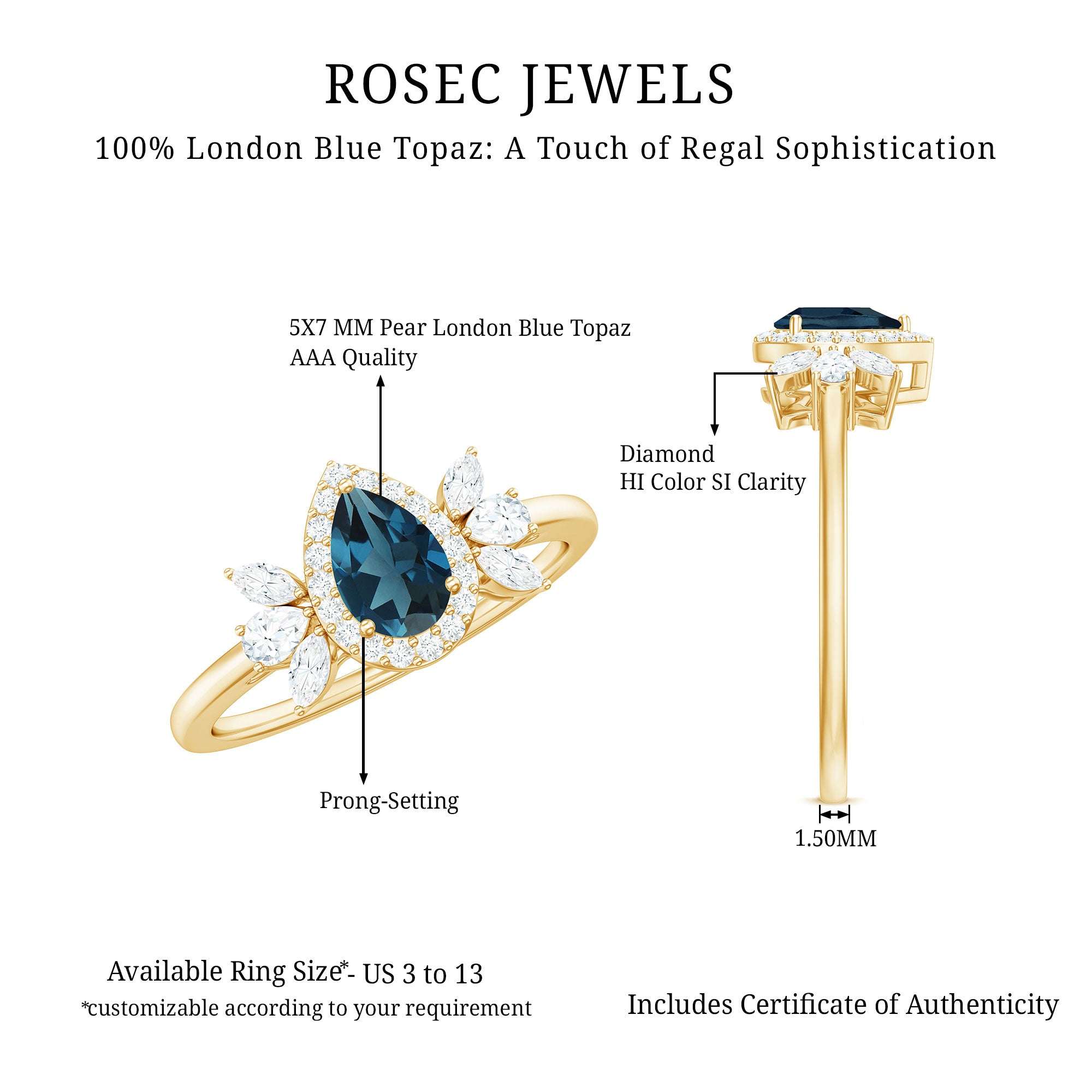 Round Cut: - Popular pick for London blue topaz engagement rings, that enhance the richness of blue color and add more sparkle to the overall look.