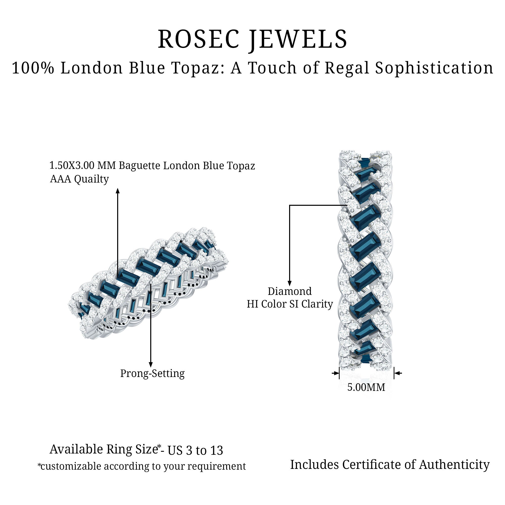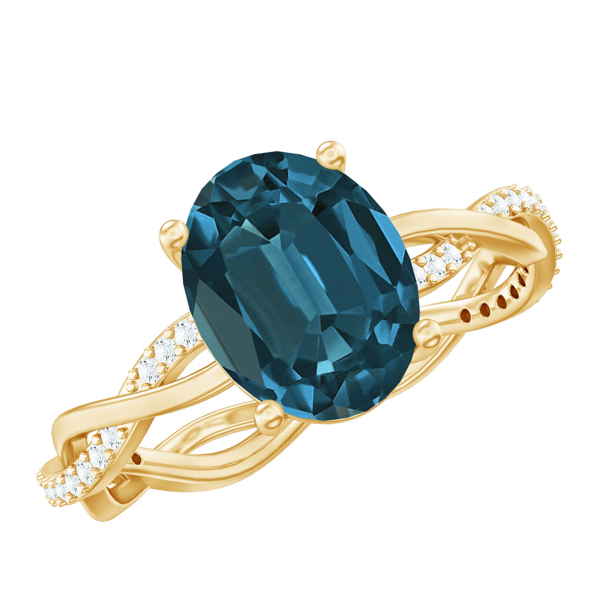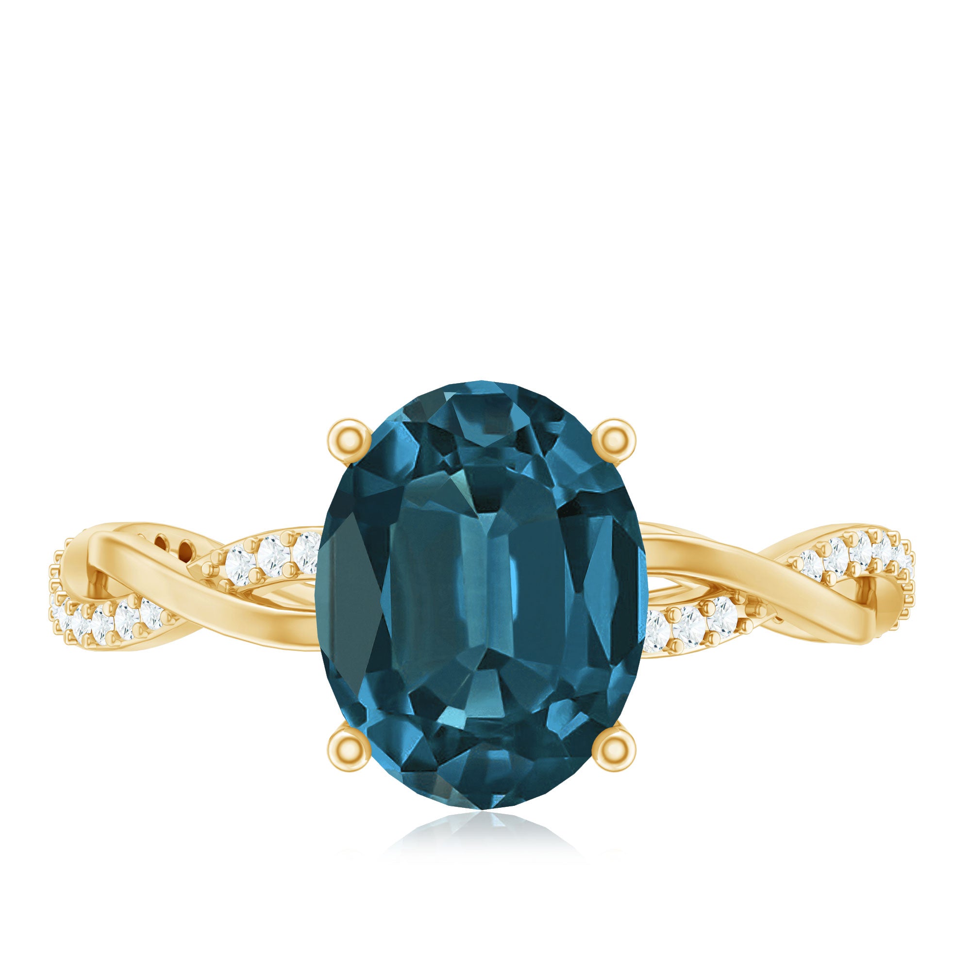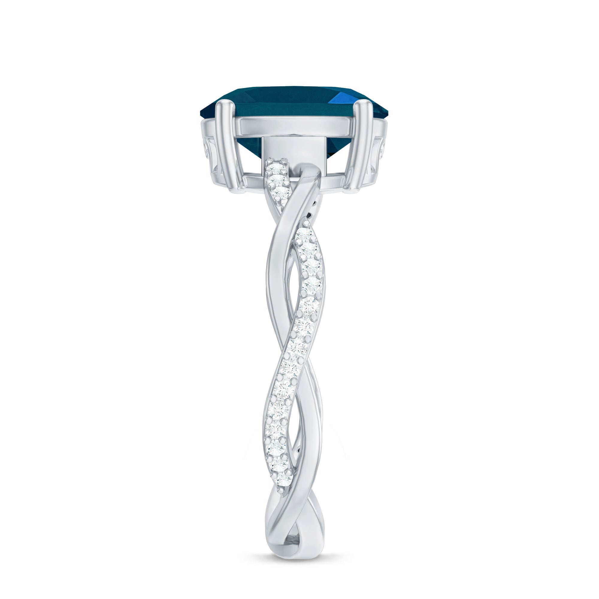 The gemstone is topaz, and the “London blue” color is commonly achieved through standard industry treatment to create the deep blue shade shoppers expect.