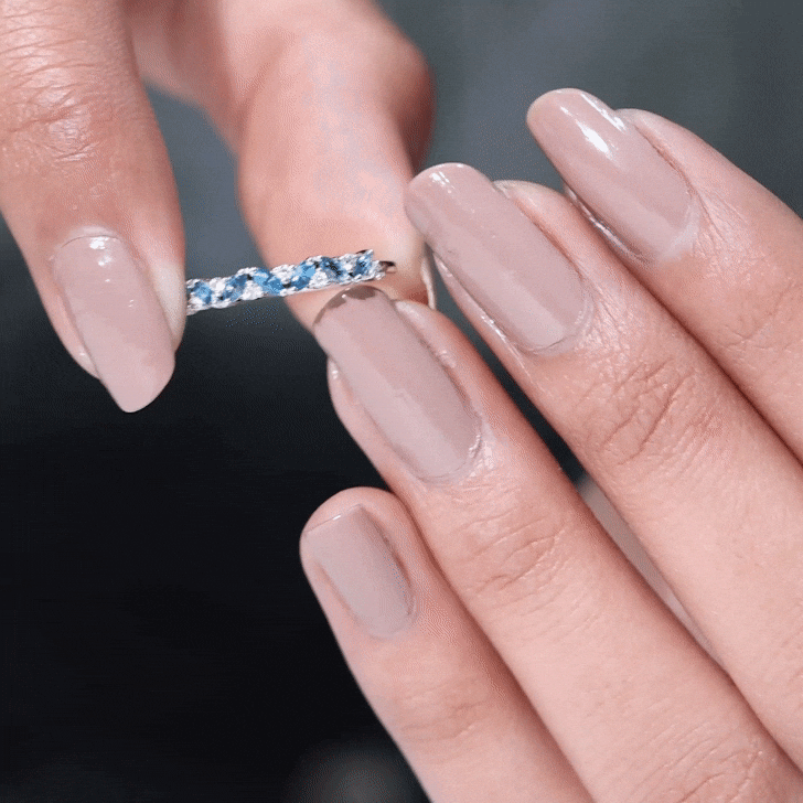 Clean with mild soap, warm water, and a soft brush. Rinse well and pat dry with a soft cloth. Avoid ultrasonic cleaners if your ring includes delicate accents or mixed stones.