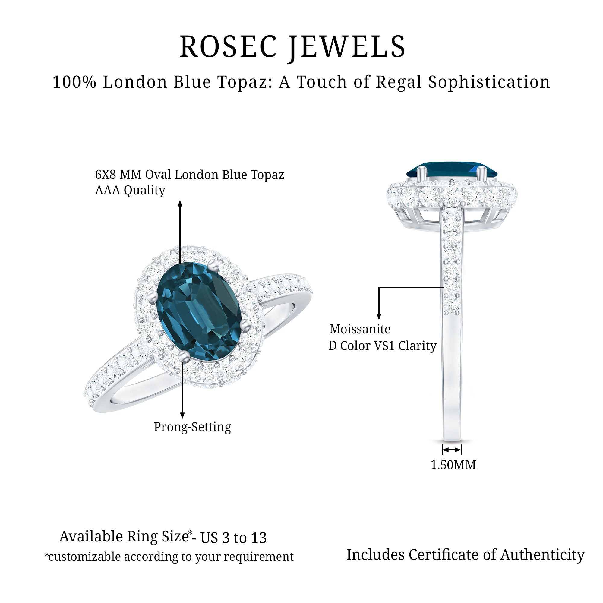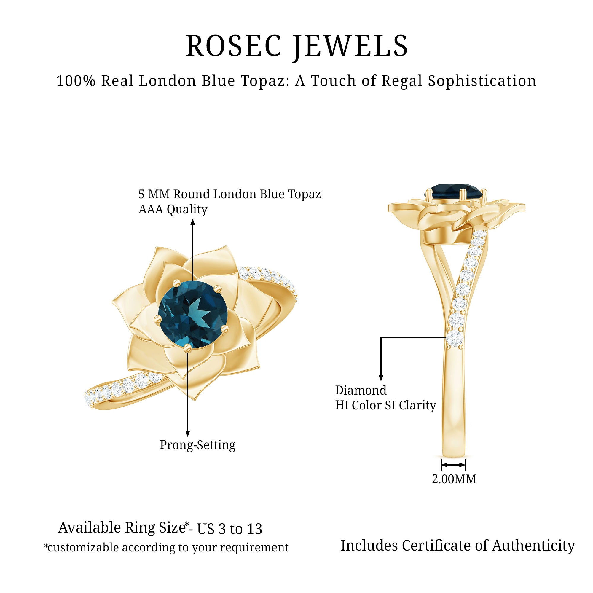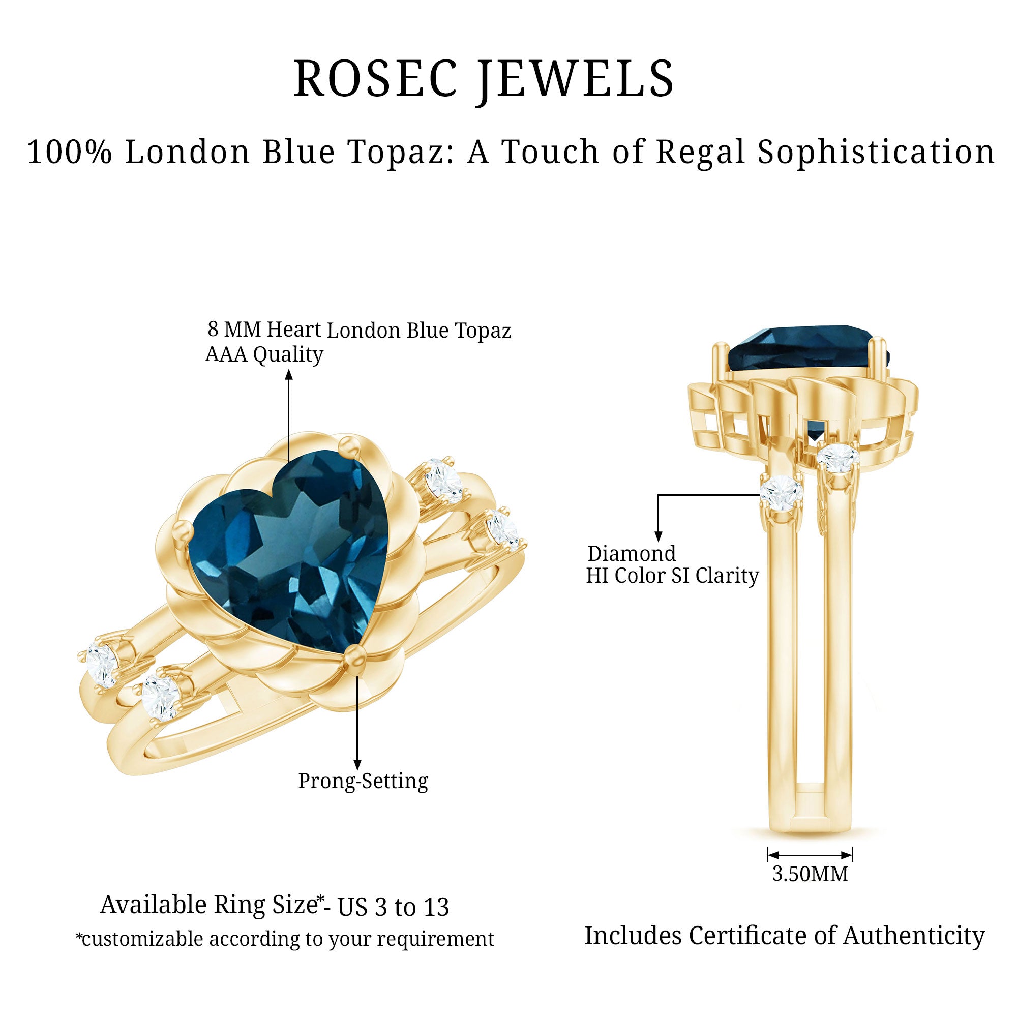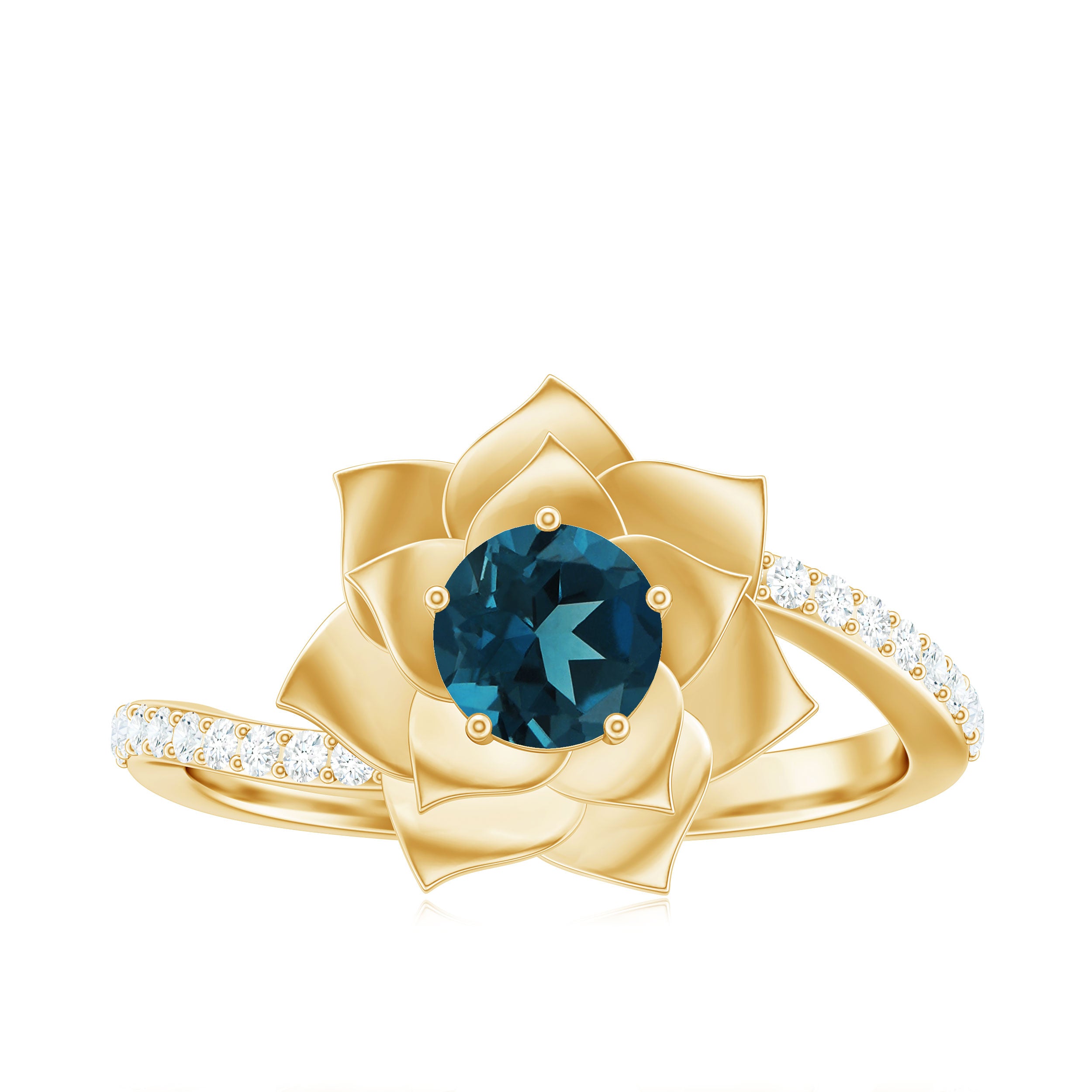 Popularized as the most flashy, flamboyant, and bold ring out there, this Cocktail Ring is adorned with an enormous Center-Stone of London Blue Topaz. It is further accentuated with eye-striking patterns of diamond/moissanite around or as side stones. A London Blue Topaz Cocktail Ring is meant to make a statement with floral and other attention-catching motifs.