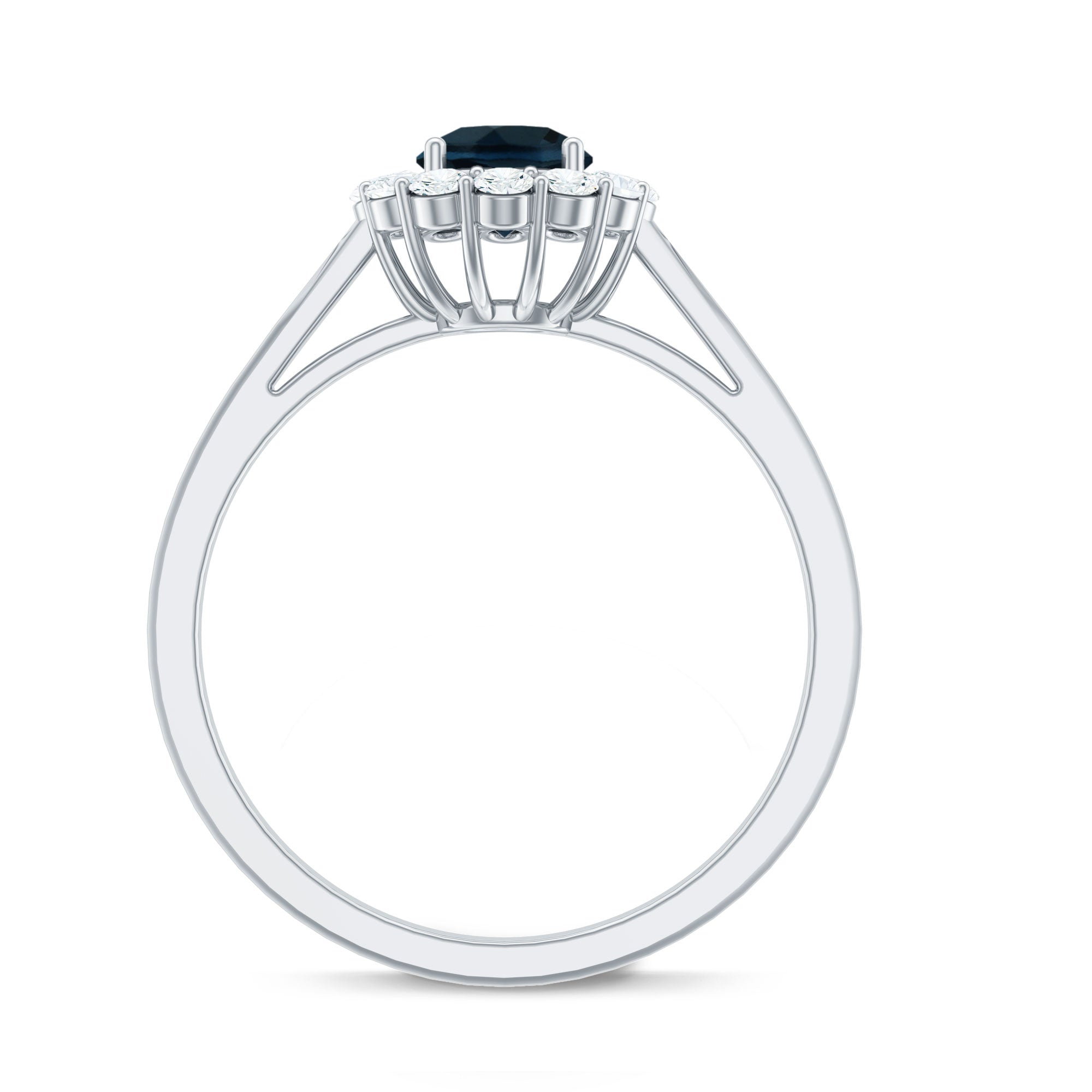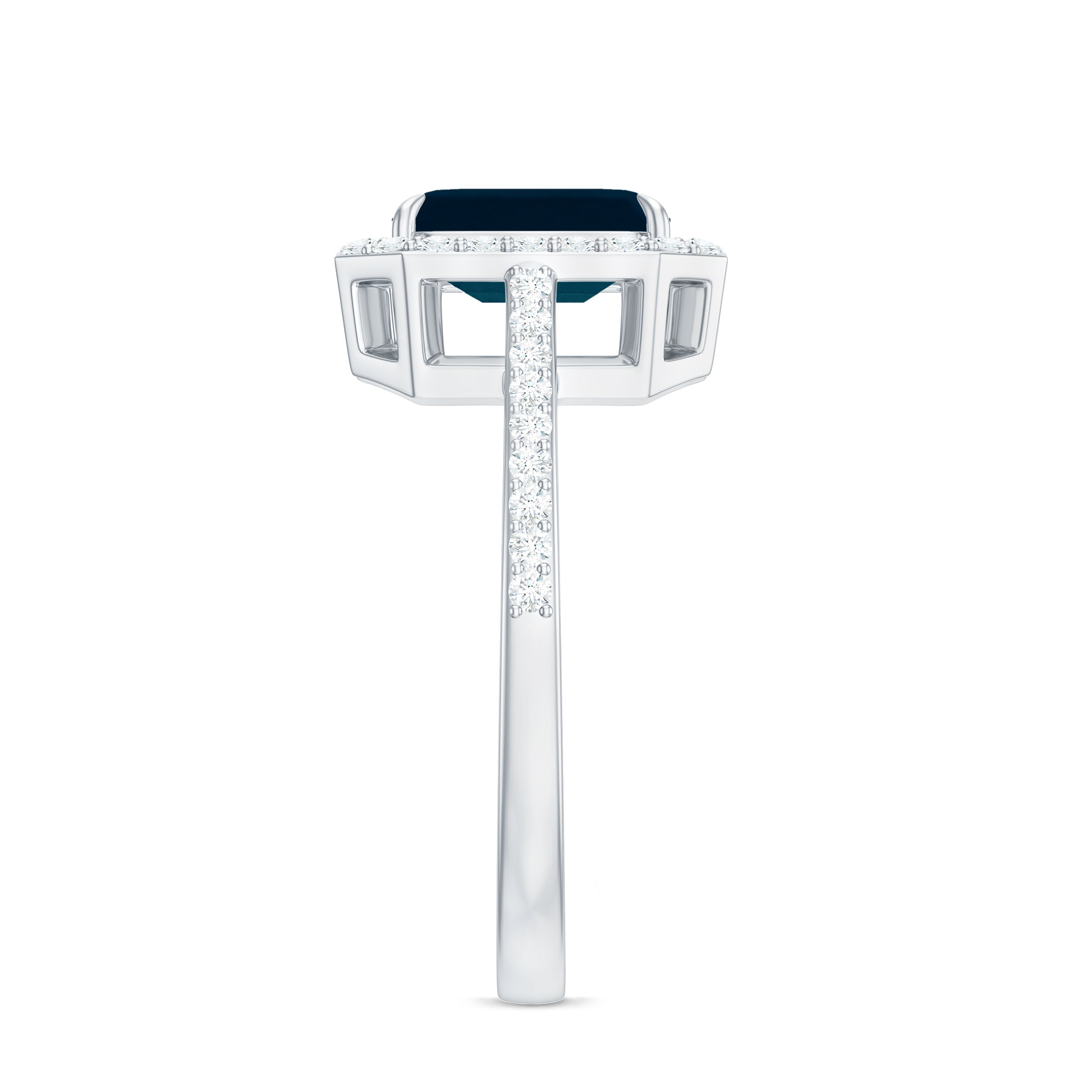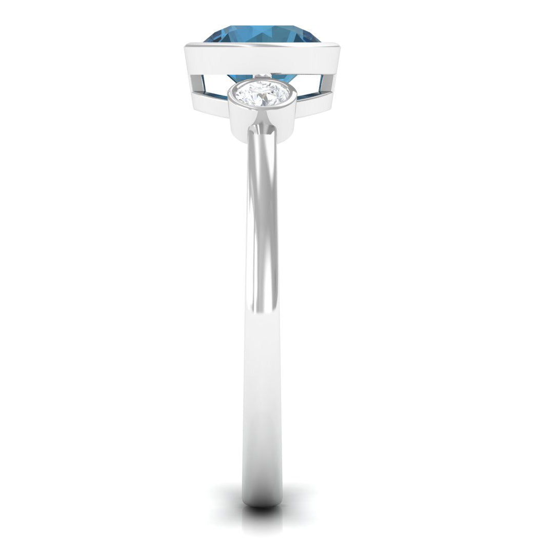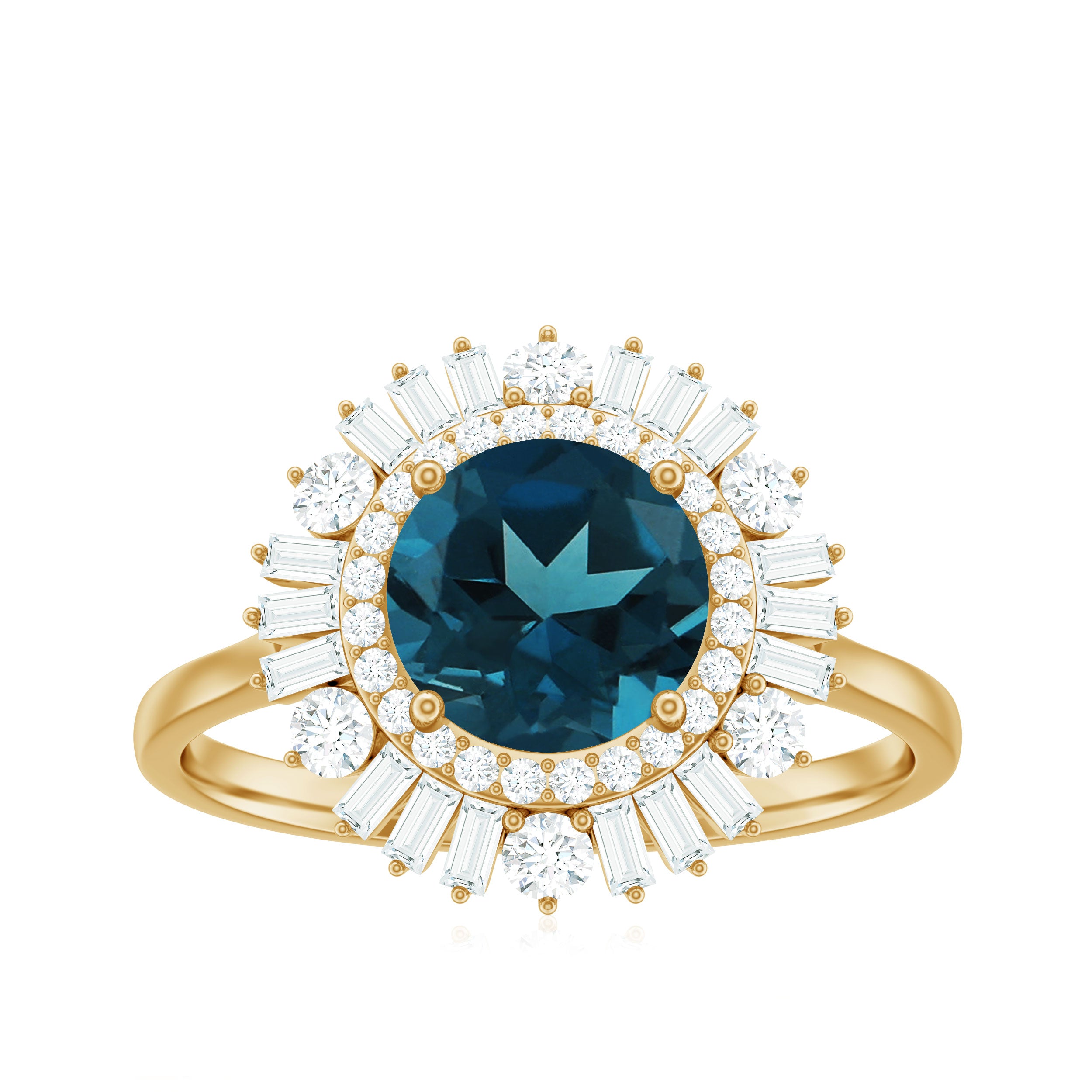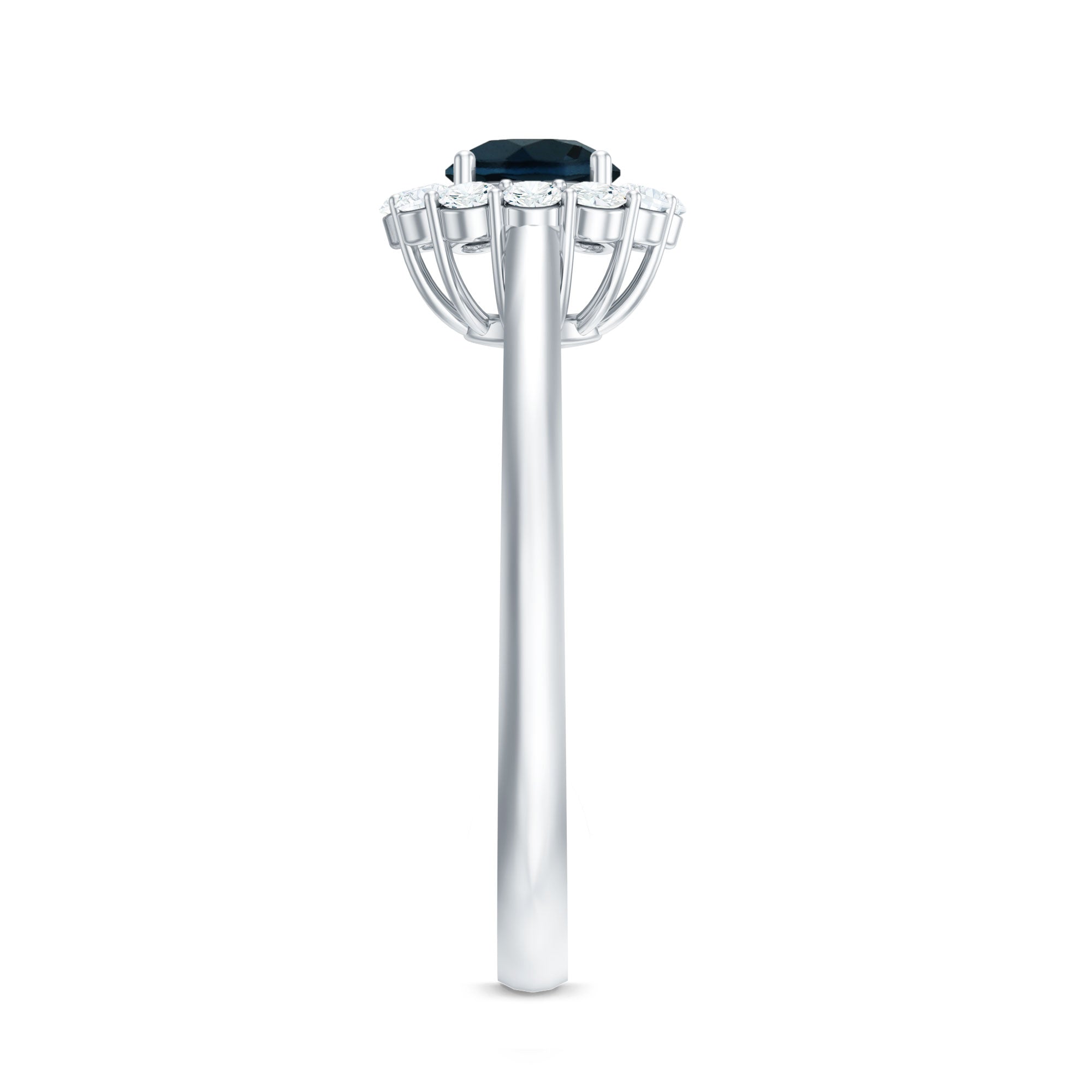 A unique and edgy take to the classic Solitaire style, the Center Stone of London Blue Topaz here is adorned by a shimmering row of Diamond/Moissanite all around. The Halo doesn’t just lend more character to the Blue Topaz Ring, but also deceives your eyes by making your Topaz appear slightly bigger in size. It is the go-to style for those who fancy a London Blue Topaz and Diamond Ring.